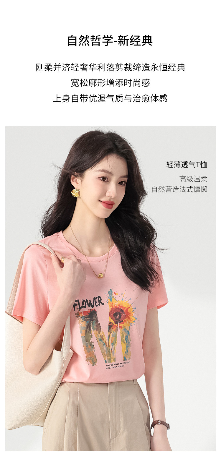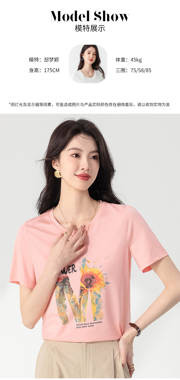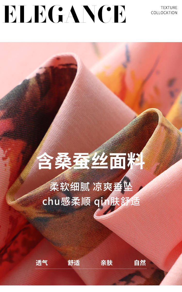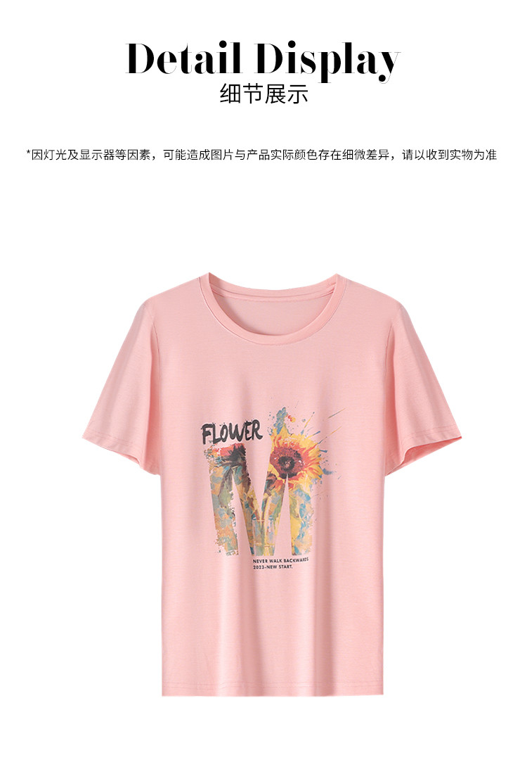 商品名称:【含桑蚕丝】轻薄透气趣味印花圆领短袖T恤打底衫上衣 061203