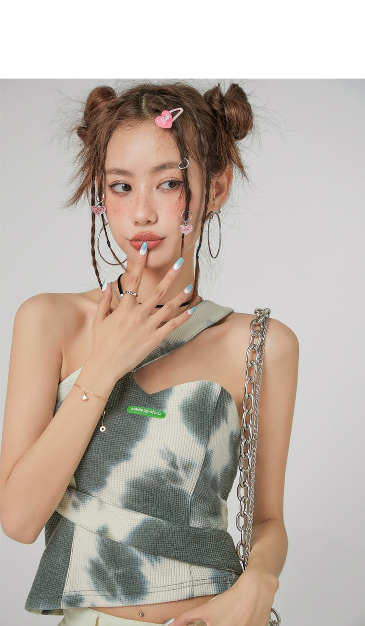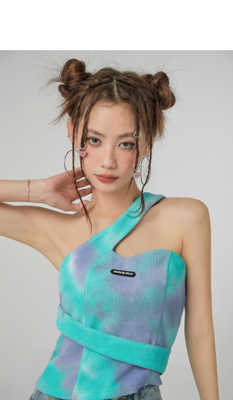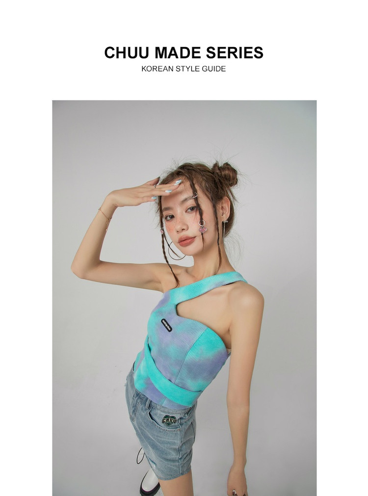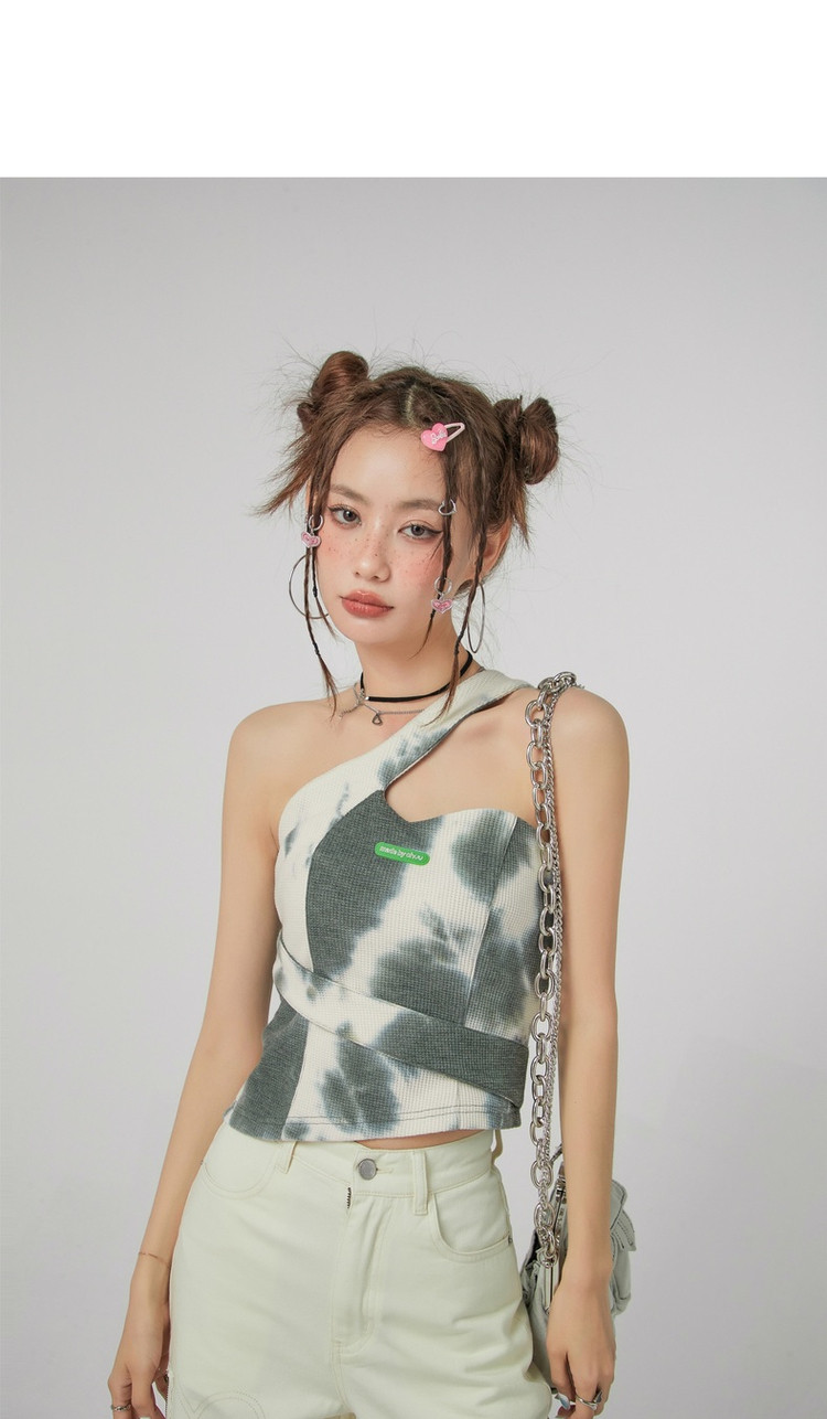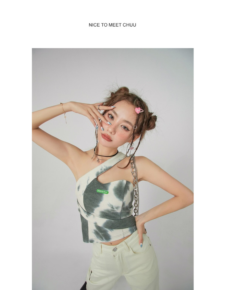 CHUU扎染单肩背心女春夏秋内搭修身辣妹短款上衣 794963