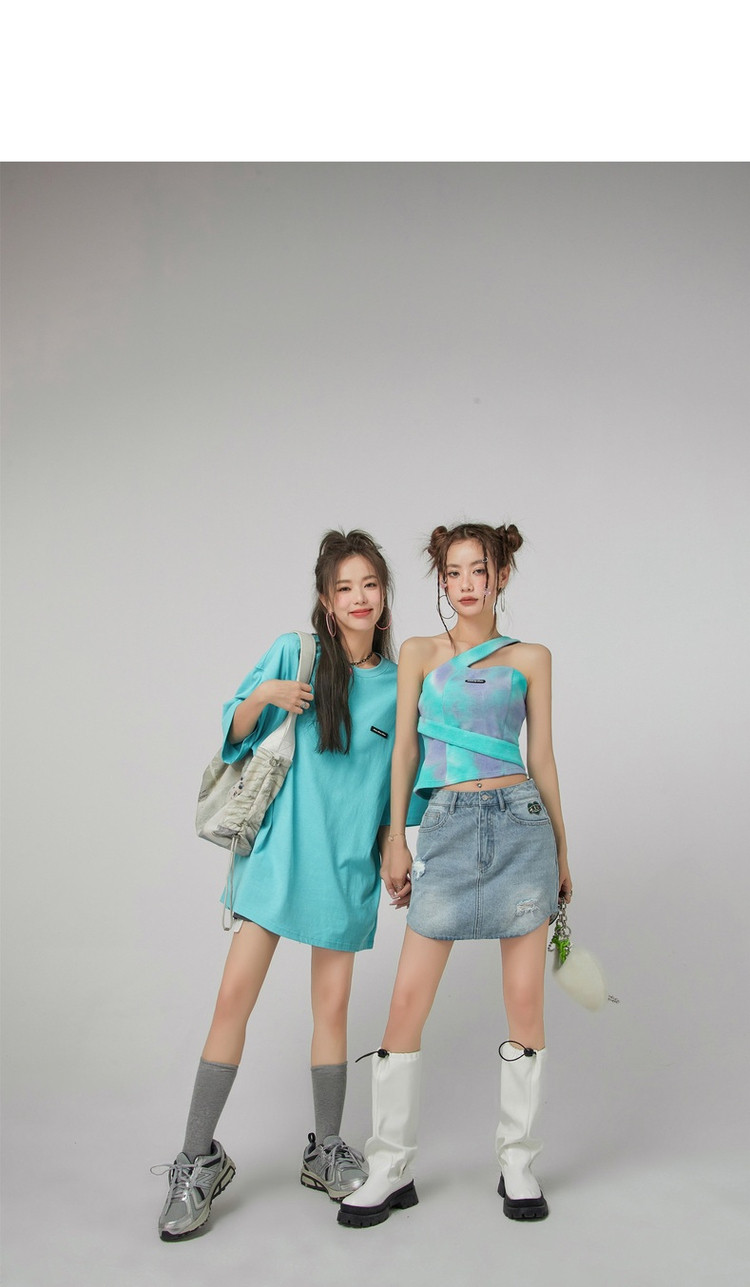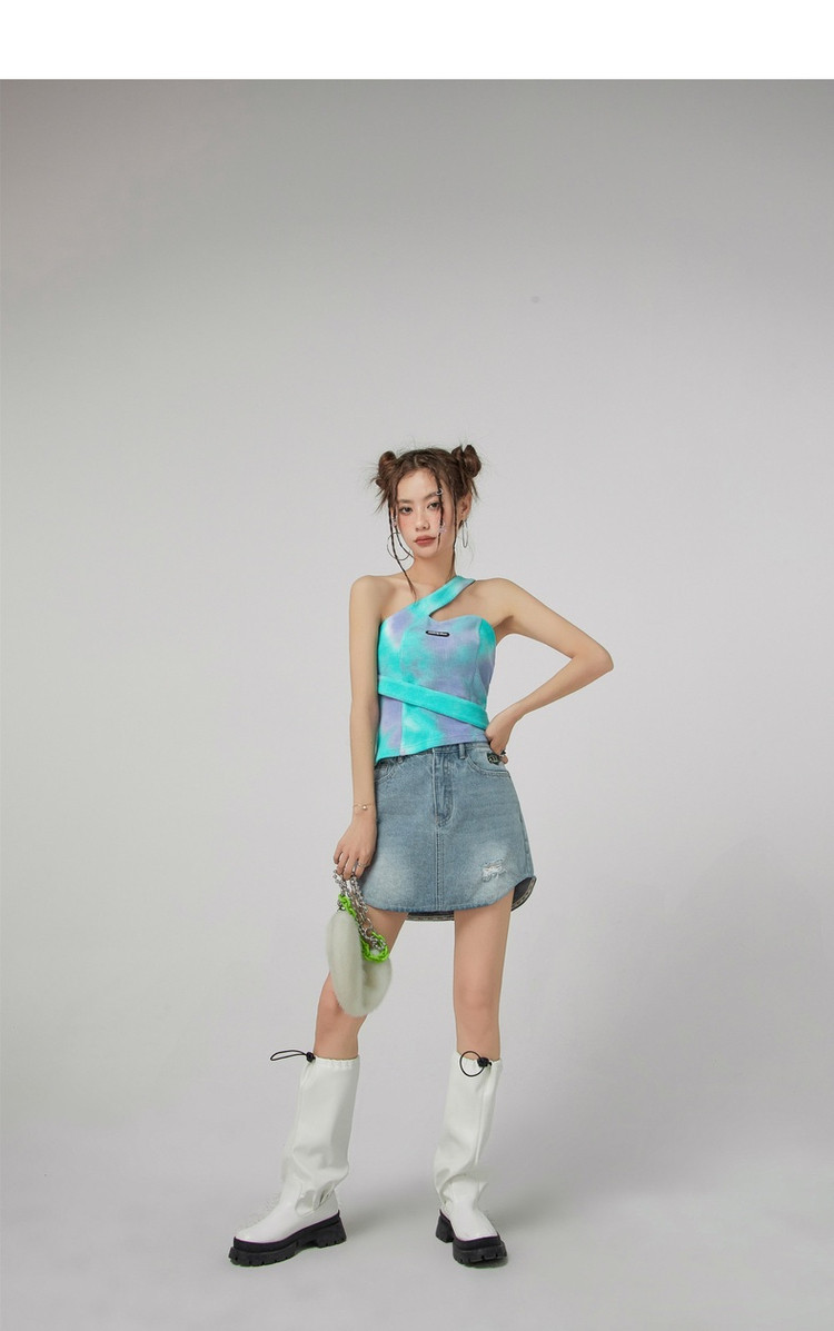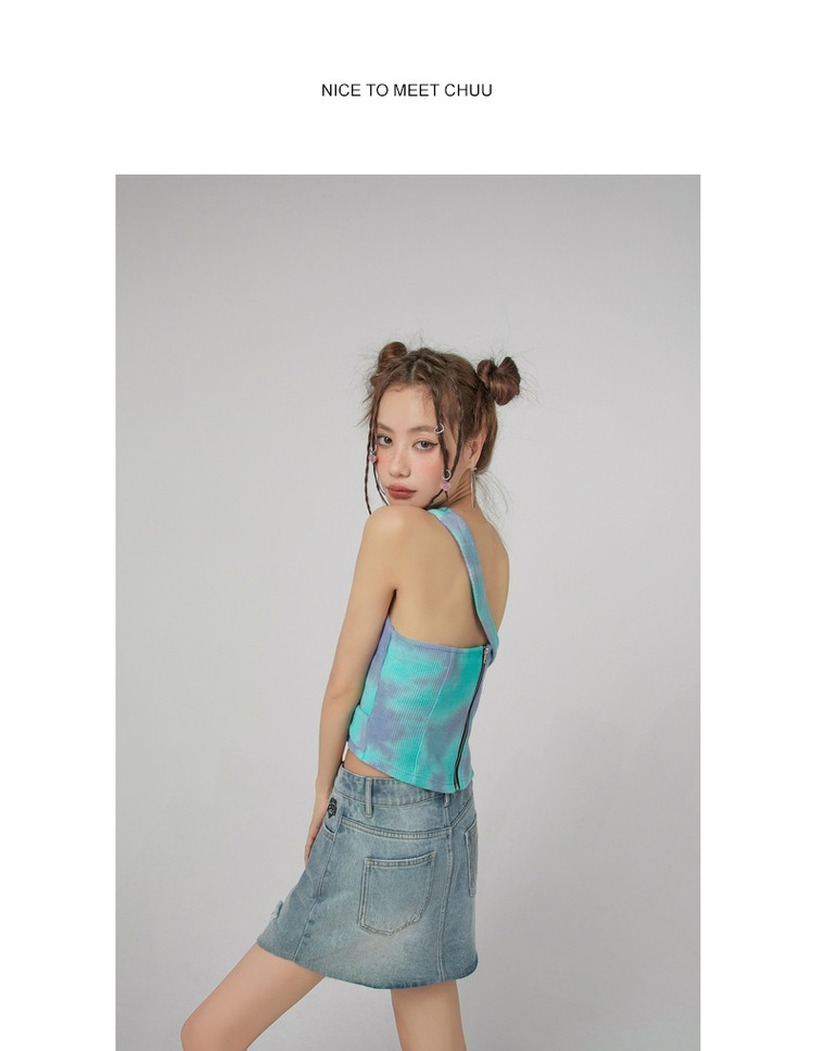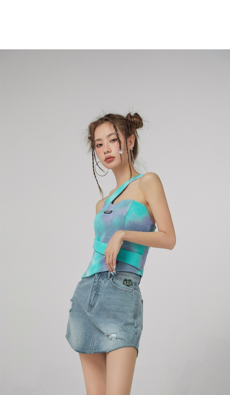 CHUU扎染单肩背心女春夏秋内搭修身辣妹短款上衣 794963