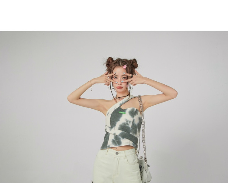 商品名称:CHUU扎染单肩背心女春夏秋内搭修身辣妹短款上衣 794963