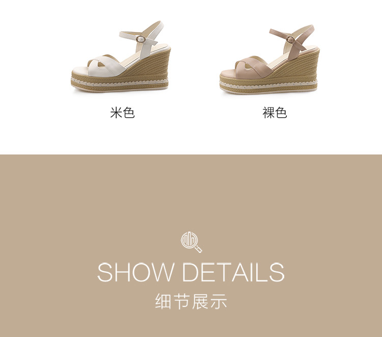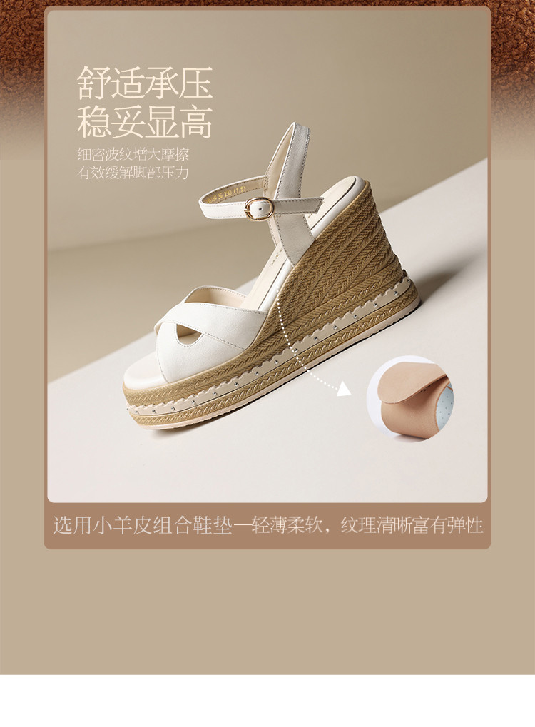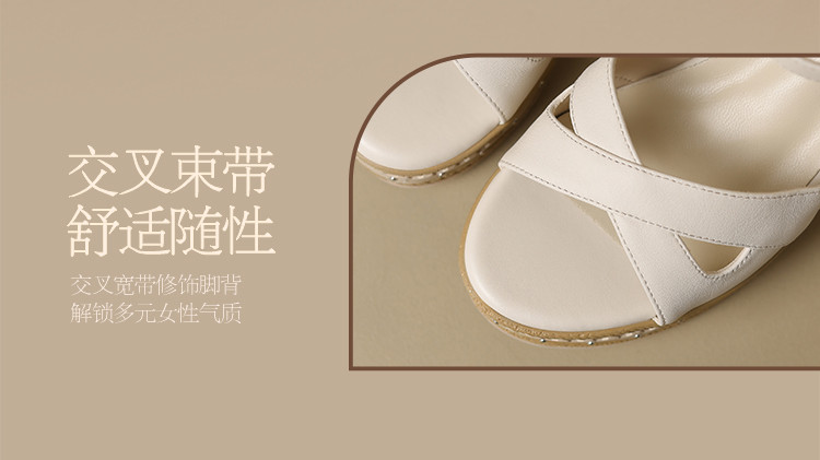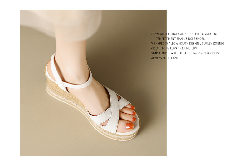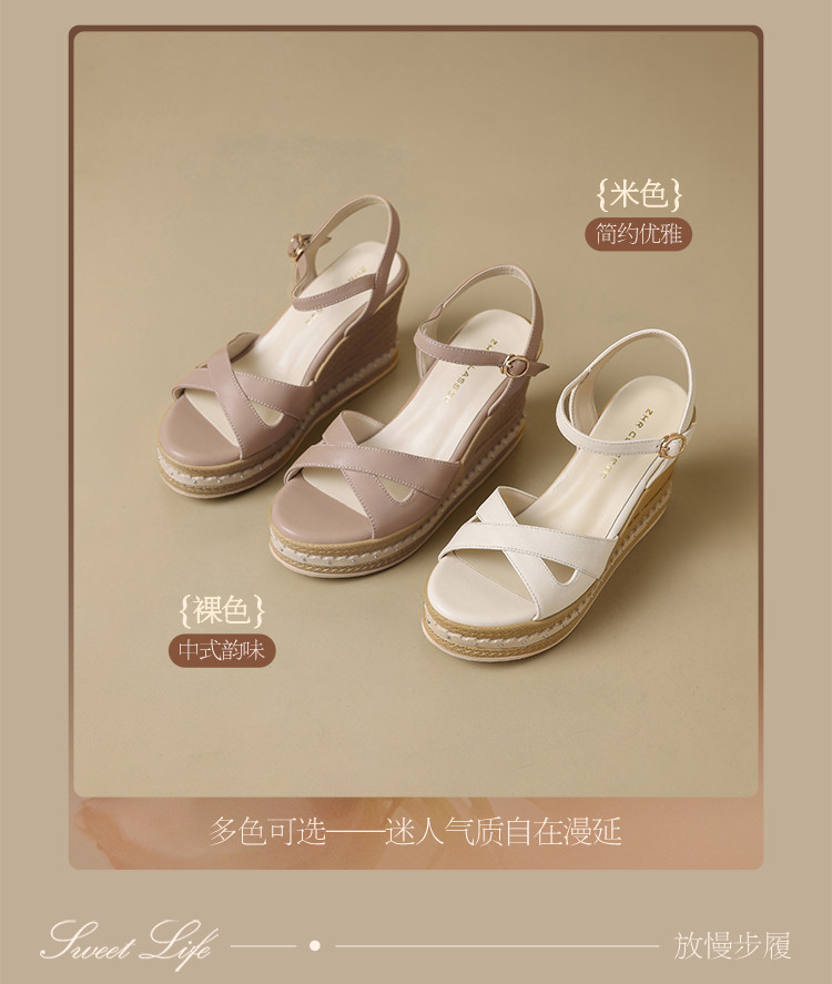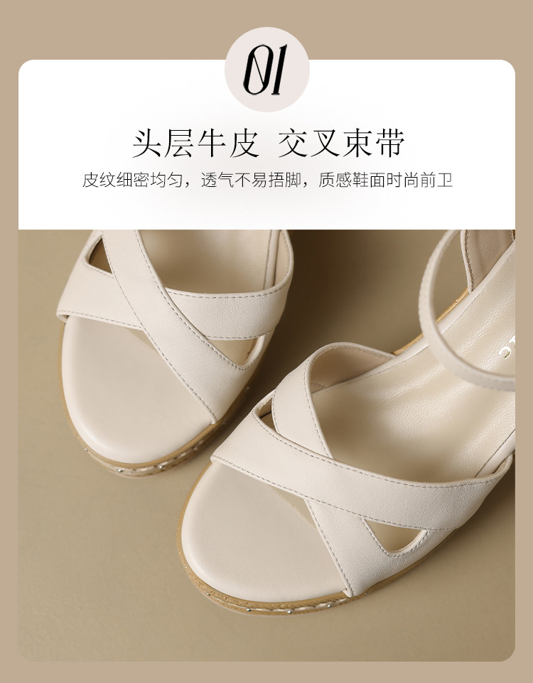 商品名称:【头层牛皮】交叉束带坡跟女凉鞋一字带凉鞋女百搭小个子高跟凉鞋 562880