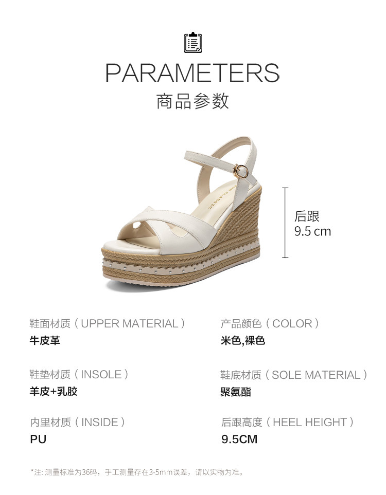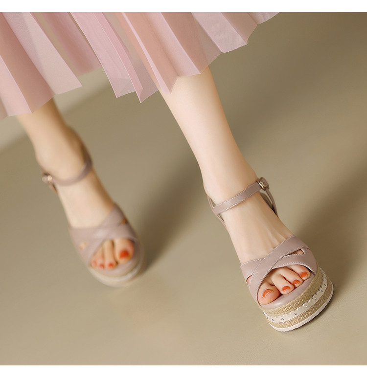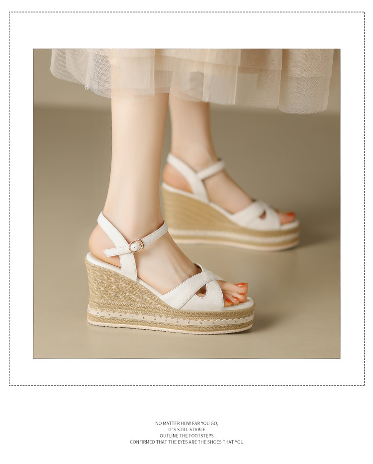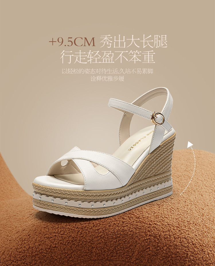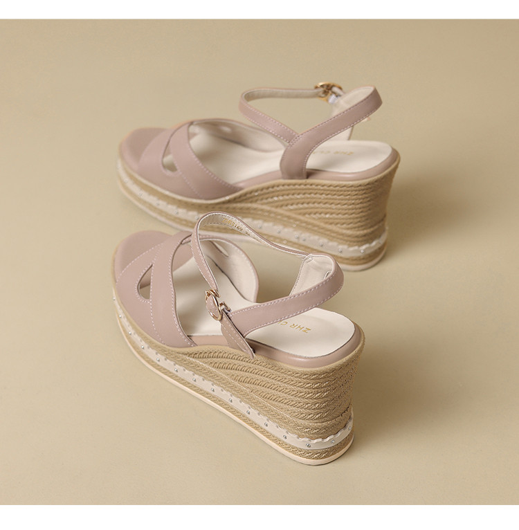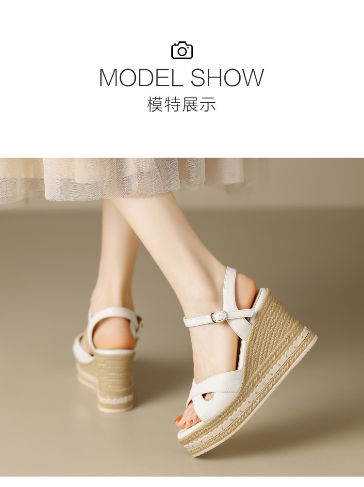 商品名称:【头层牛皮】交叉束带坡跟女凉鞋一字带凉鞋女百搭小个子高跟凉鞋 562880