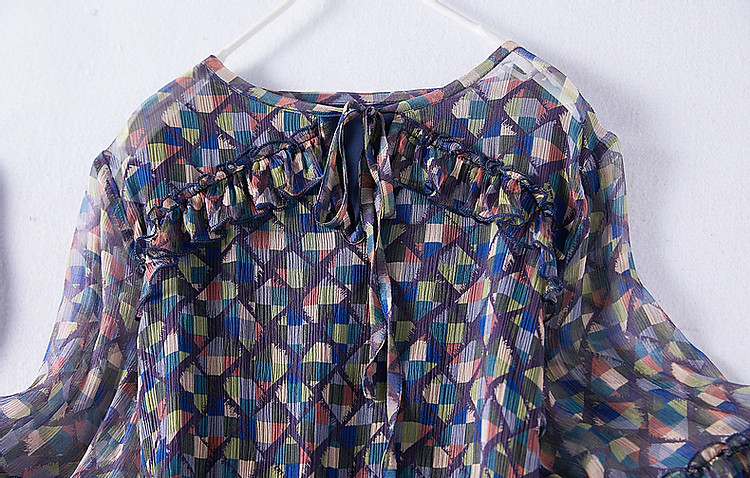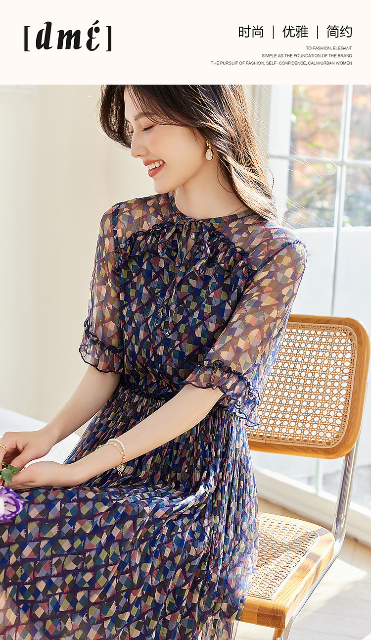 商品名称:【浣溪沙】夏季千金风桑蚕丝真丝荷叶边松紧腰遮肉连衣裙女 458177