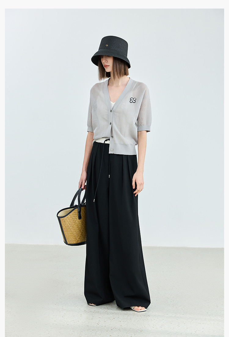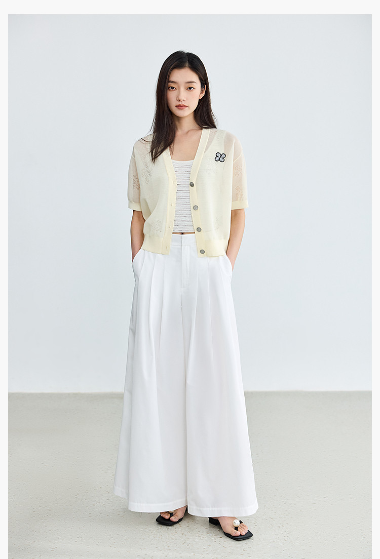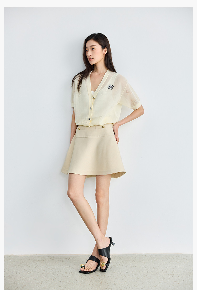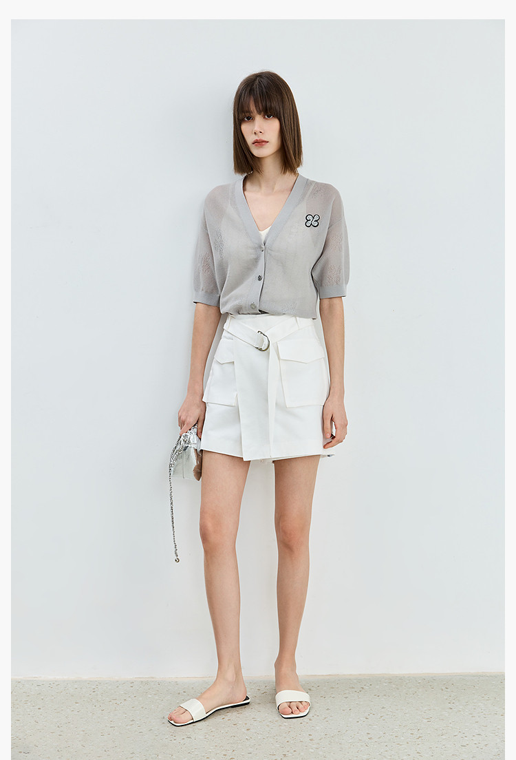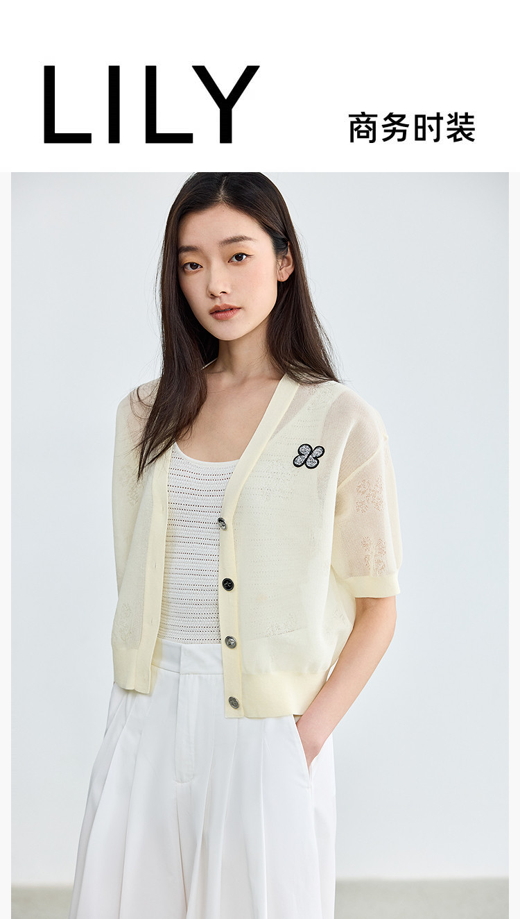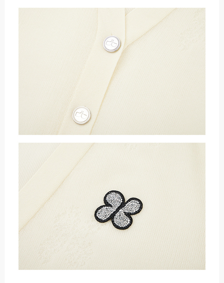 商品名称:【春季】毛针织衫短袖设计感四叶草印花V领针织衫女上衣 678107