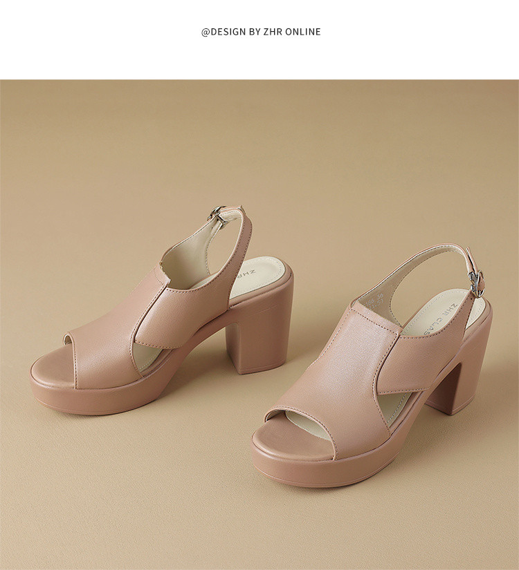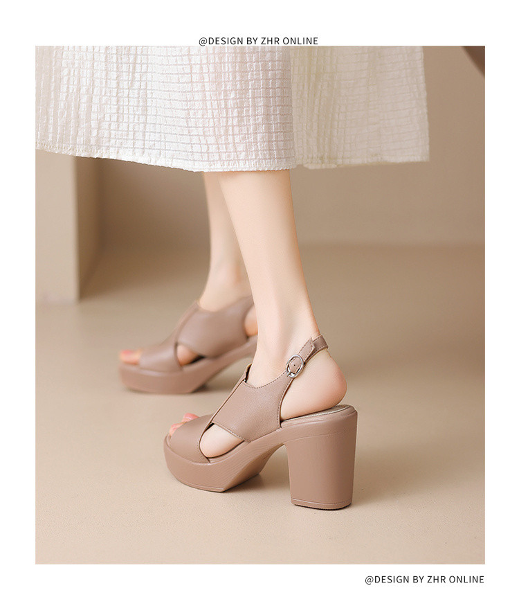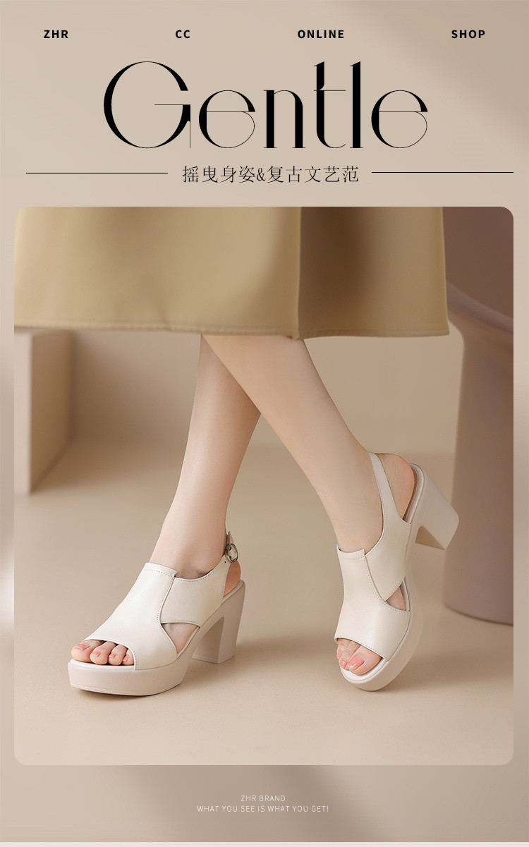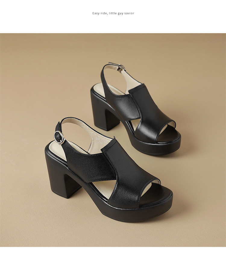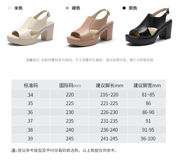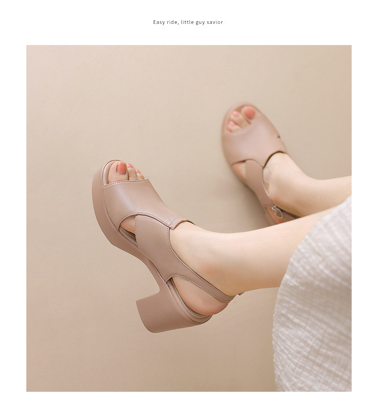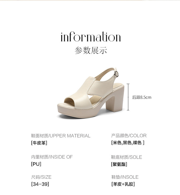 商品名称:【头层牛皮】搭扣粗根凉鞋增高显瘦鱼嘴凉鞋高跟凉鞋女士凉鞋凉鞋 265472