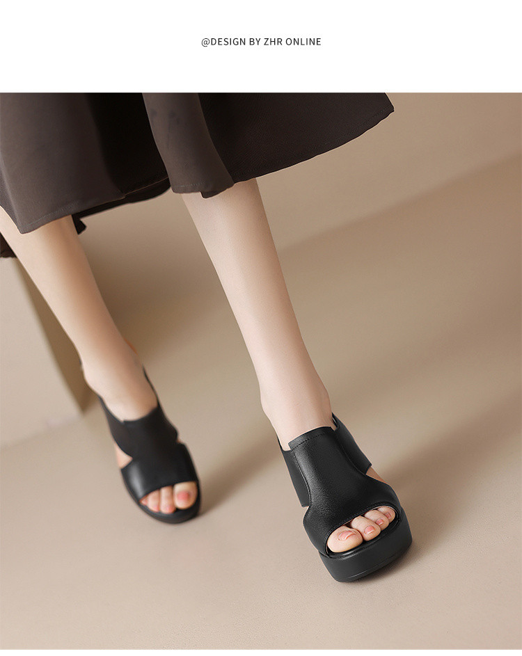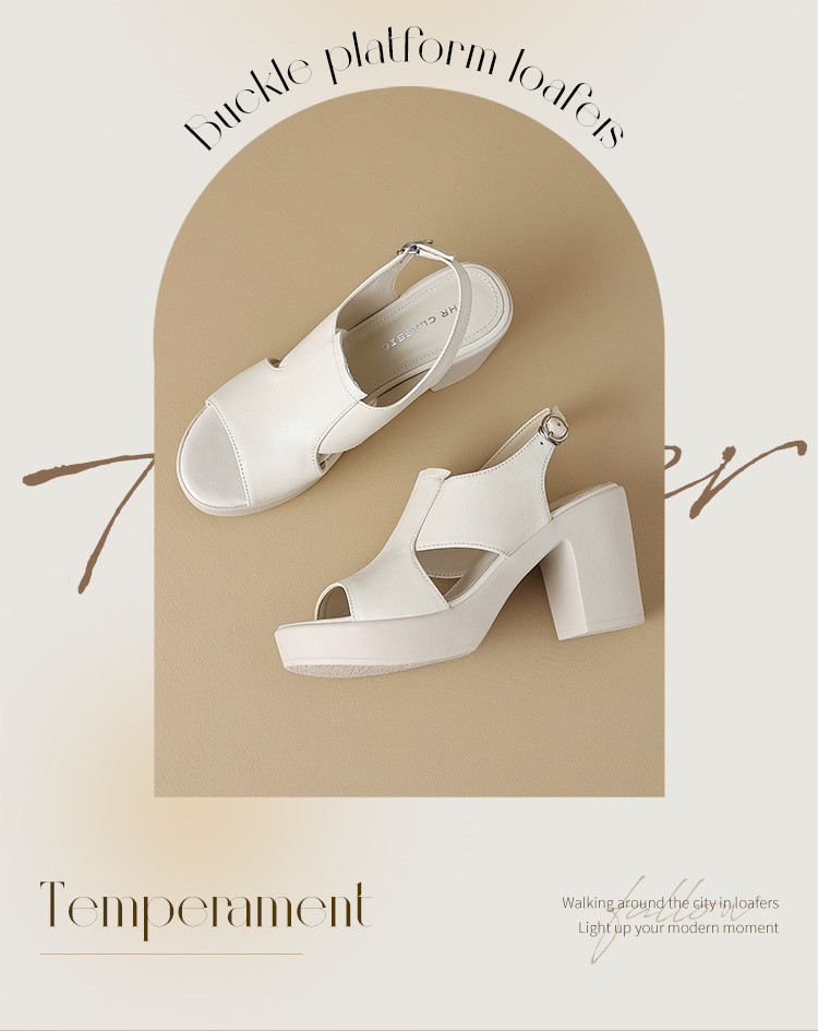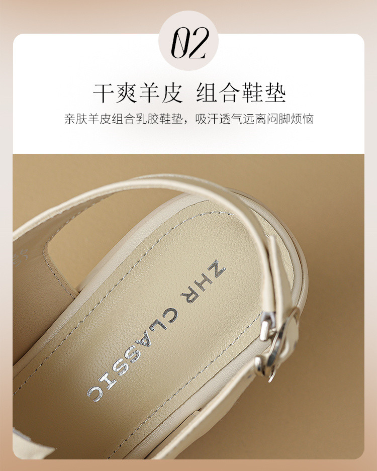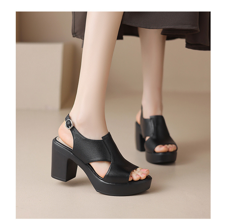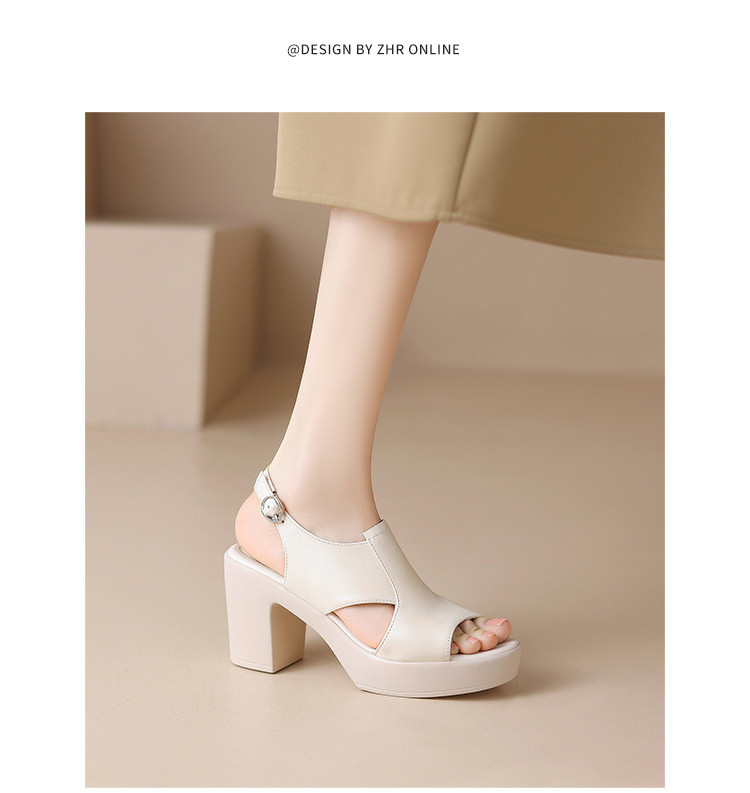 【头层牛皮】搭扣粗根凉鞋增高显瘦鱼嘴凉鞋高跟凉鞋女士凉鞋凉鞋 265472