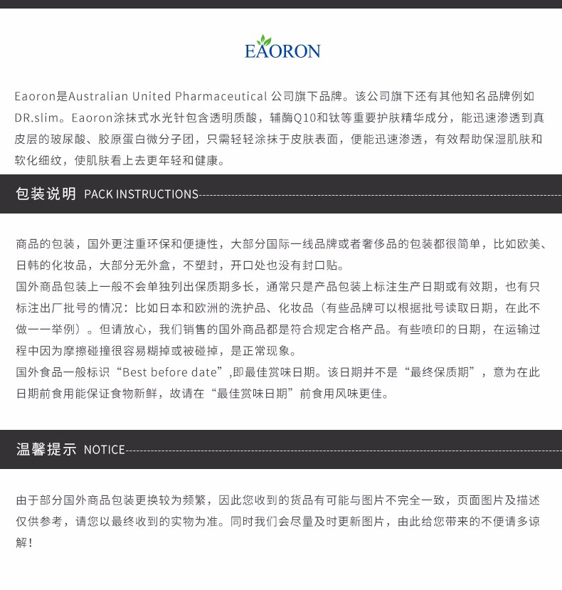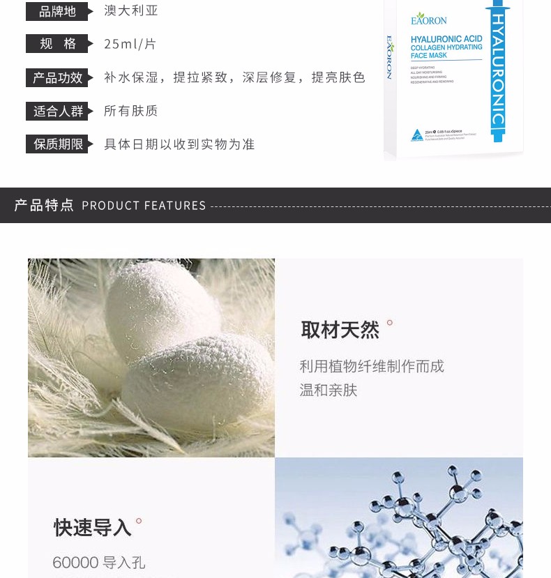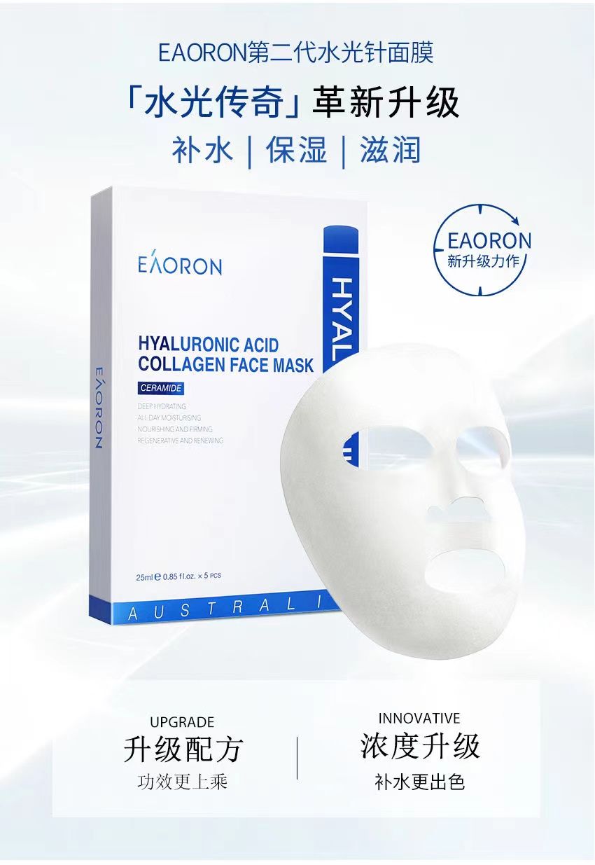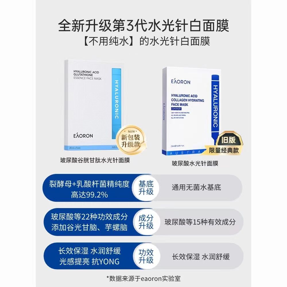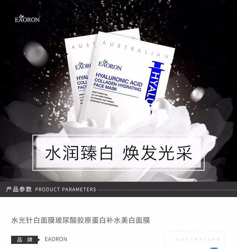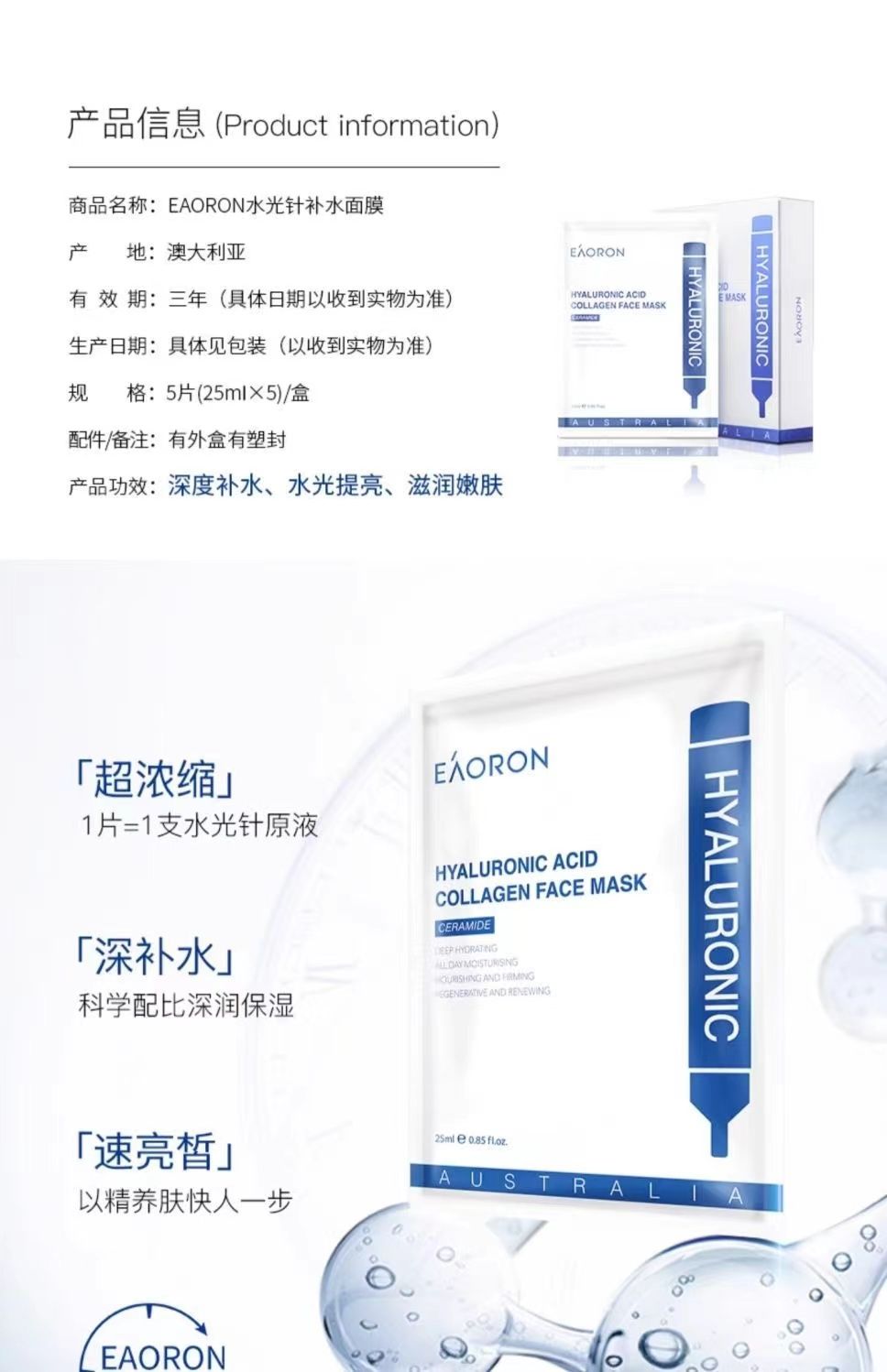 商品名称:EAORON 水光针白面膜玻尿酸胶原蛋白补水美白面膜 5片【新旧随机发】