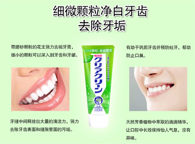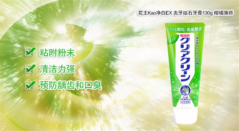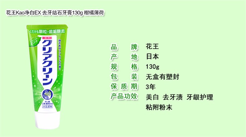 商品名称:Kao/花王 微细颗粒瞬间除牙垢预防牙龈炎 原味薄荷 130G