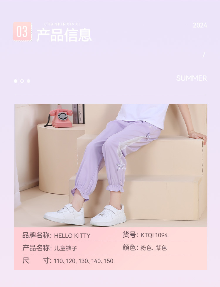 商品名称:【女童防蚊裤】儿童夏季薄款冰丝凉感弹性舒适裤子外穿潮酷运动裤 283073