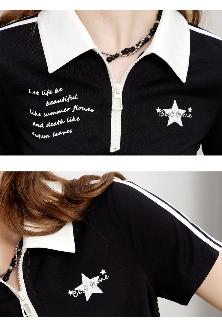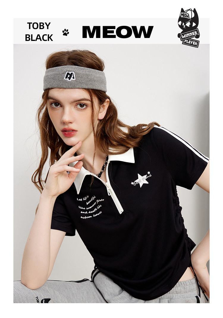 商品名称:侧边抽绳设计感修身短款女式Polo衫夏季休闲短袖上衣 838109