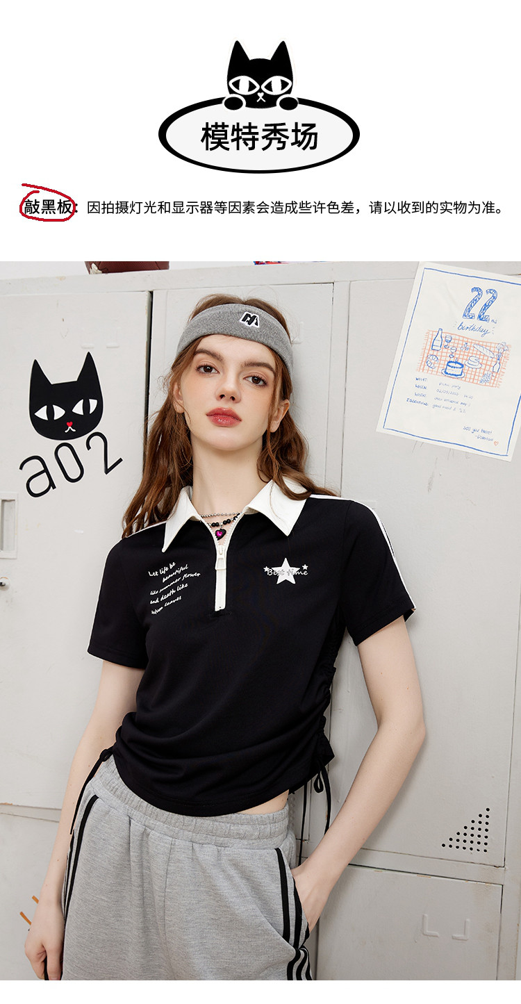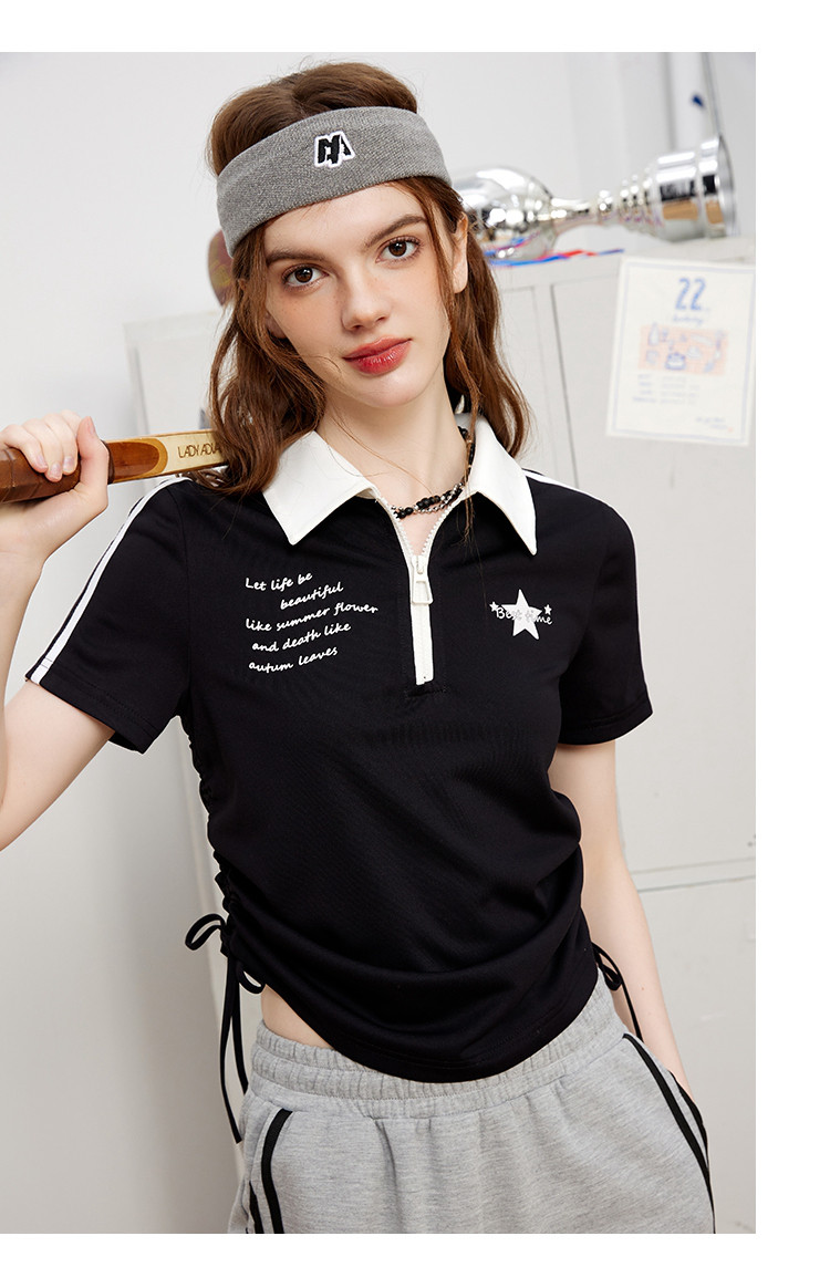 侧边抽绳设计感修身短款女式Polo衫夏季休闲短袖上衣 838109