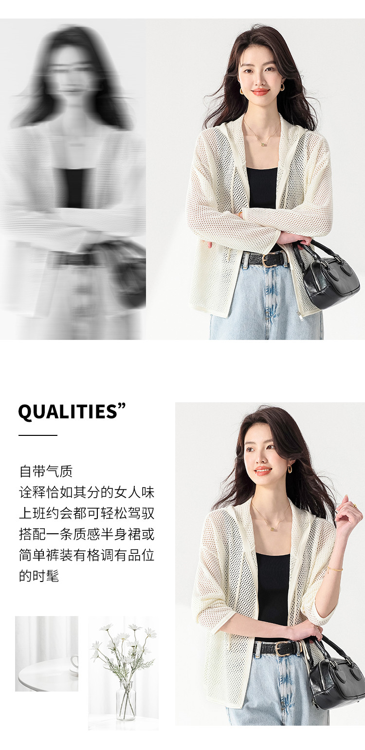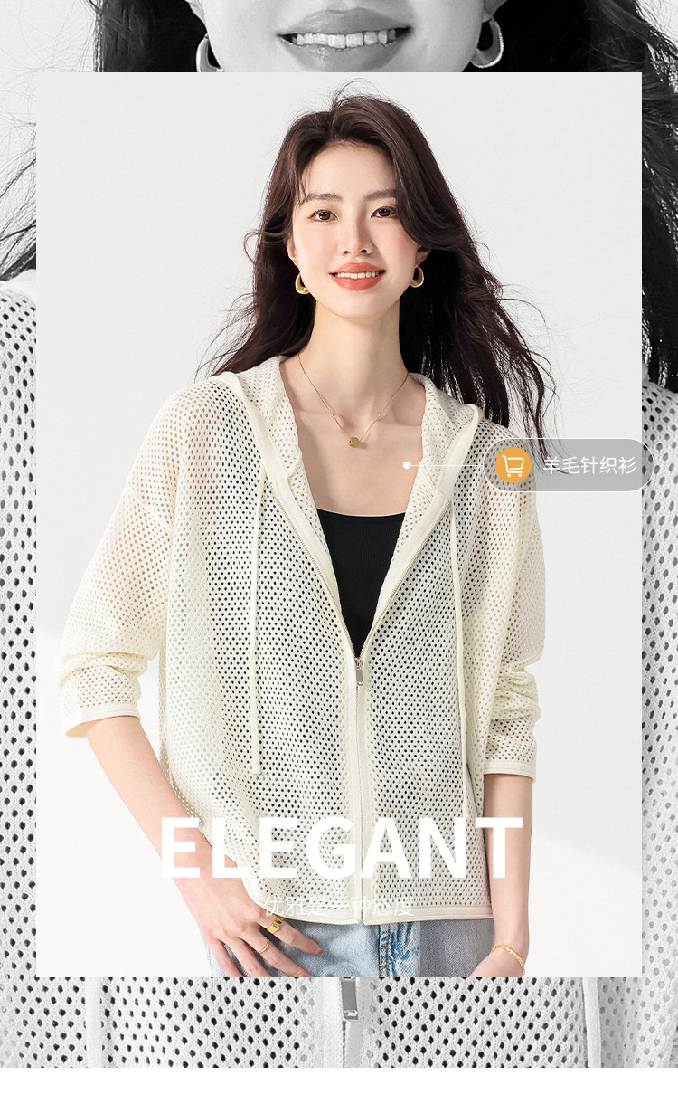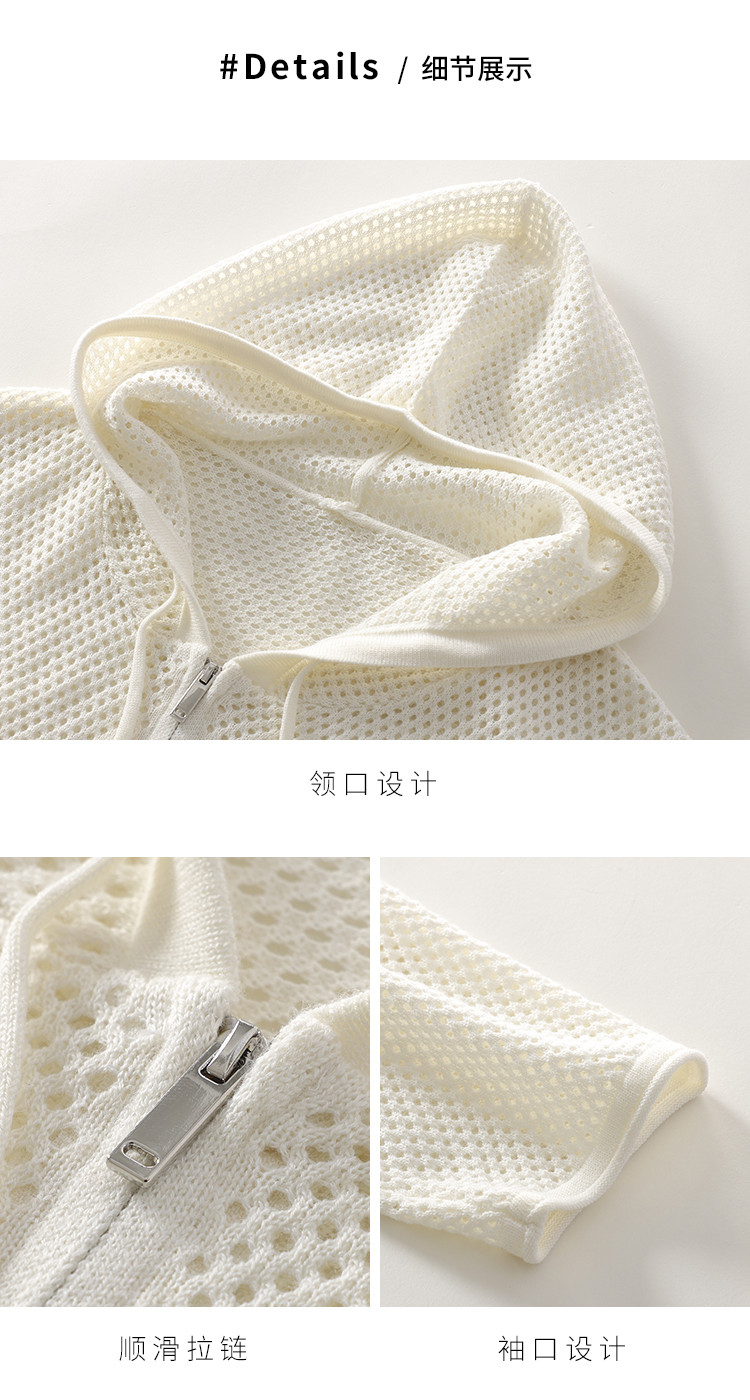 轻薄透气网眼镂空连帽羊毛针织开衫毛衣外套夏款空调衫卫衣 759443