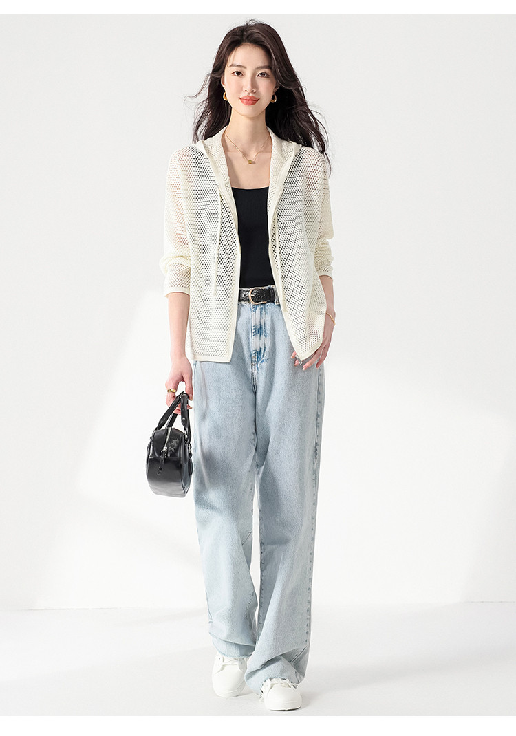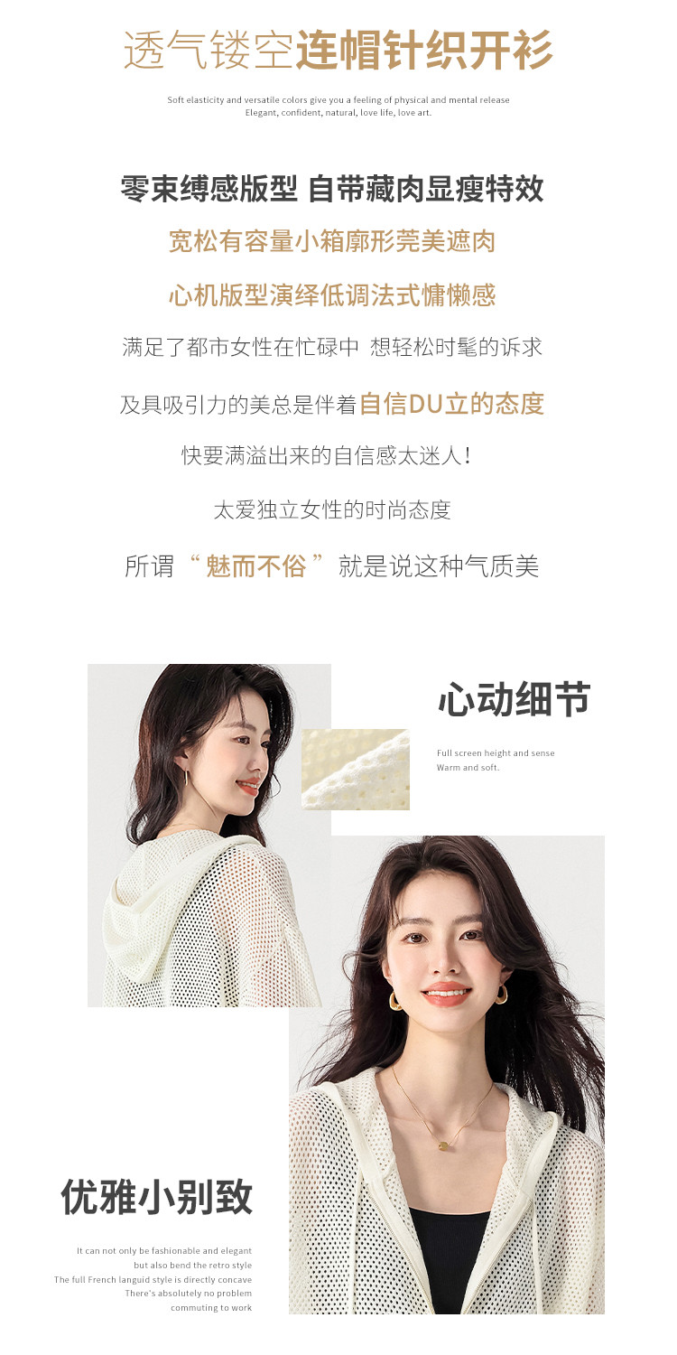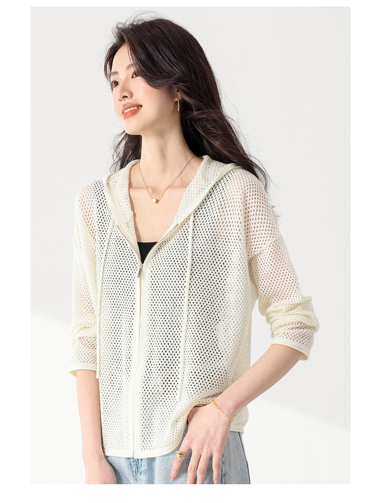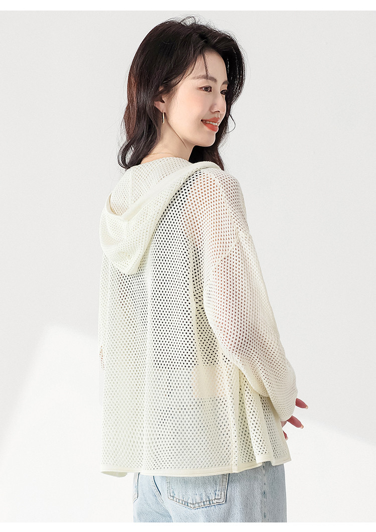 轻薄透气网眼镂空连帽羊毛针织开衫毛衣外套夏款空调衫卫衣 759443