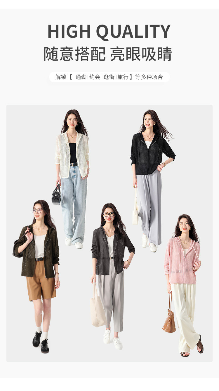 商品名称:轻薄透气网眼镂空连帽羊毛针织开衫毛衣外套夏款空调衫卫衣 759443