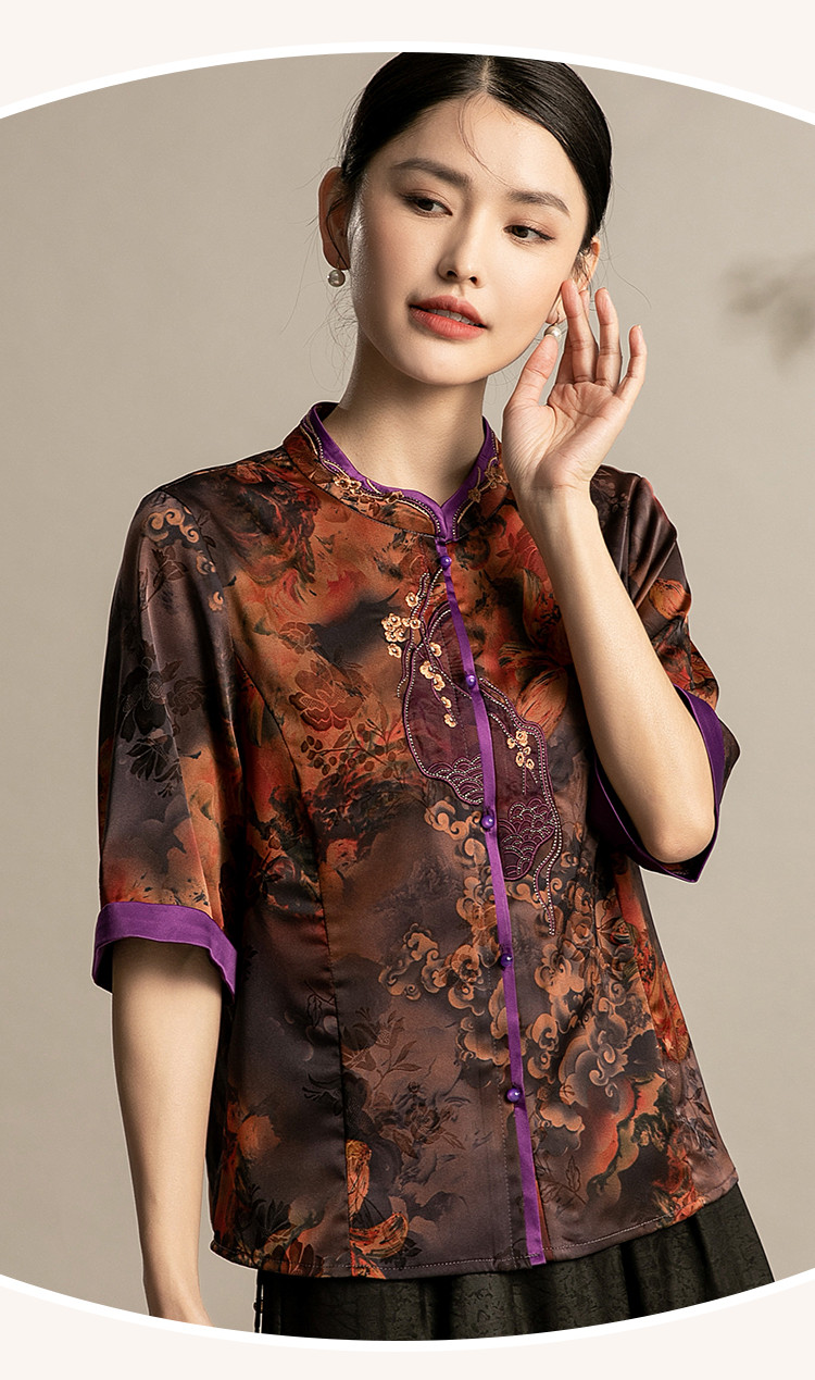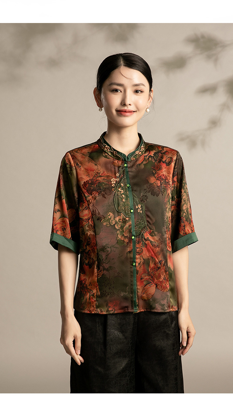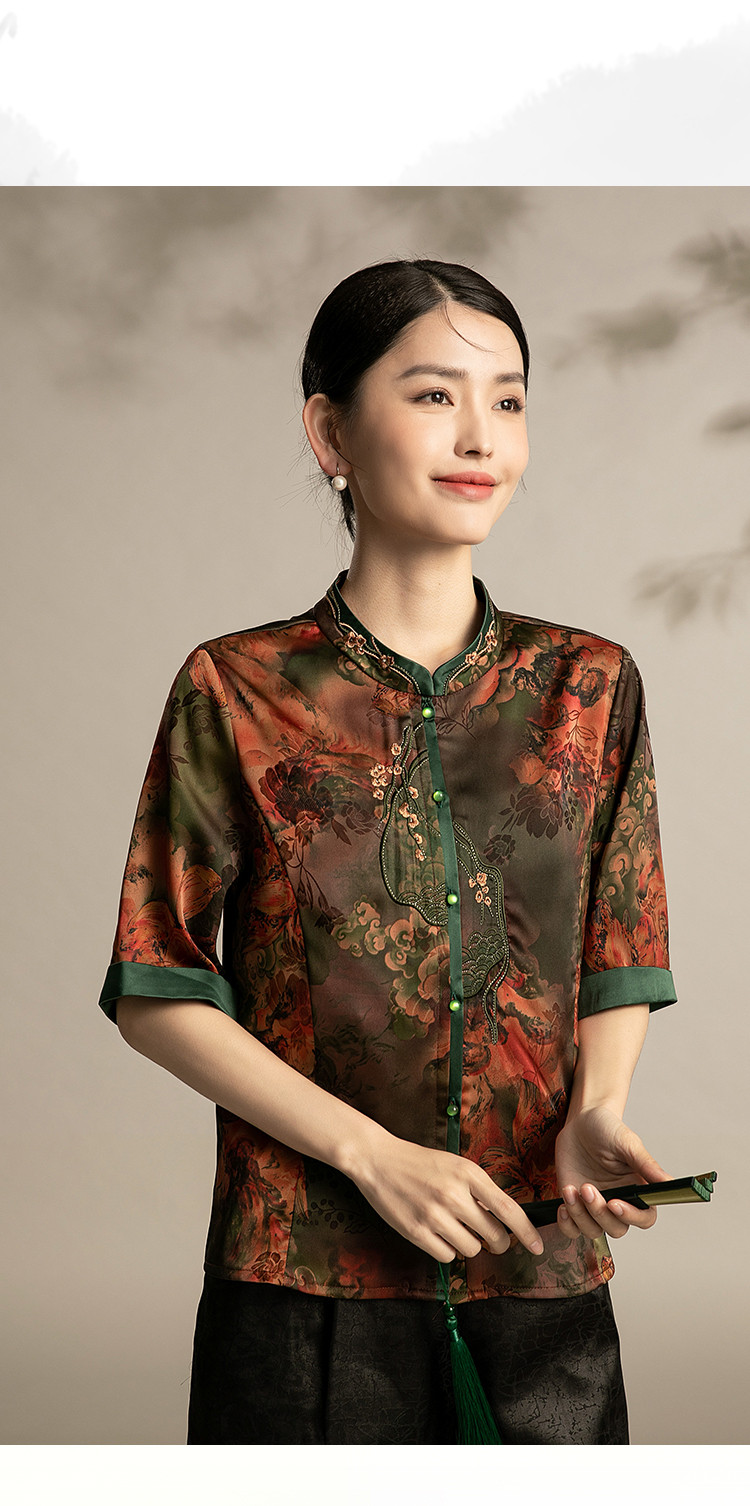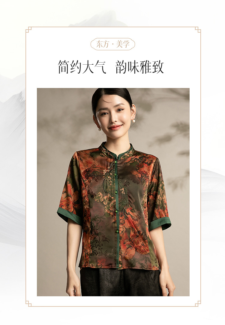商品名称:国风妈妈复古盘扣衬衫洋气中年女装上衣春季中老年妈妈通勤衬衫女 443743
