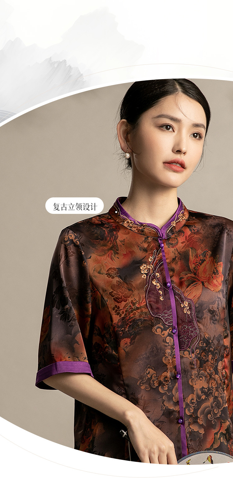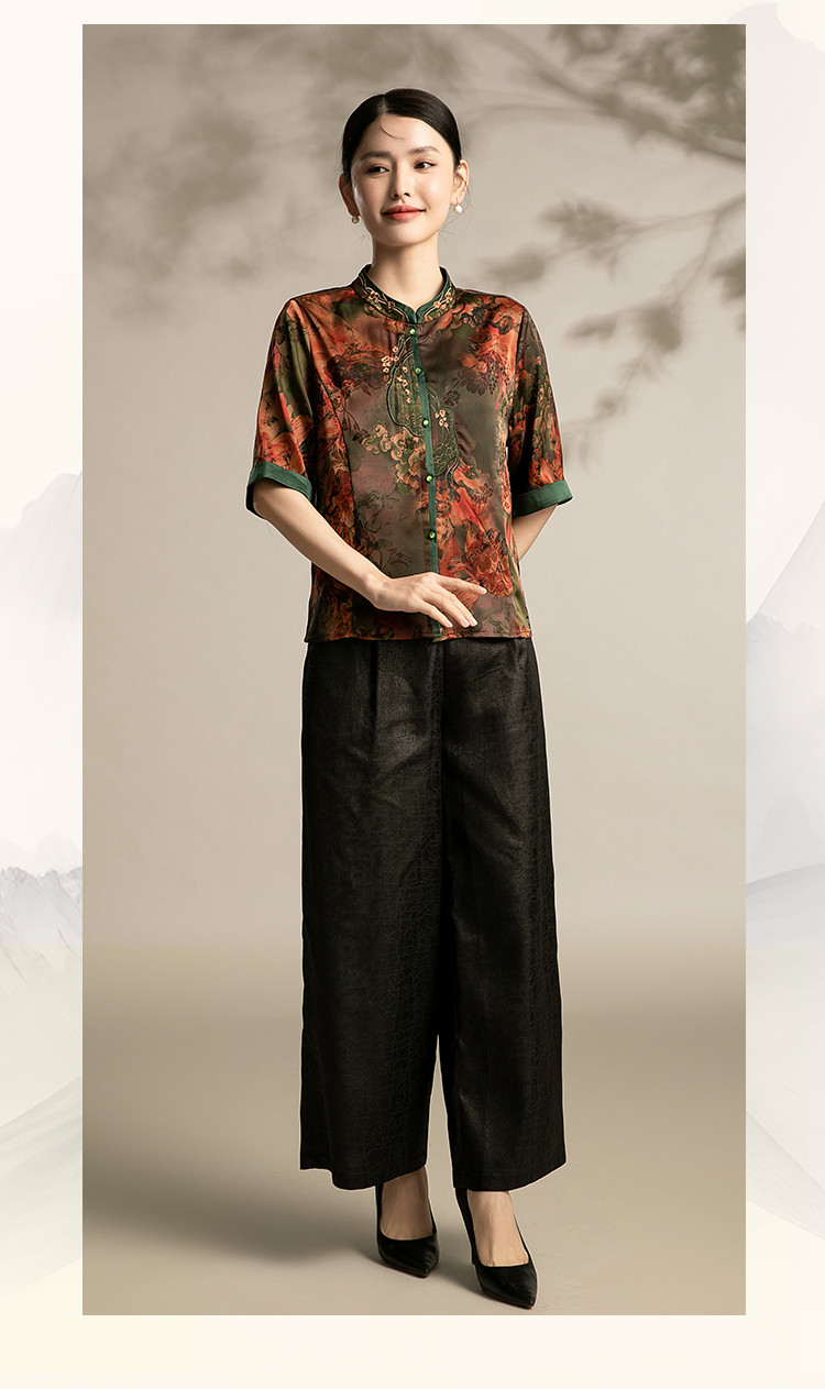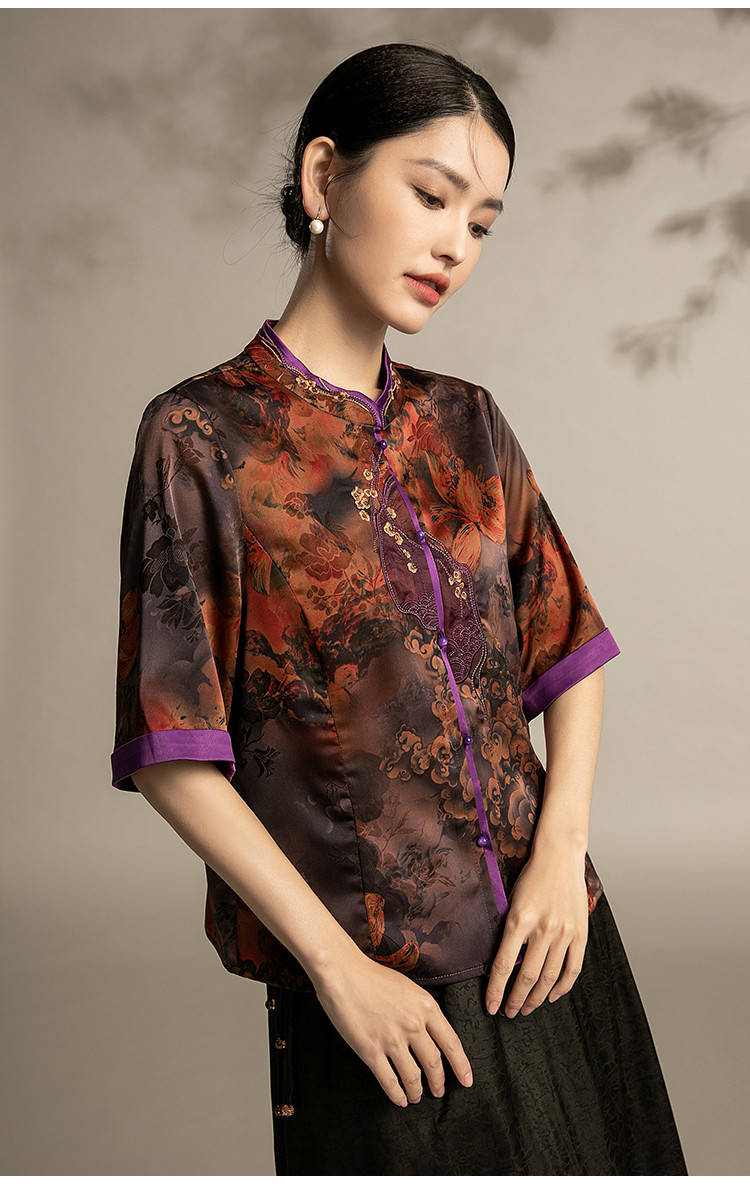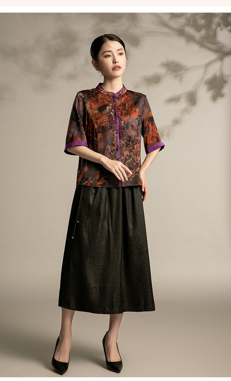 商品名称:国风妈妈复古盘扣衬衫洋气中年女装上衣春季中老年妈妈通勤衬衫女 443743