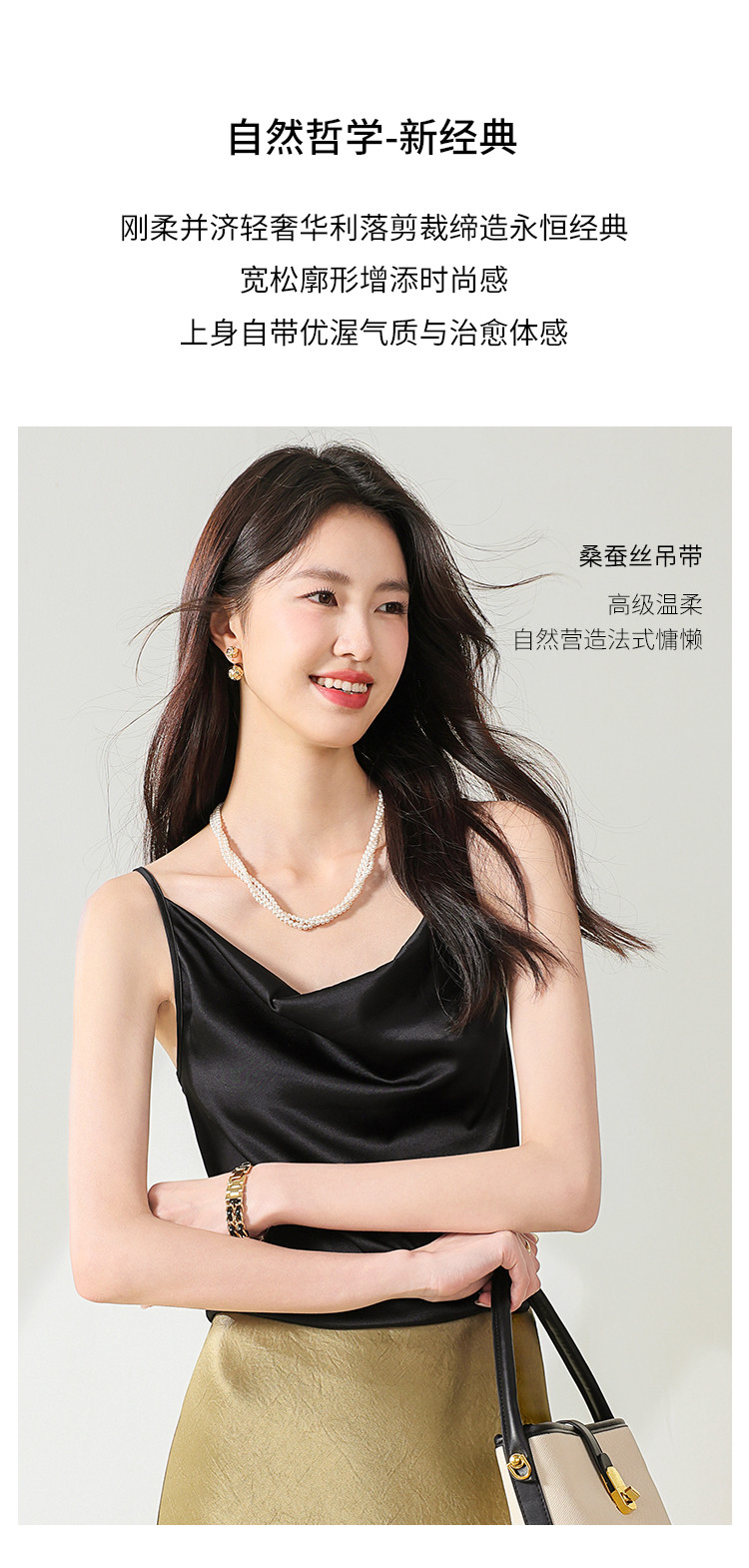 商品名称:【桑蚕丝】纯色V领桑蚕丝背心吊带无袖内搭衬衣 634515