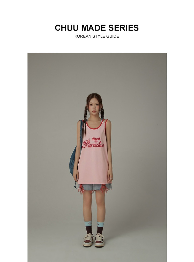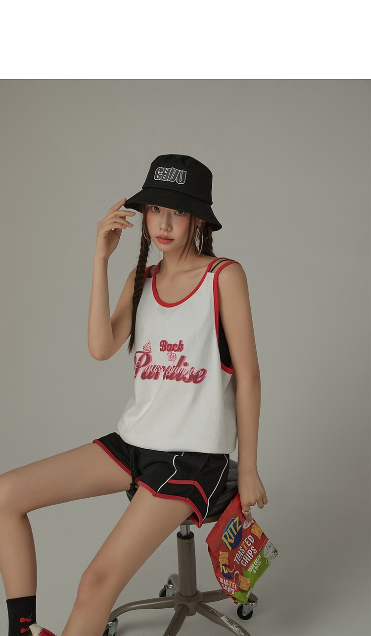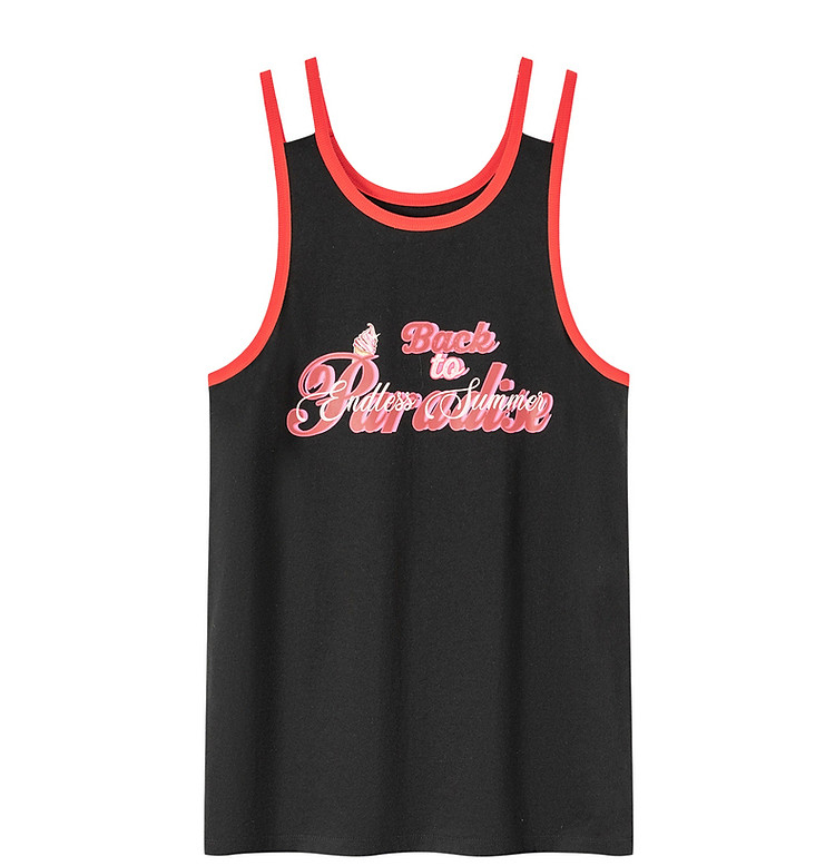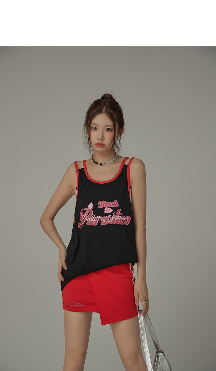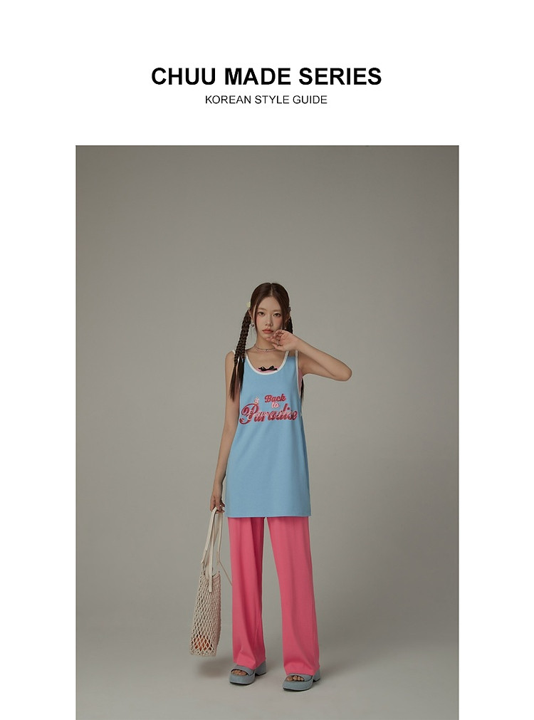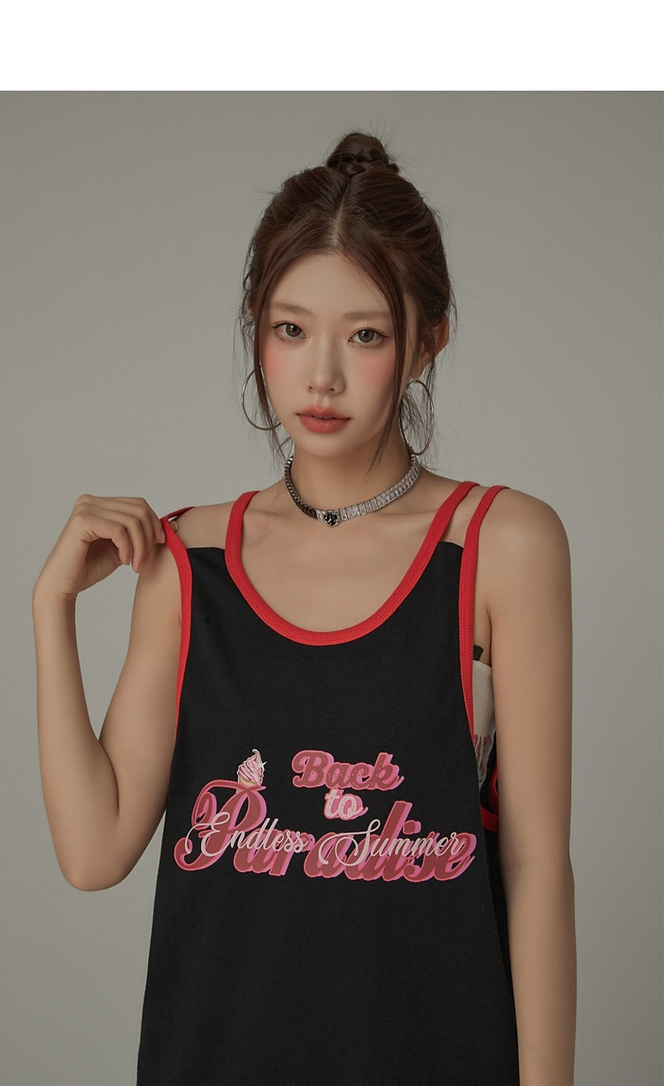 CHUU印花无袖背心女春夏镂空吊带撞色中长上衣 656595