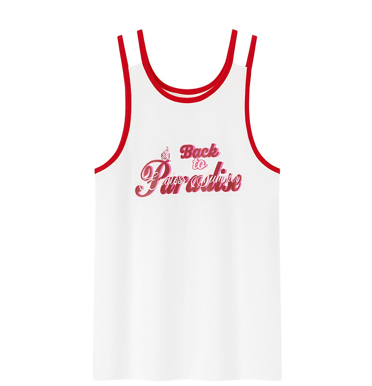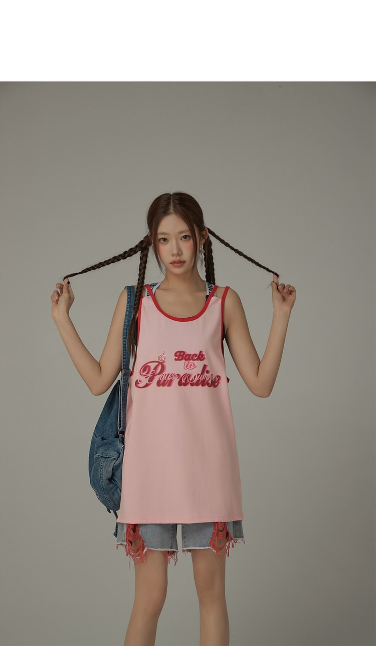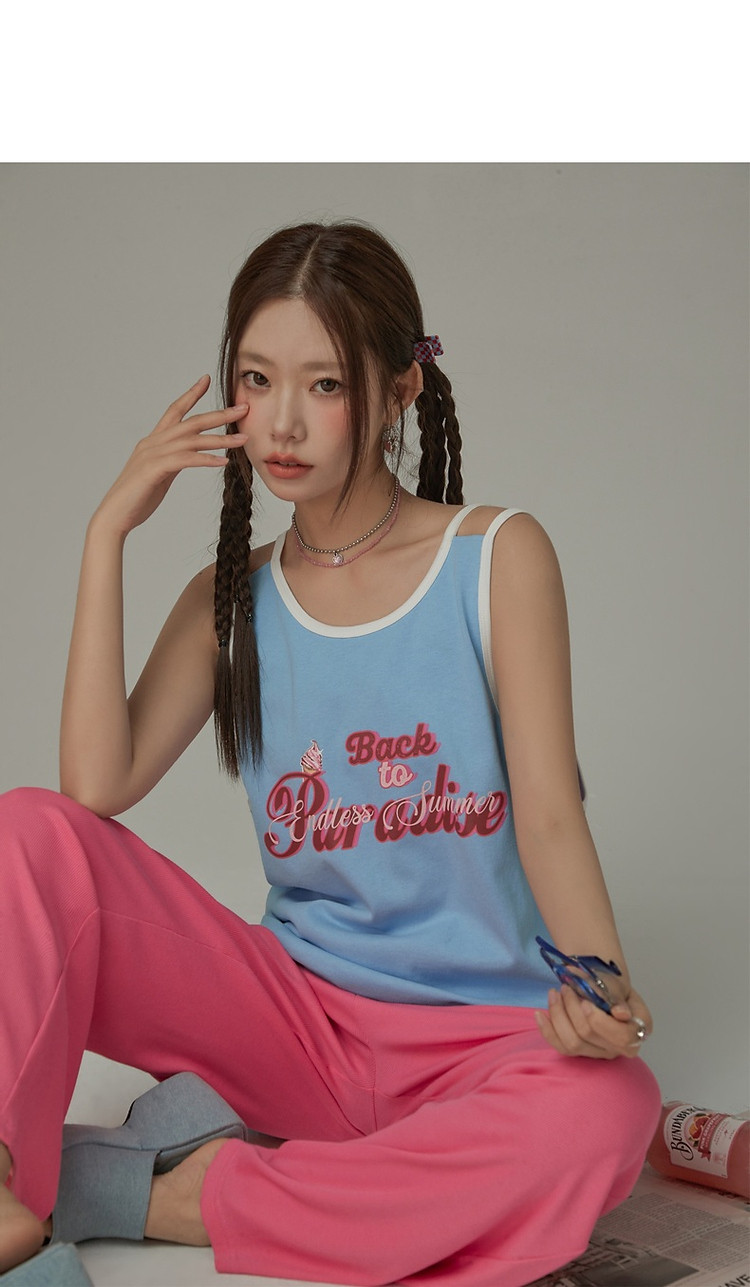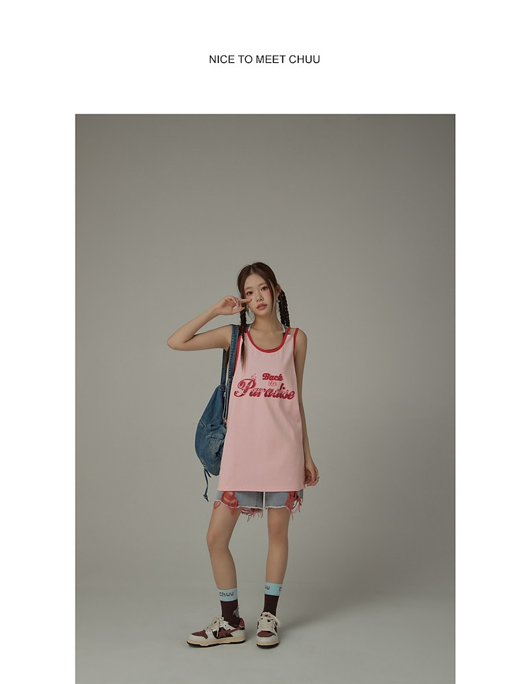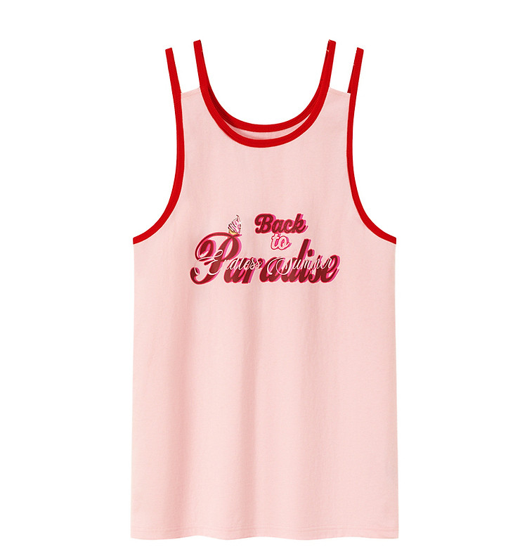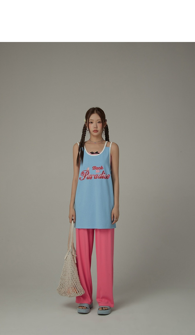 CHUU印花无袖背心女春夏镂空吊带撞色中长上衣 656595