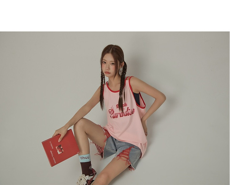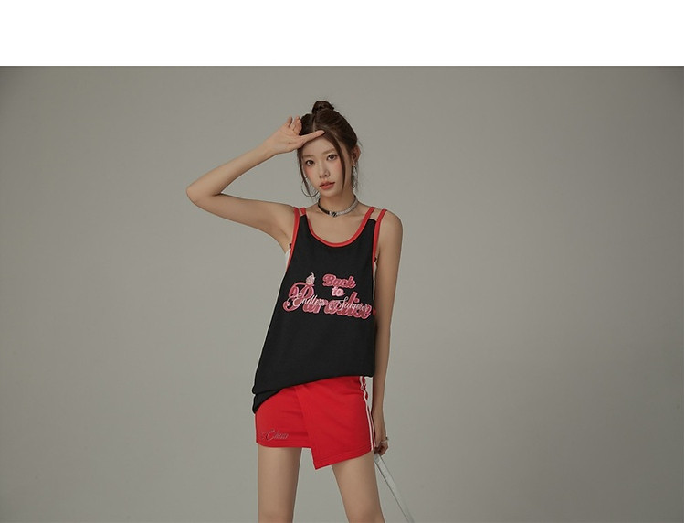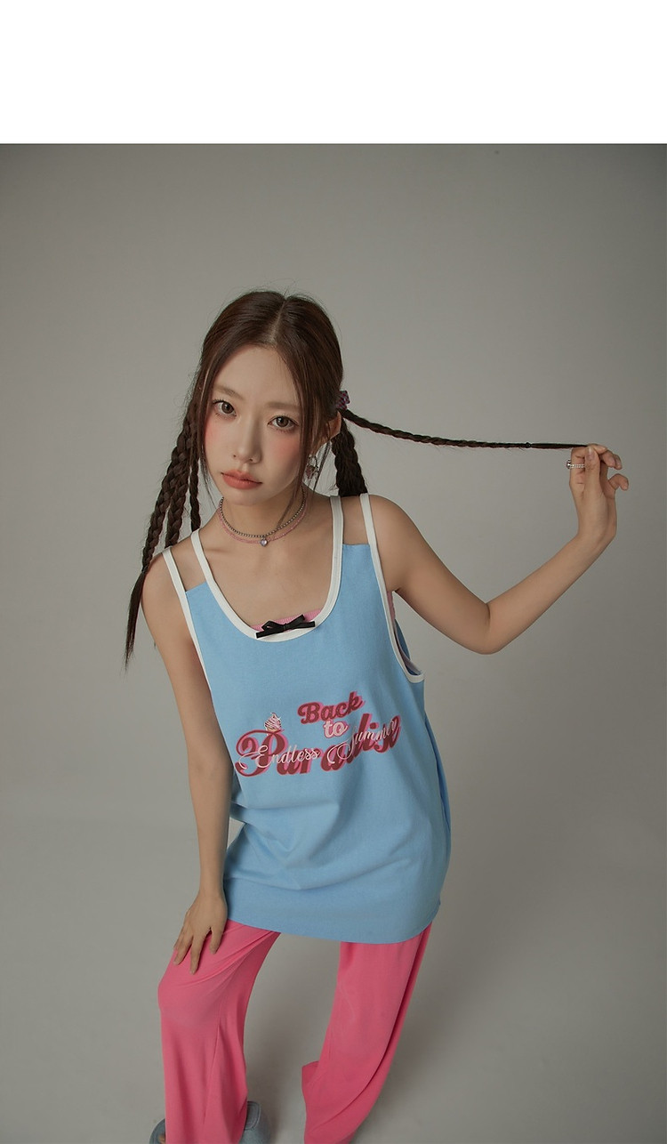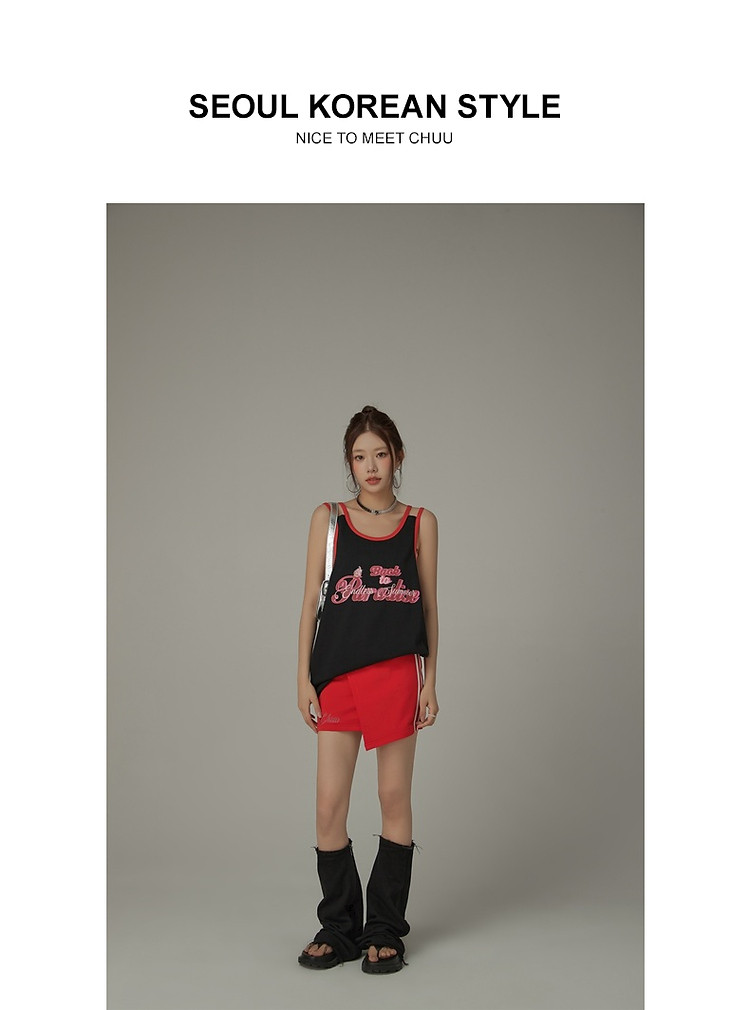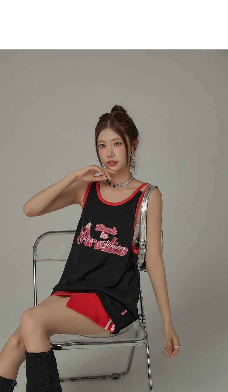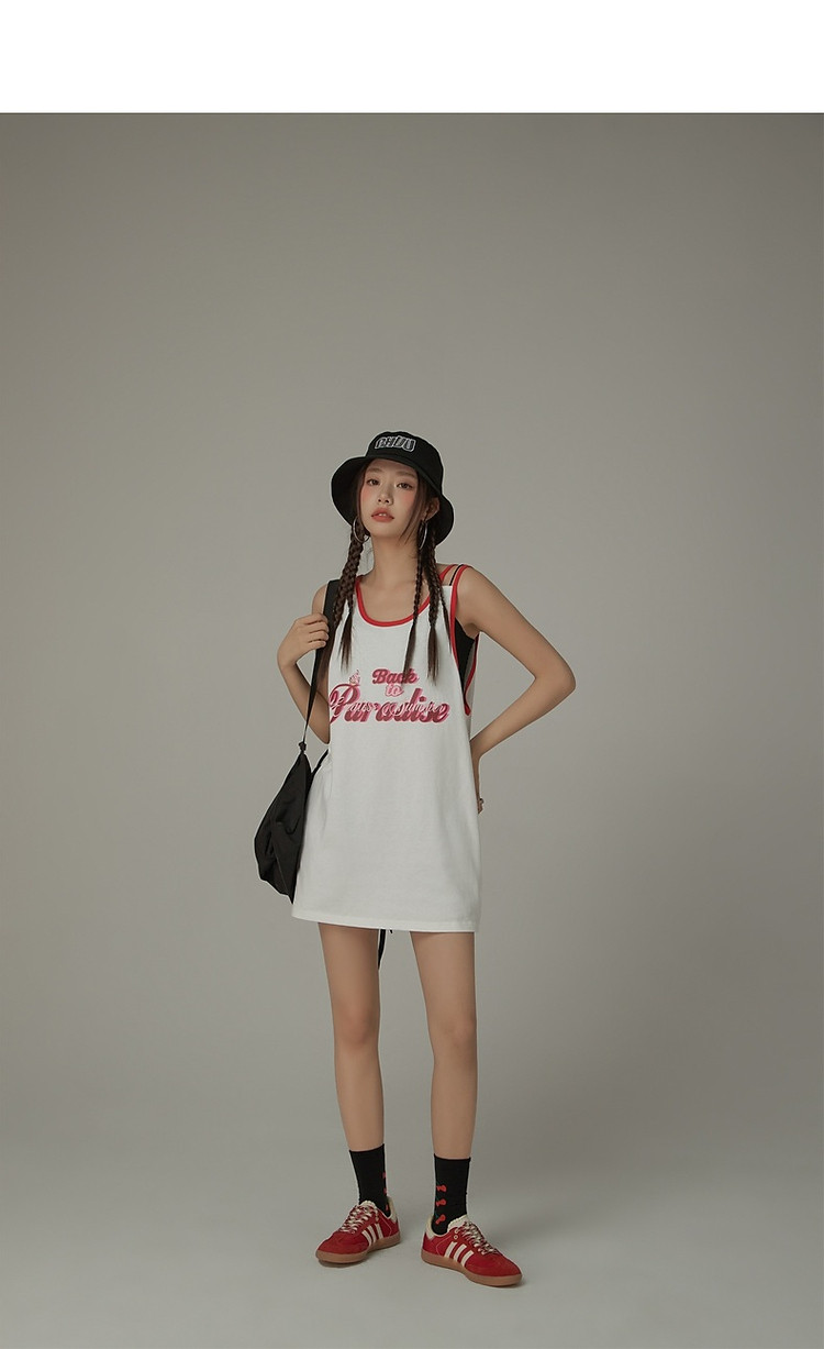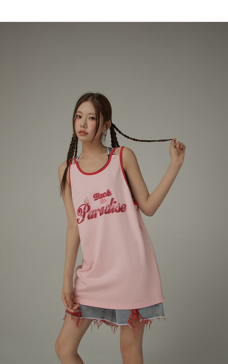 CHUU印花无袖背心女春夏镂空吊带撞色中长上衣 656595