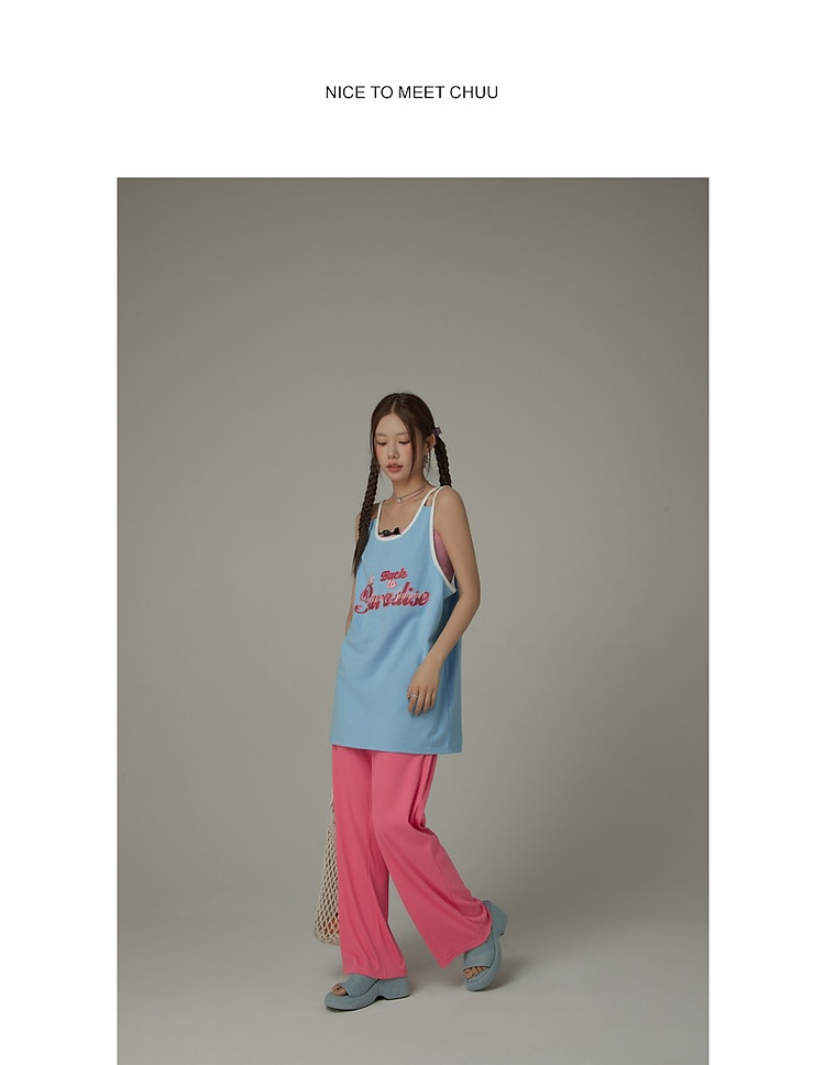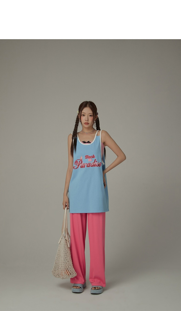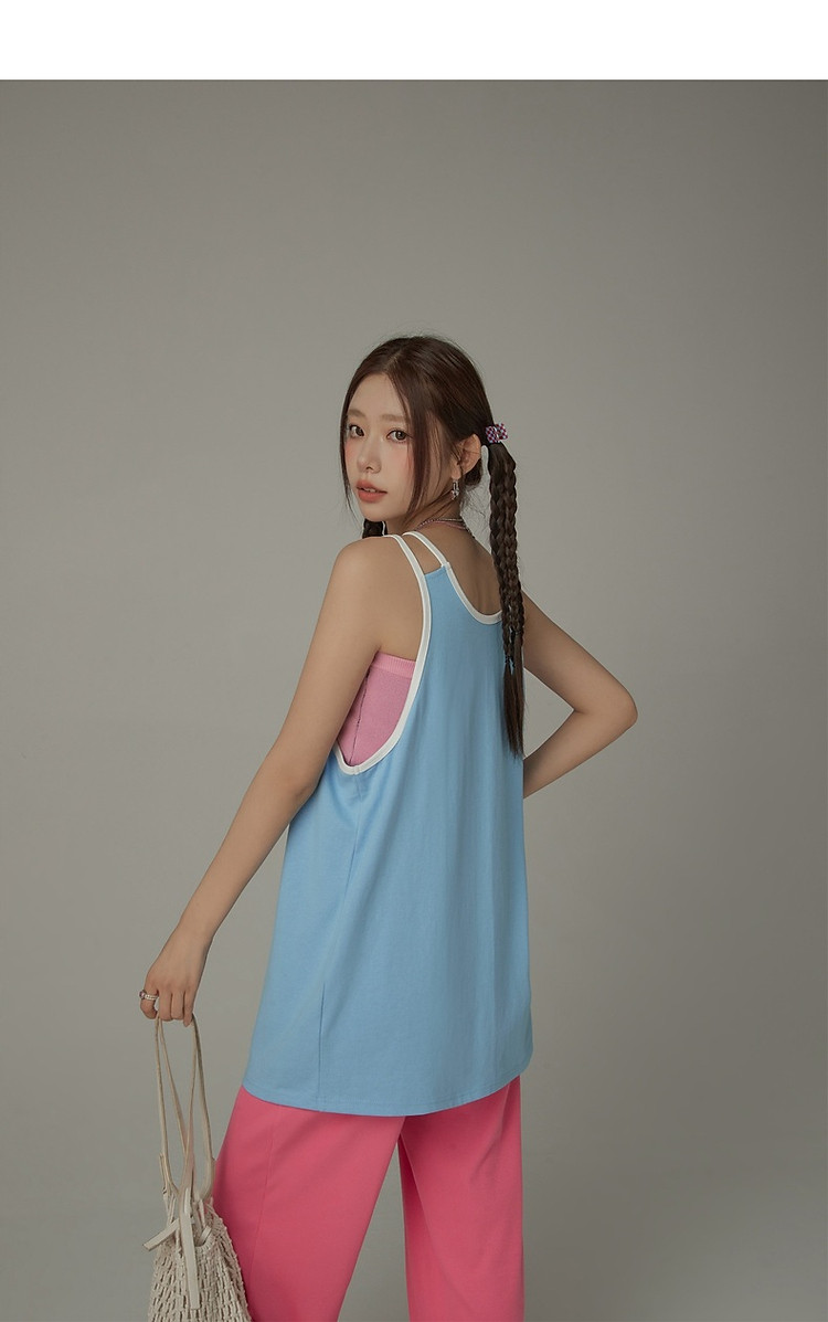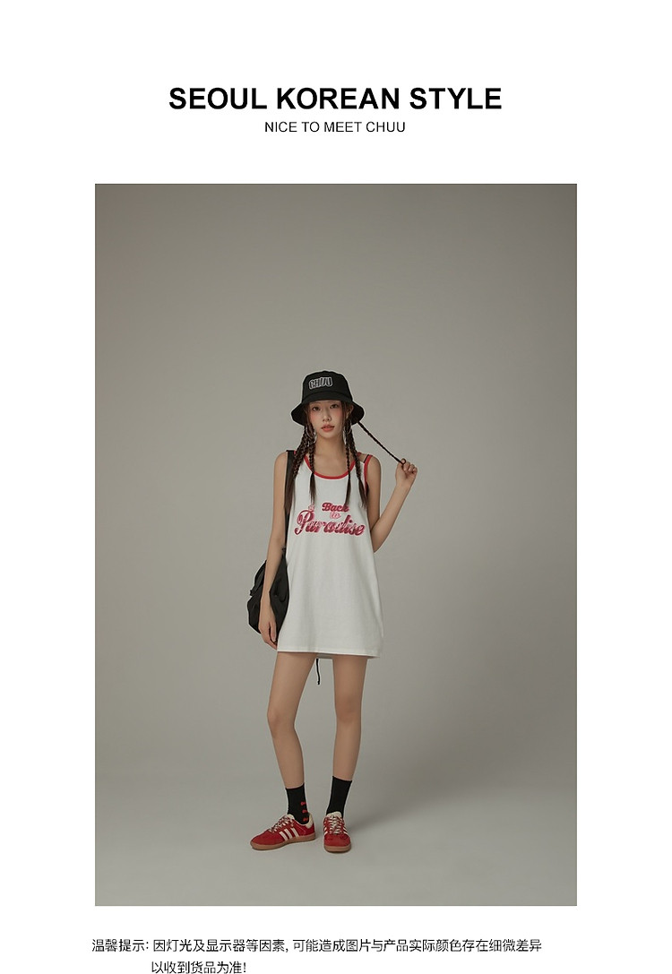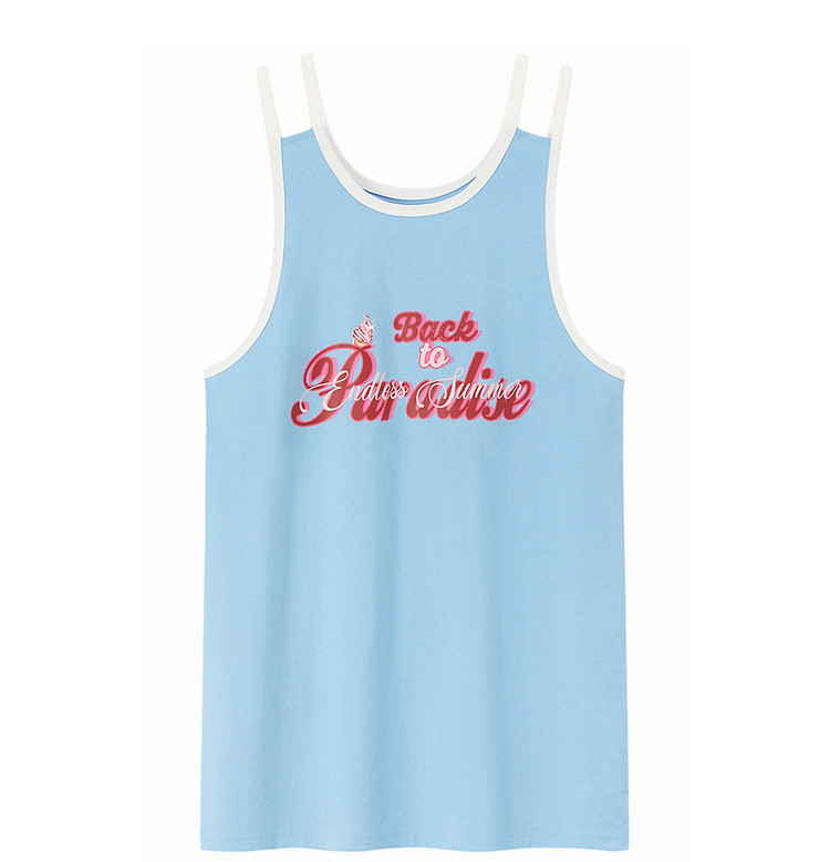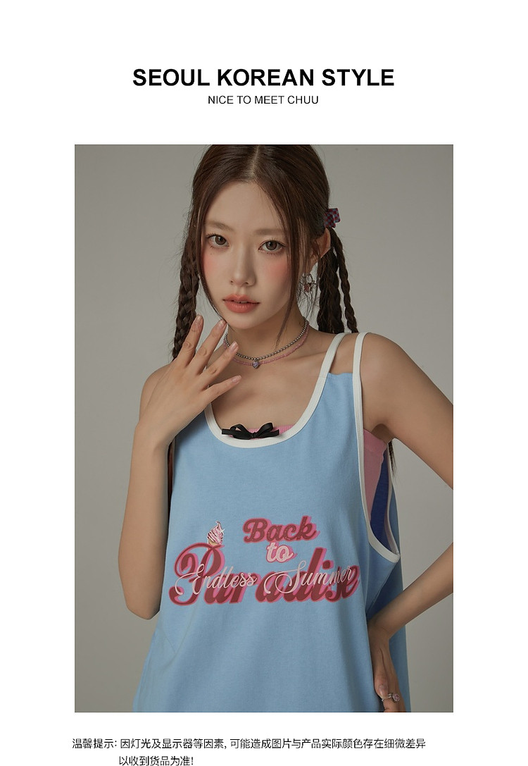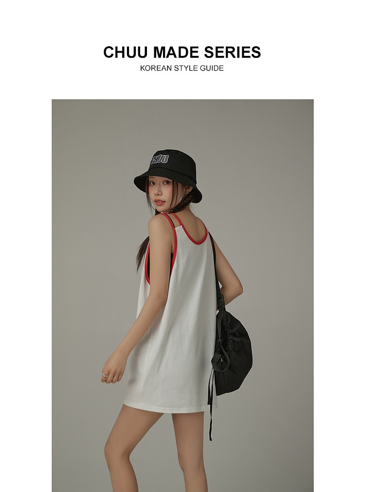 商品名称:CHUU印花无袖背心女春夏镂空吊带撞色中长上衣 656595