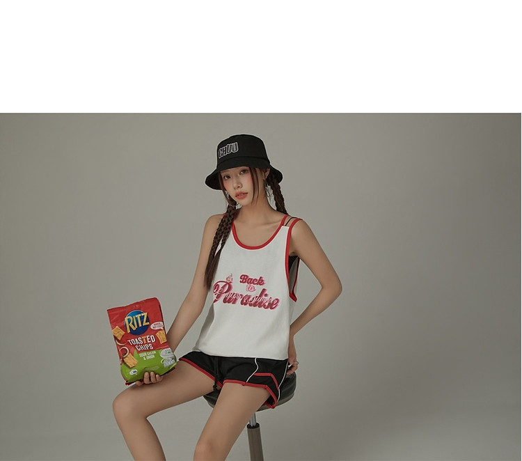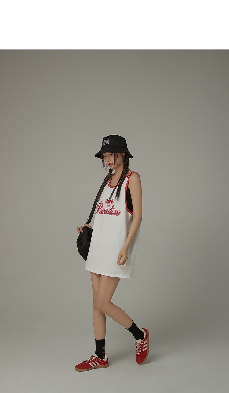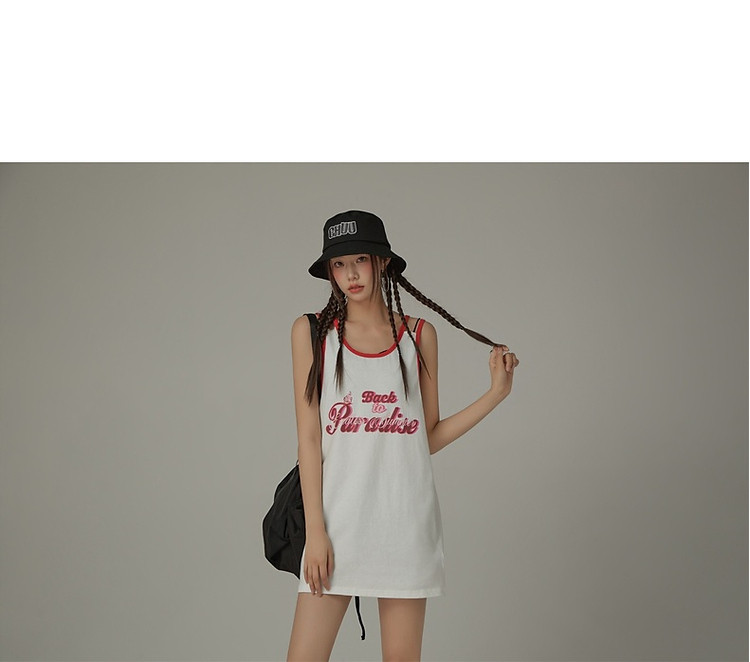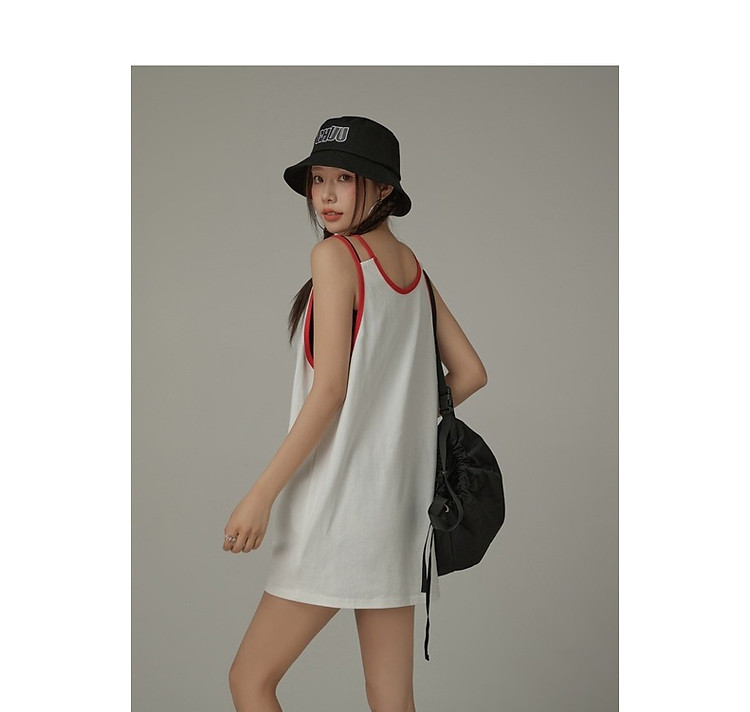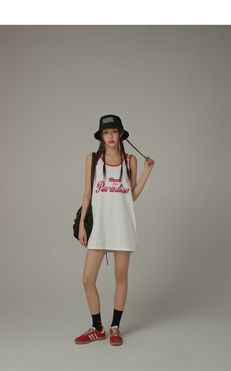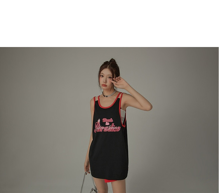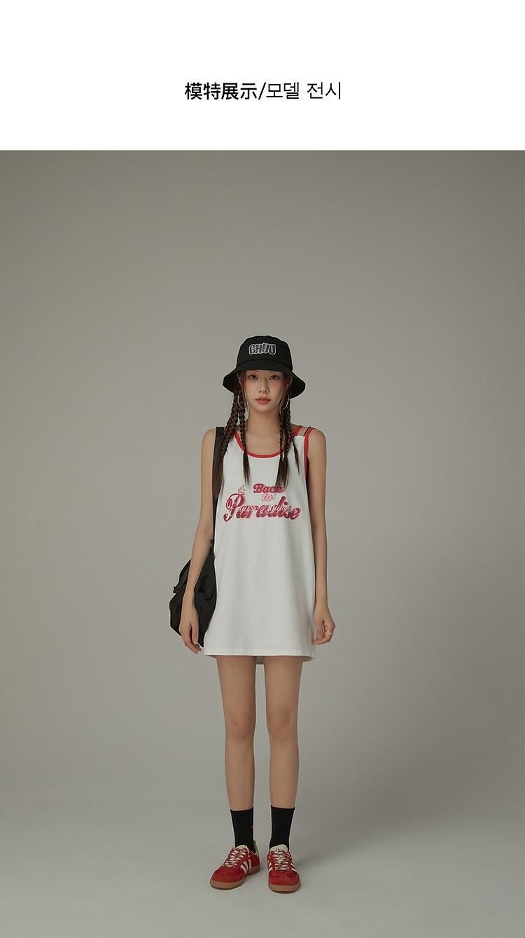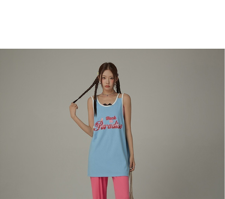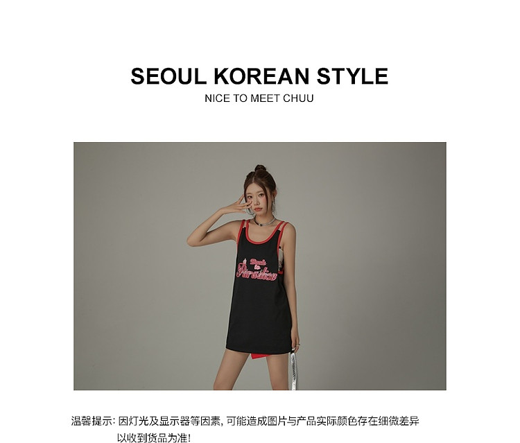 商品名称:CHUU印花无袖背心女春夏镂空吊带撞色中长上衣 656595