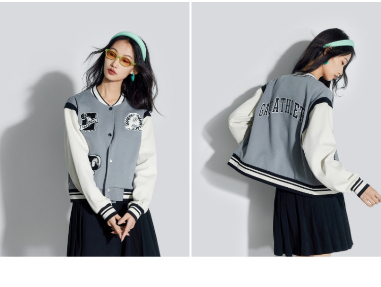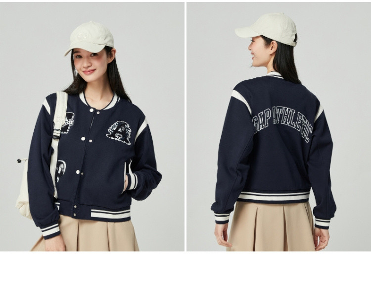Gap女装春季纯棉撞色贴布绣logo棒球服学院风外套872711 937946