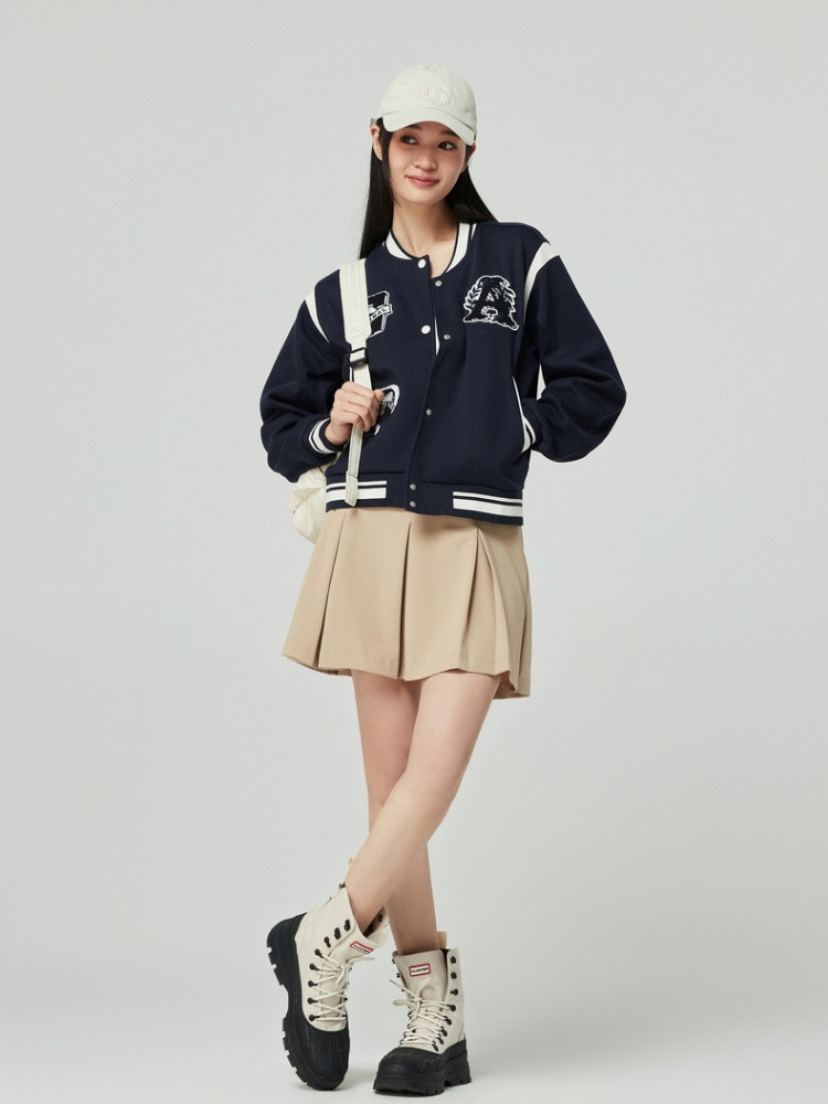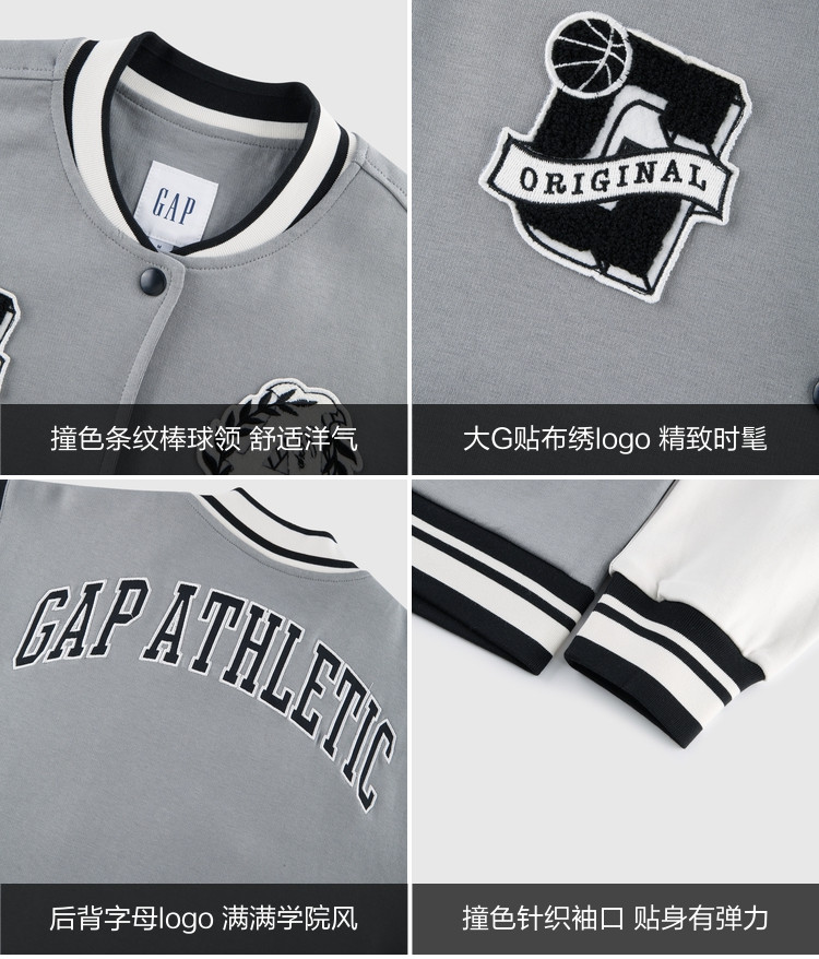 商品名称:Gap女装春季纯棉撞色贴布绣logo棒球服学院风外套872711 937946