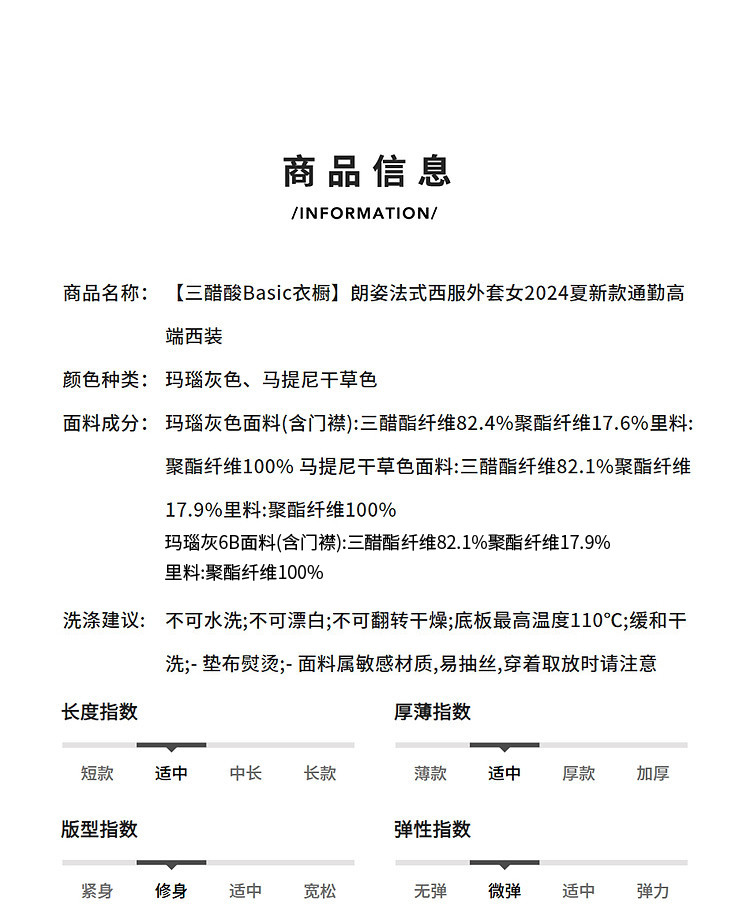 商品名称:法式三醋酸高级感气质西服外套女夏款通勤高端西装 078553