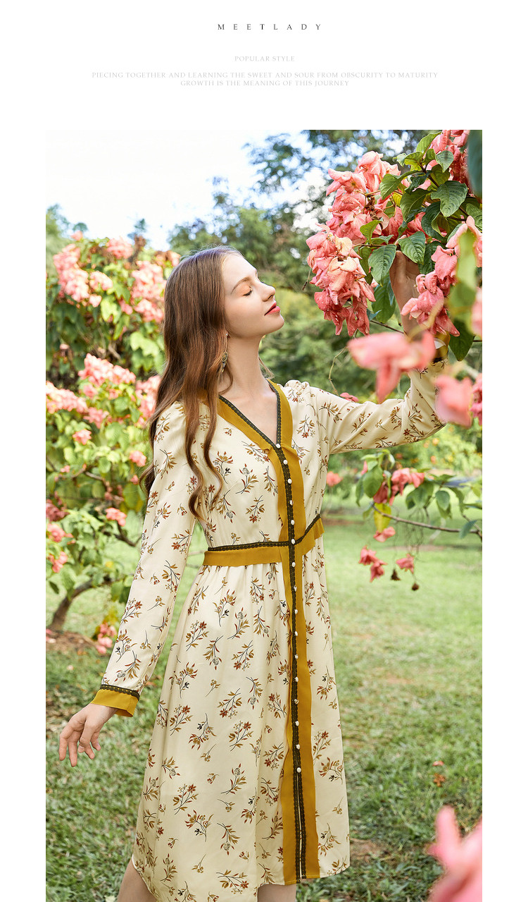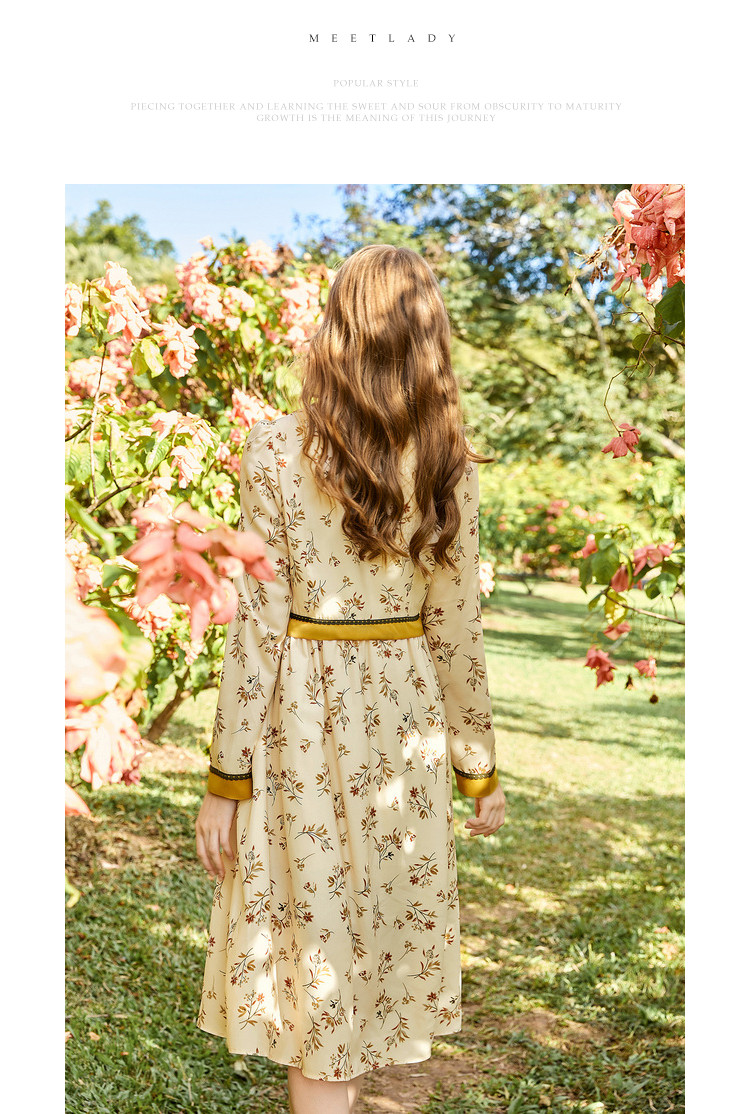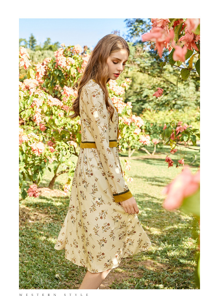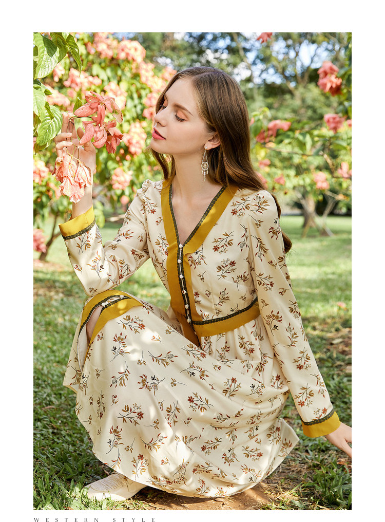 商品名称:春秋法式复古小心机设计感长裙女长袖碎花连衣裙 982612