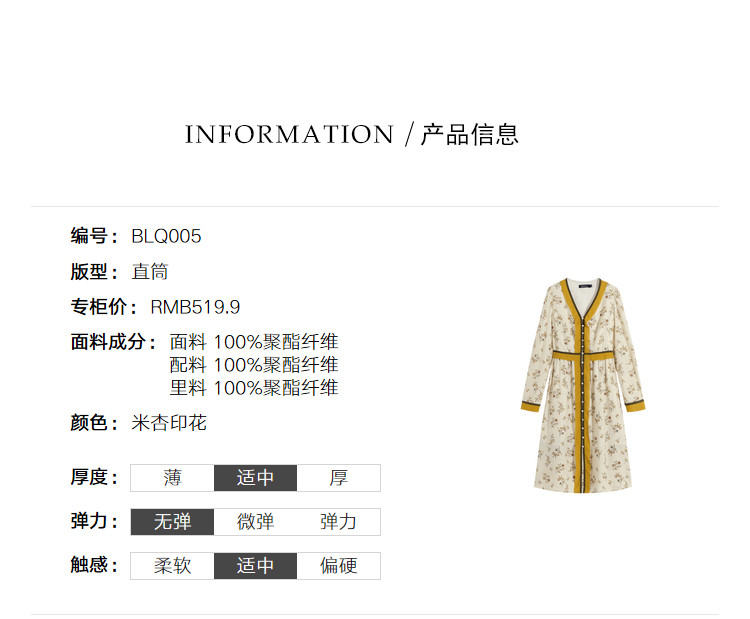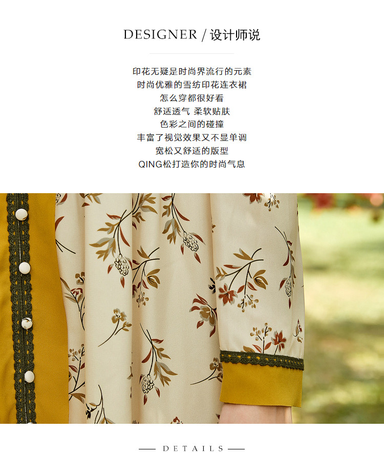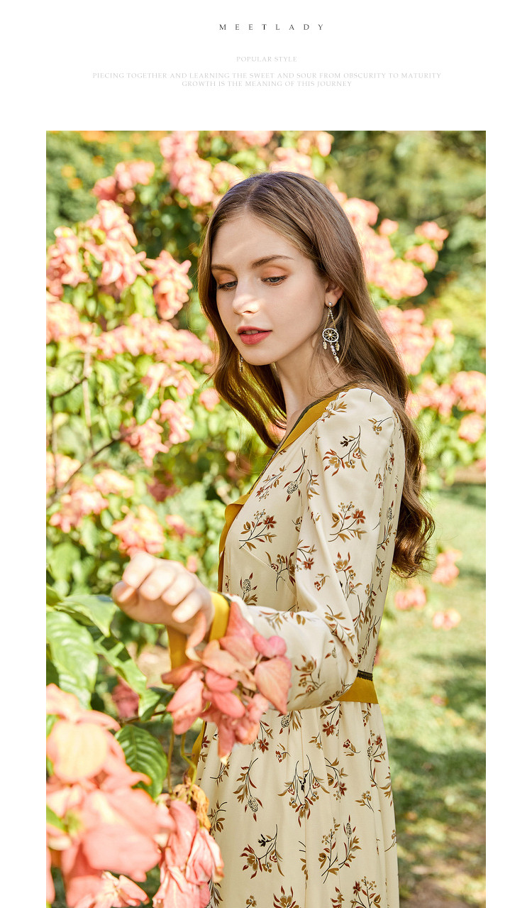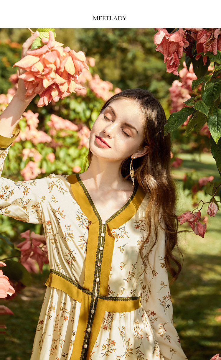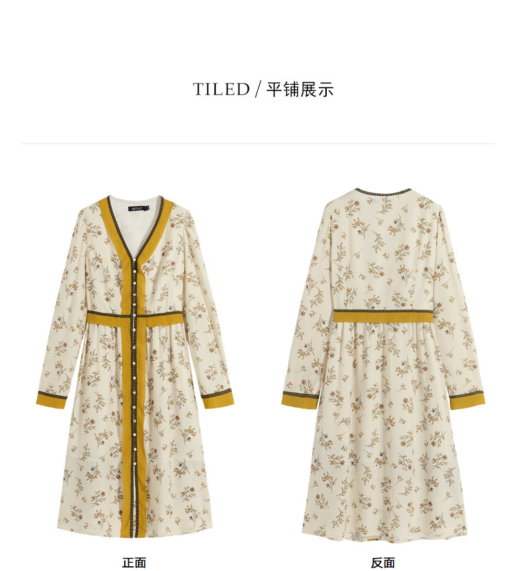商品名称:春秋法式复古小心机设计感长裙女长袖碎花连衣裙 982612