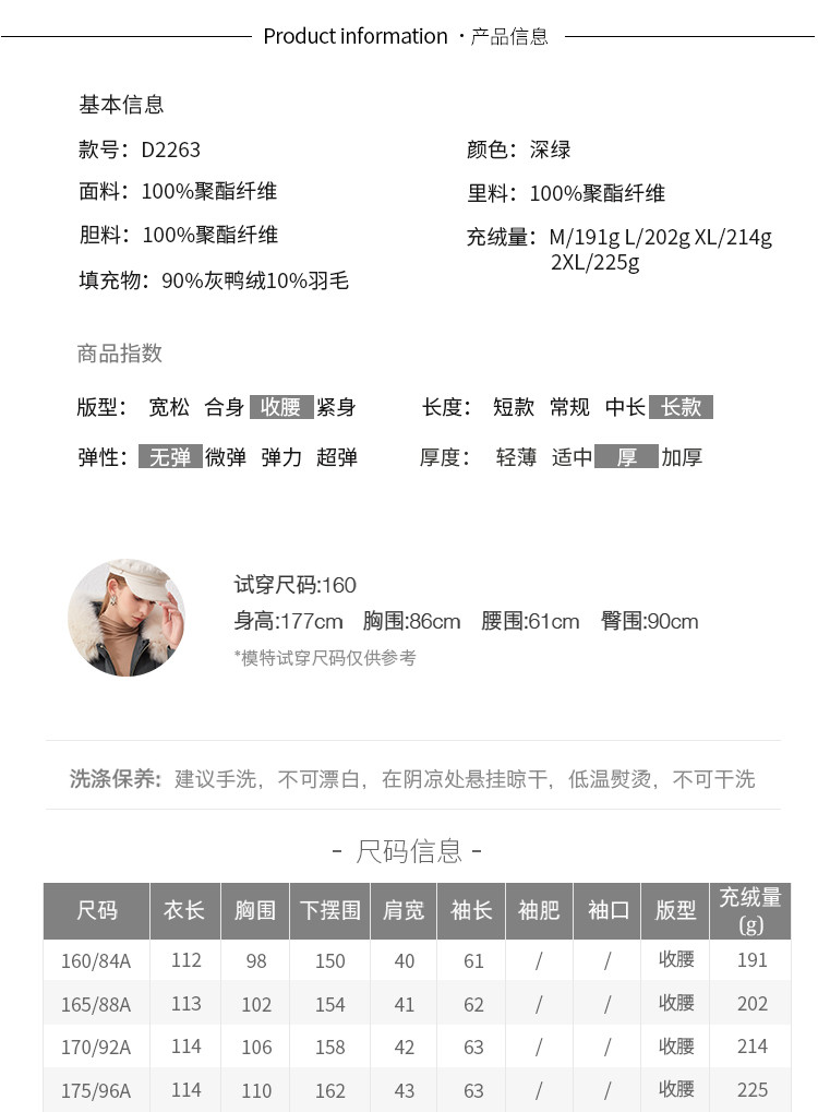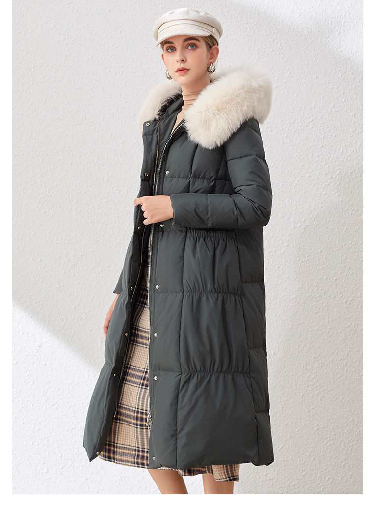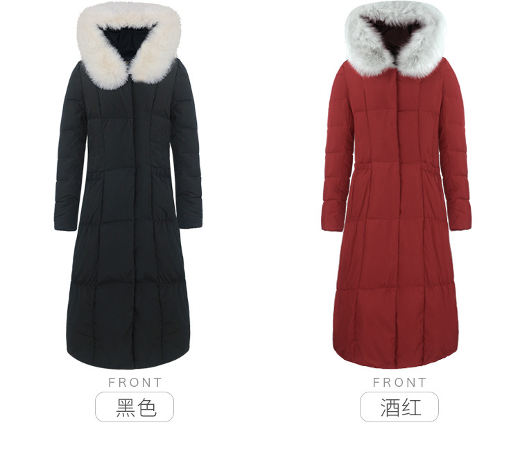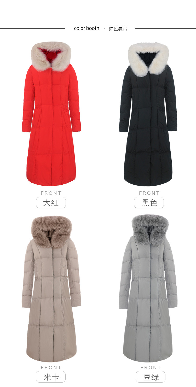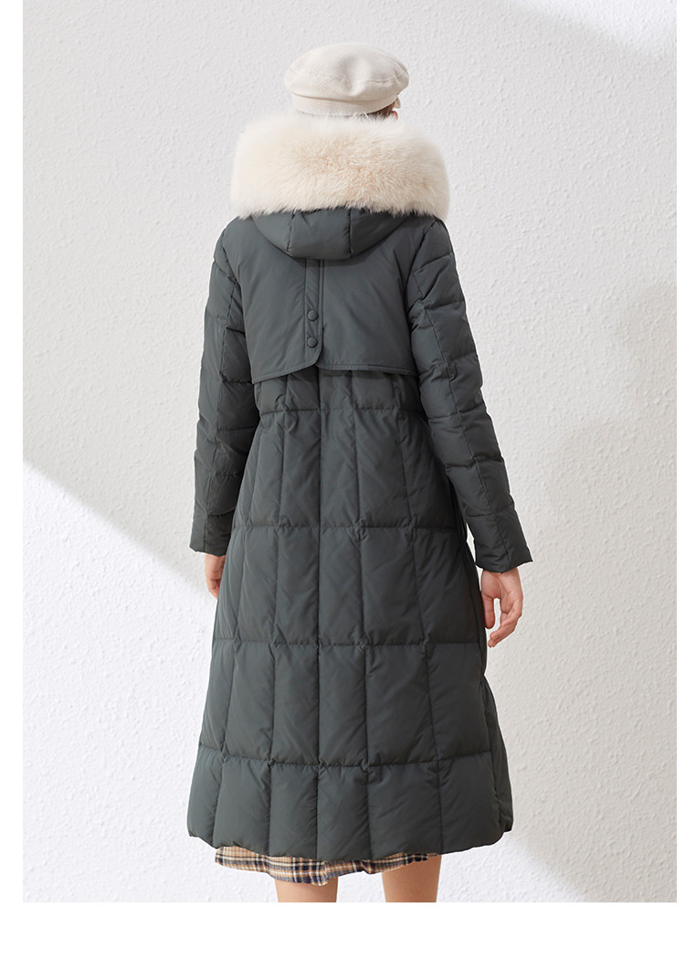 商品名称:【好物推荐】都市休闲风天然大毛领连帽厚款竖切格长款女式羽绒服 516319