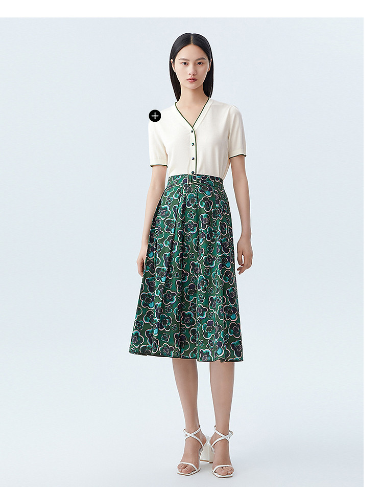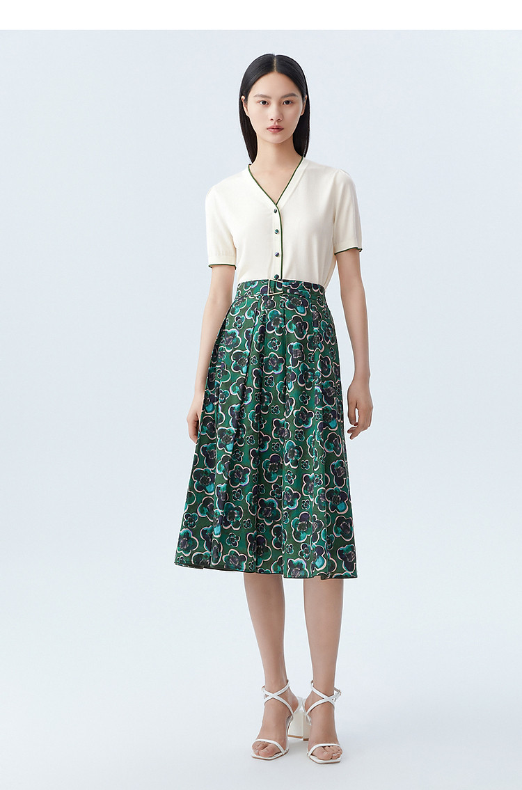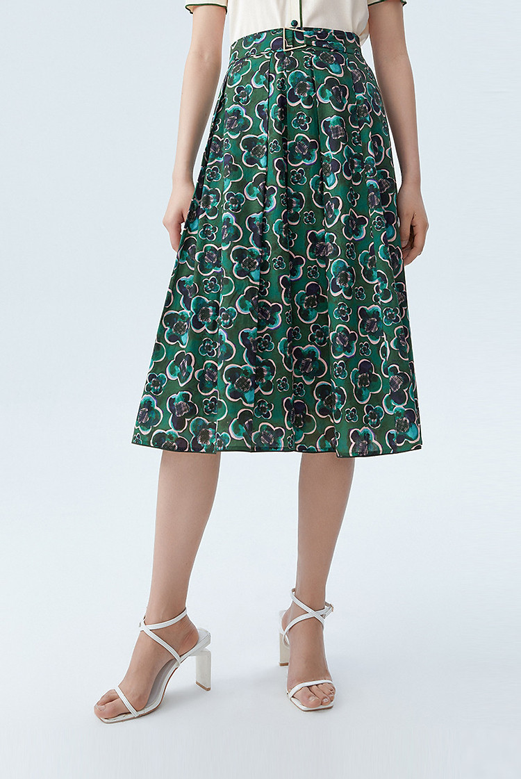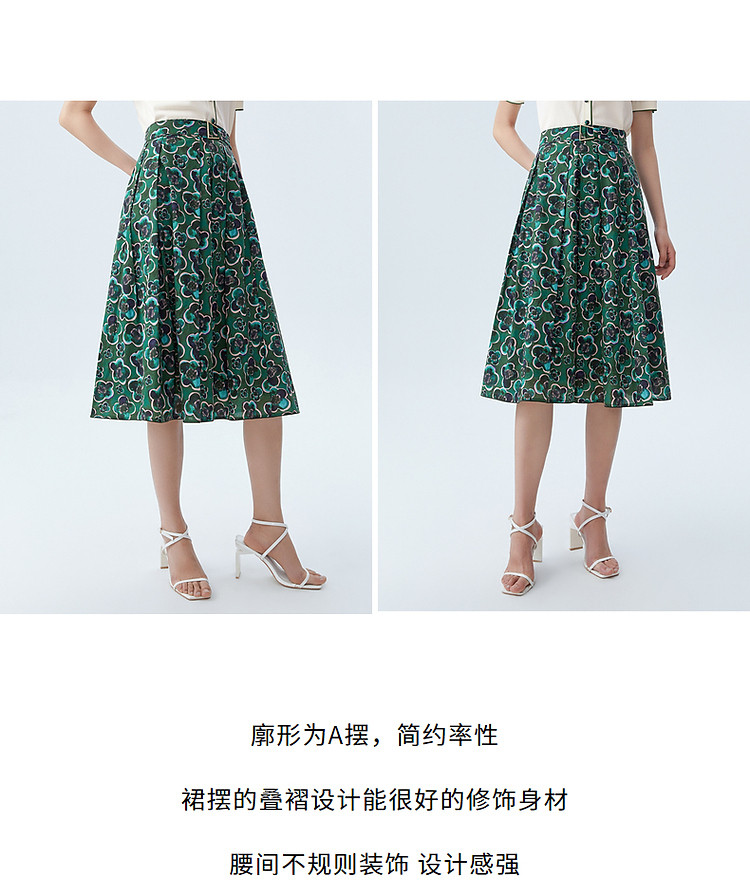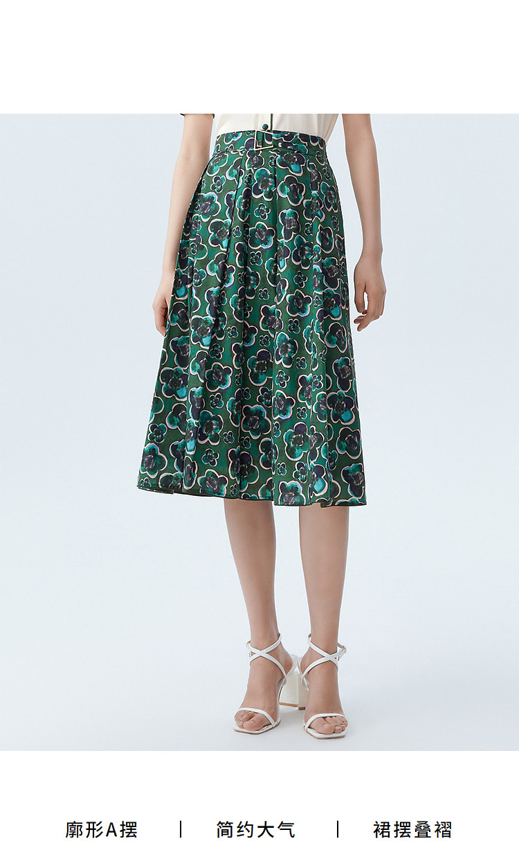 商品名称:春秋植物印花设计感女式半裙A字裙朗姿集团旗下俪雅 954969