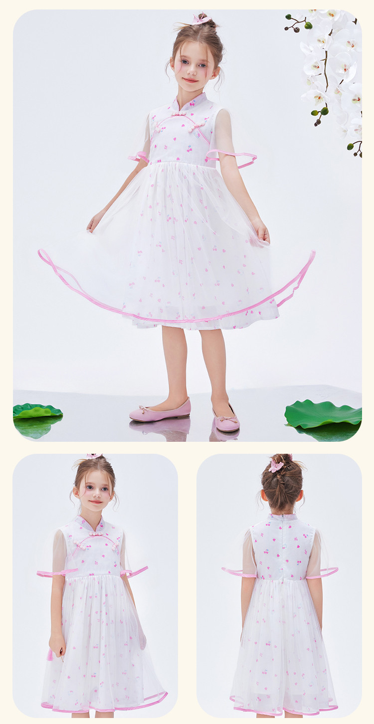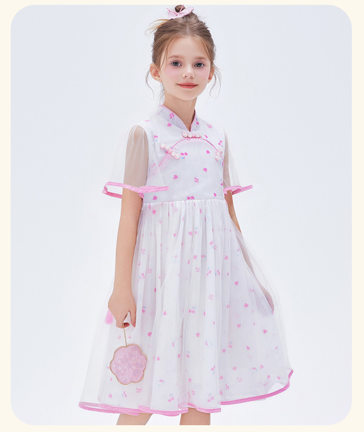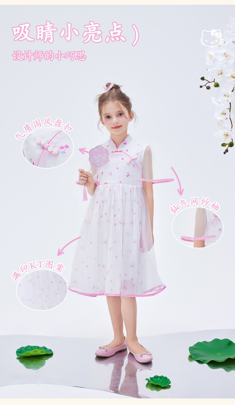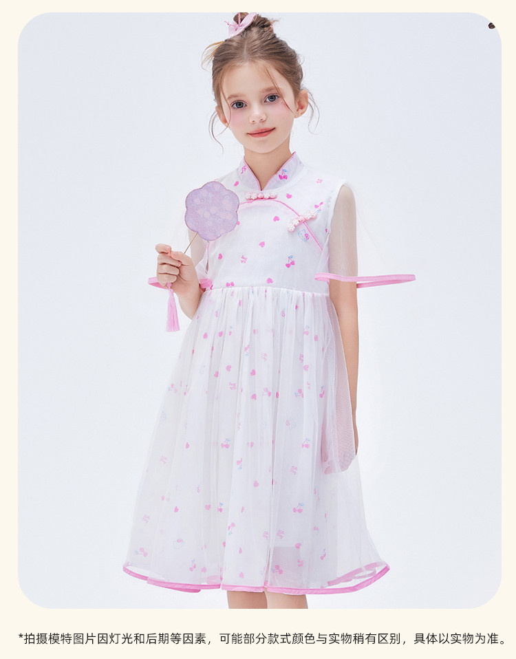 商品名称:【女童夏季国风连衣裙】2025款中大童盘扣卡通满印新中式裙子 694942