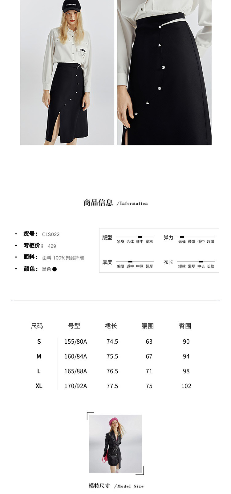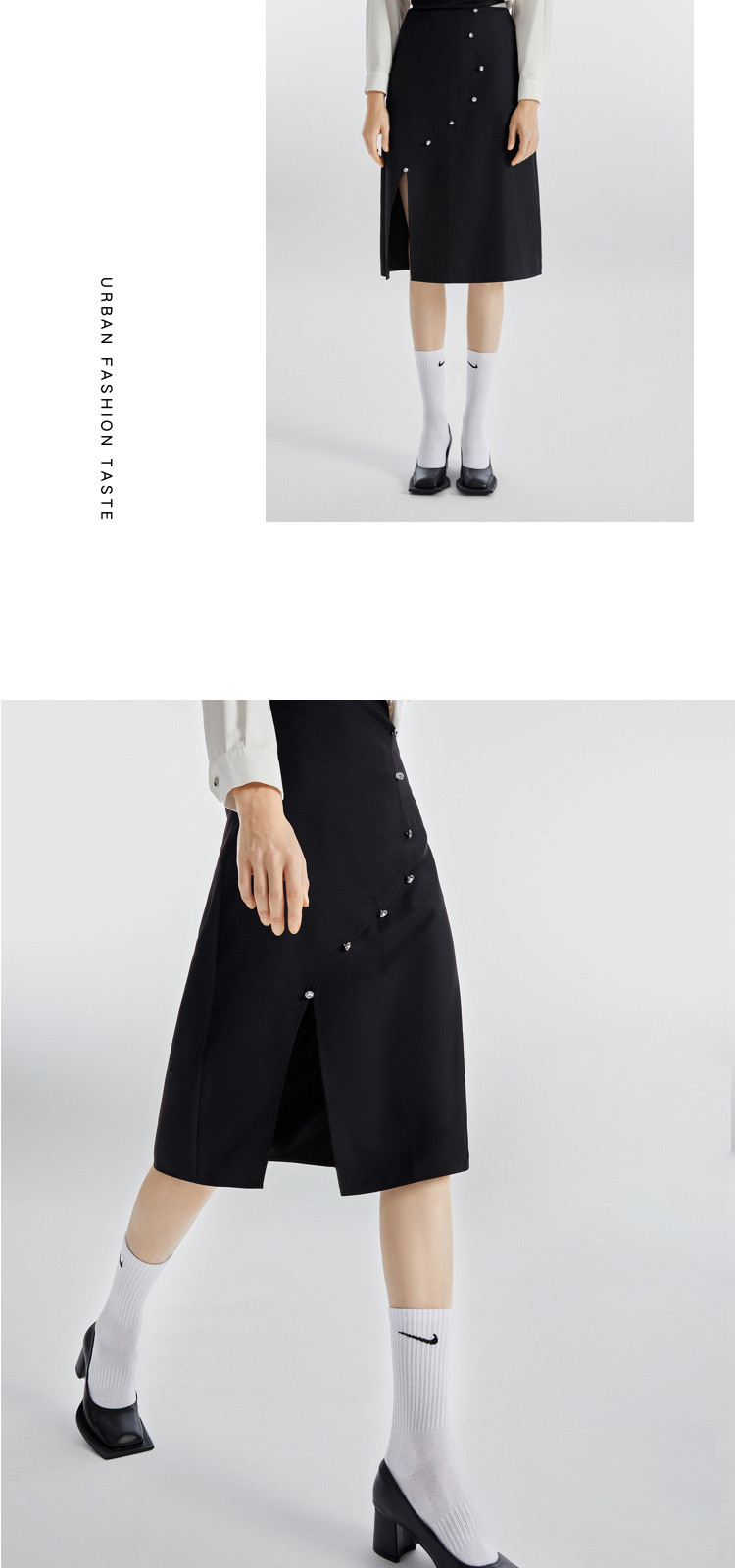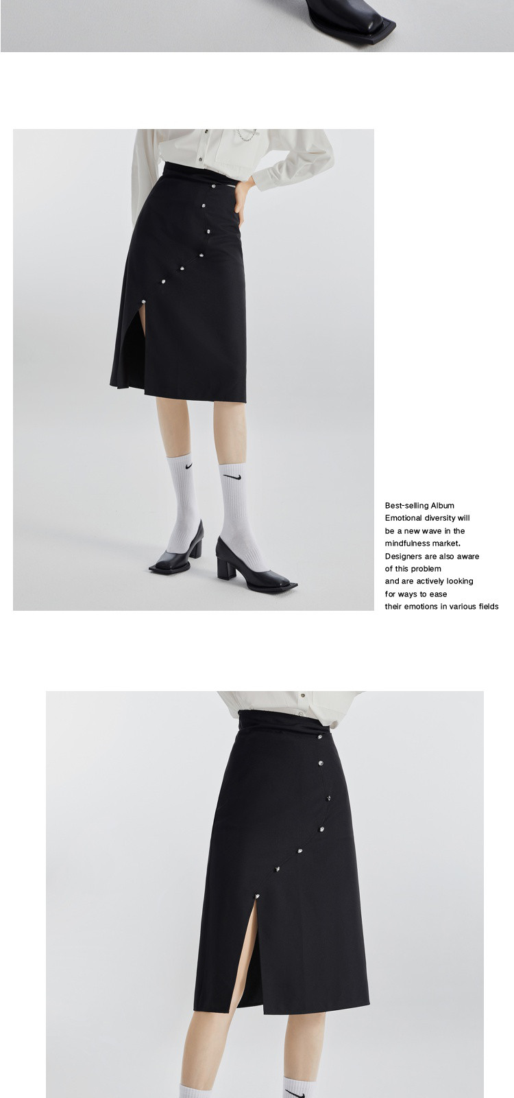 商品名称:不规则开叉下摆春秋黑色a字半身裙女轻熟风设计感小众裙 492116