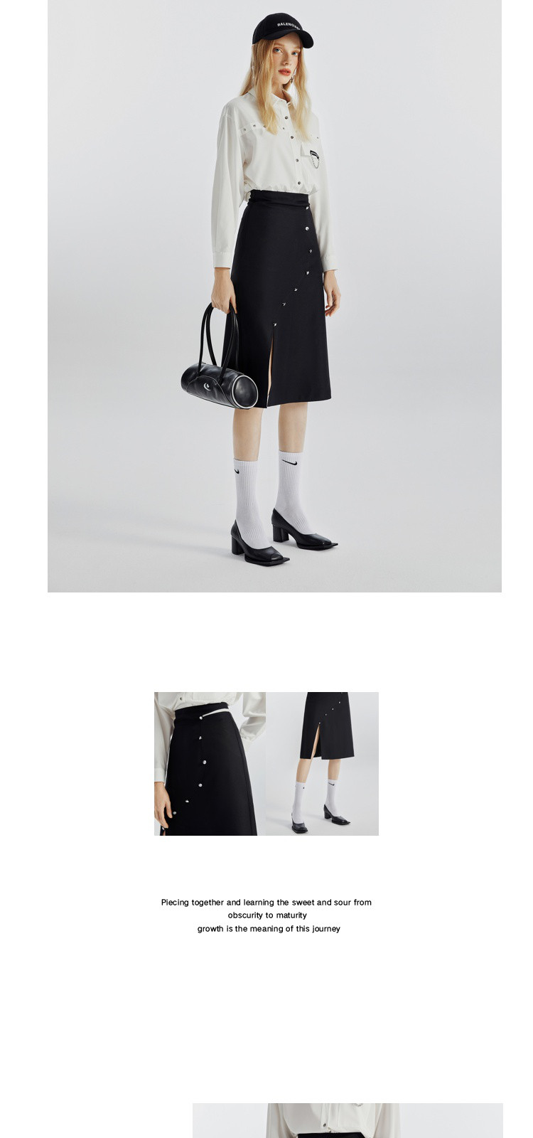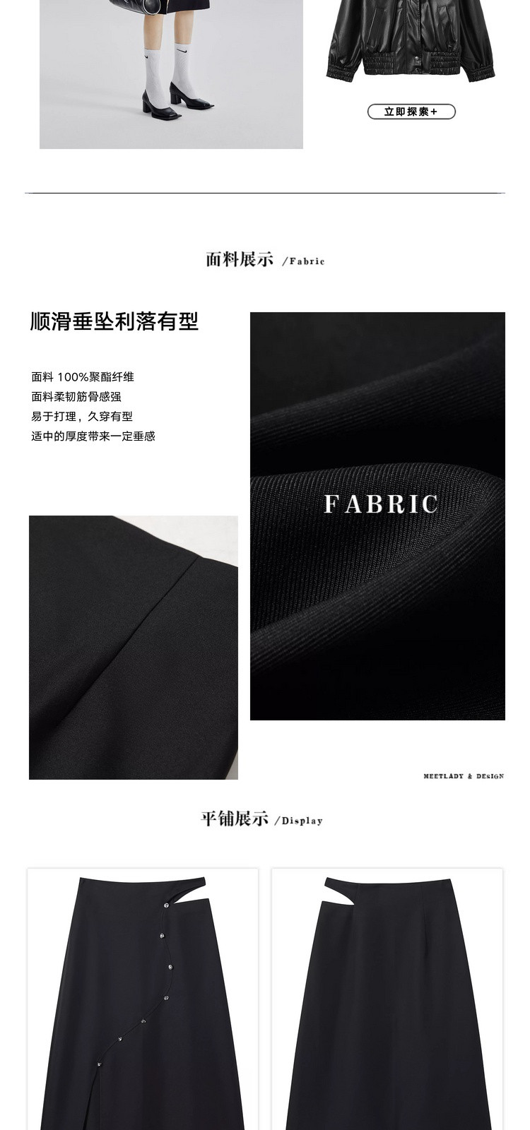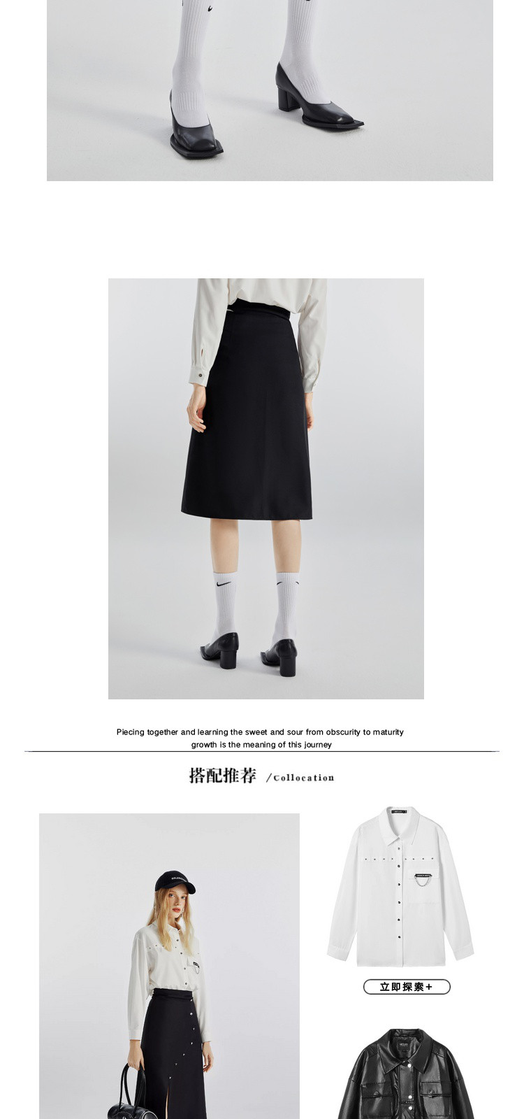 商品名称:不规则开叉下摆春秋黑色a字半身裙女轻熟风设计感小众裙 492116