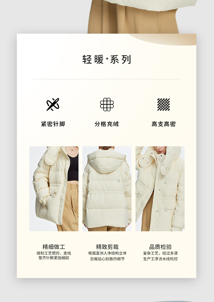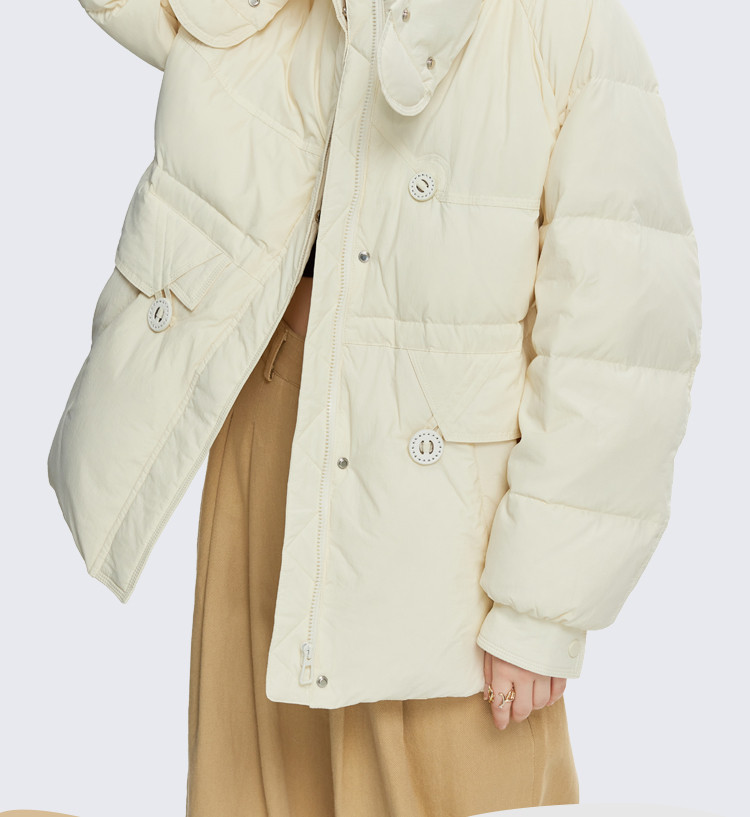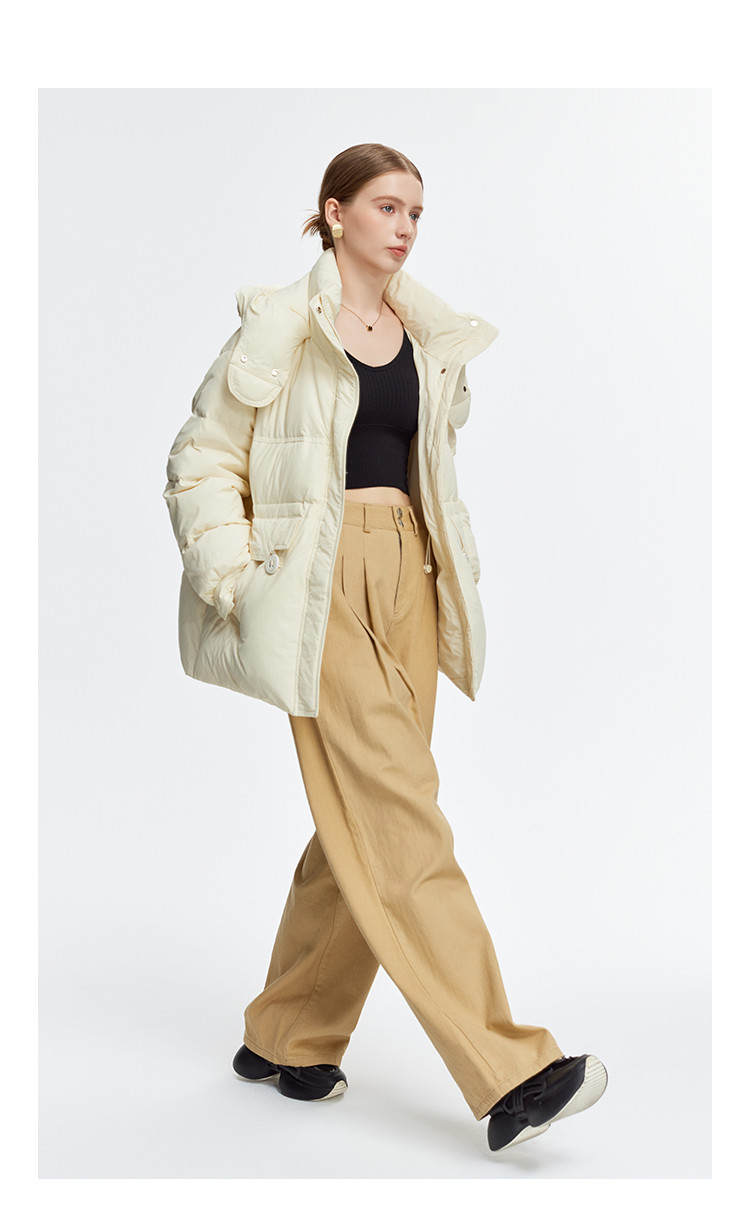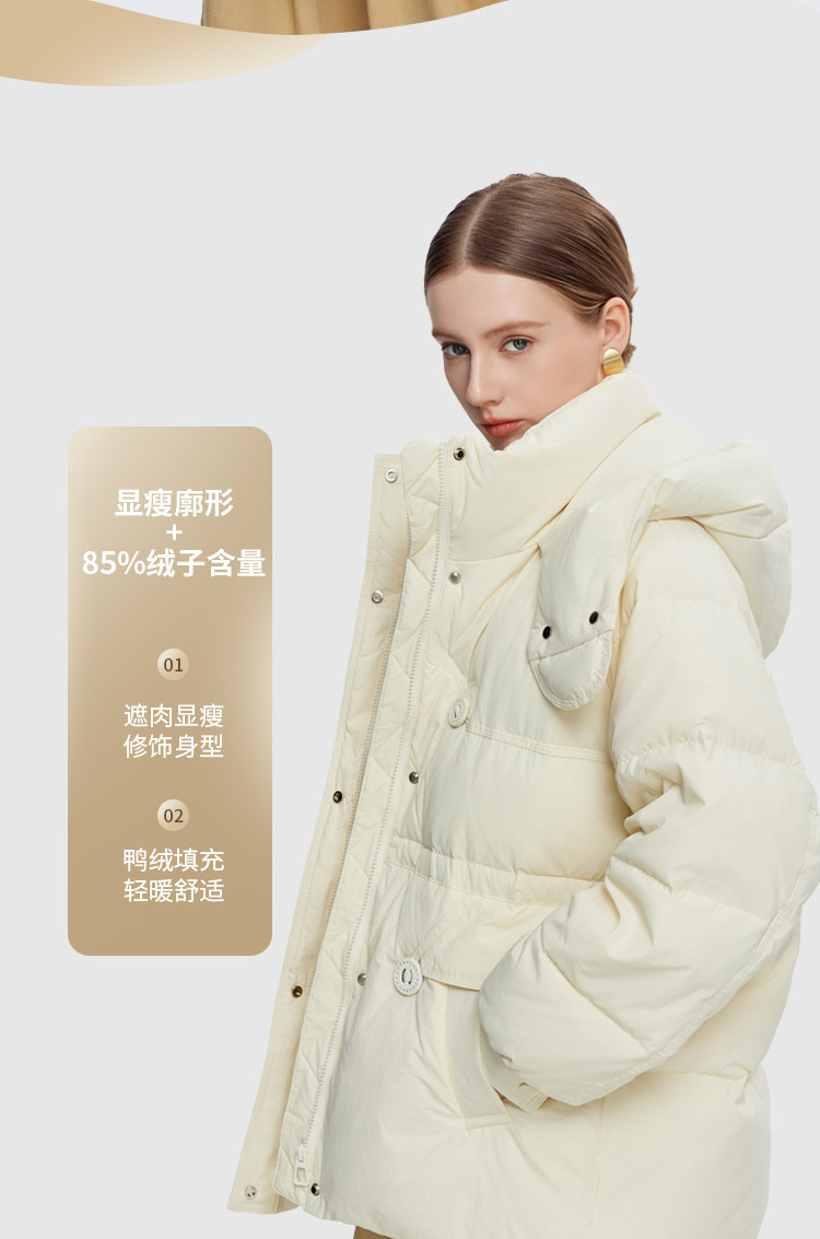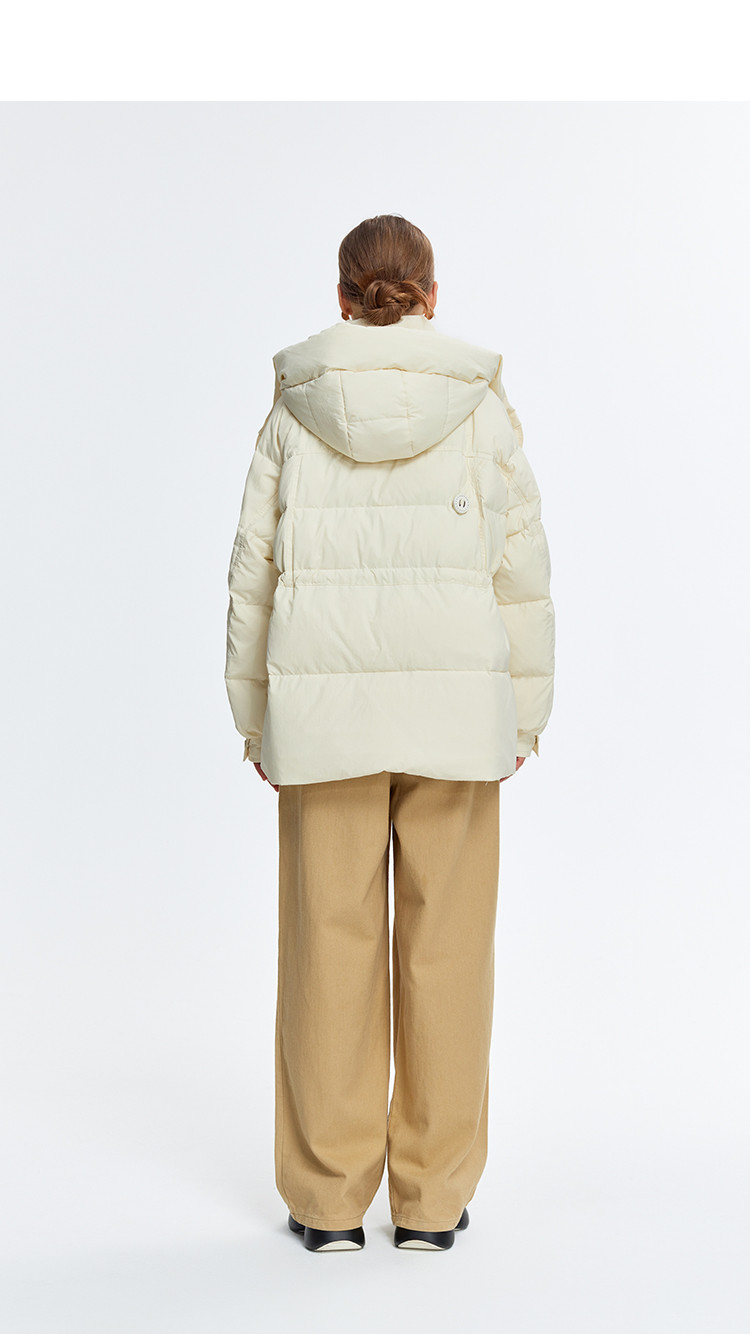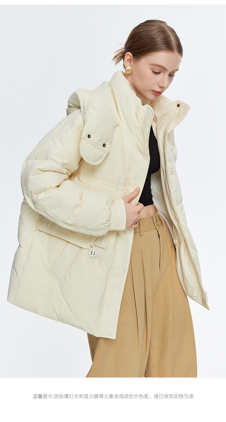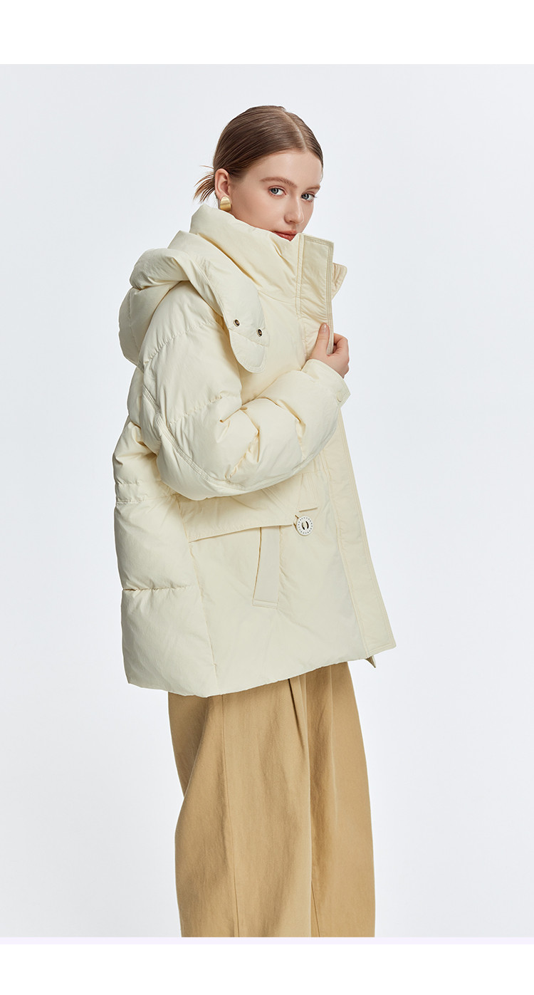 商品名称:韩版休闲纯色宽松抽绳束腰显瘦女式连帽短款加厚羽绒服 371871