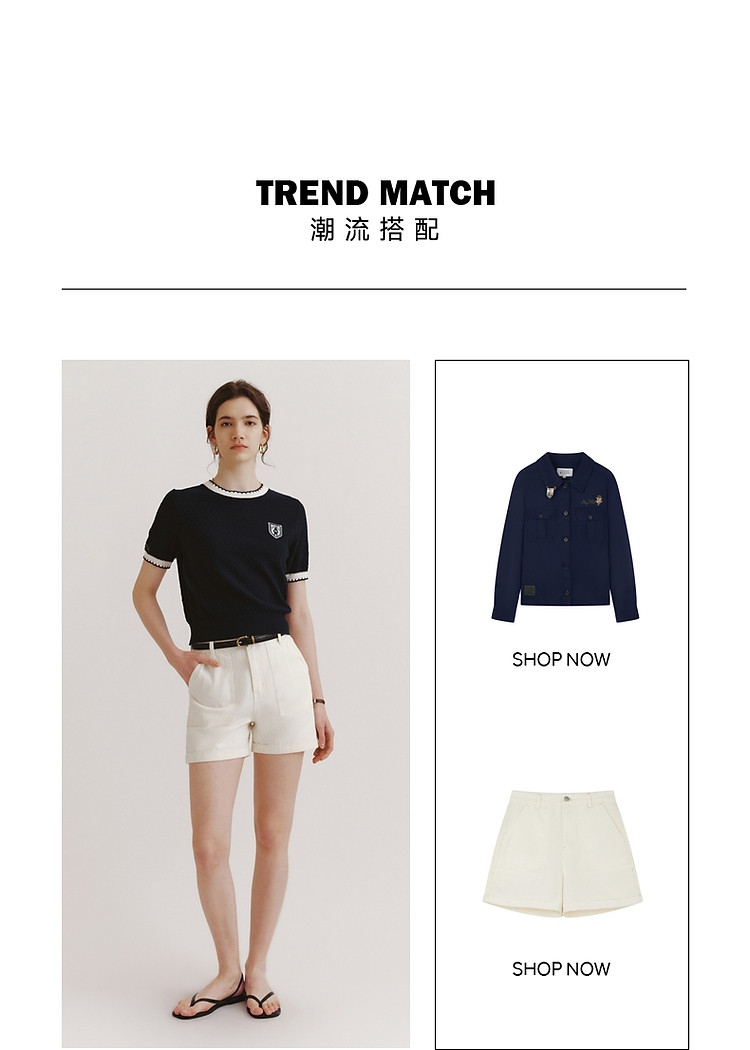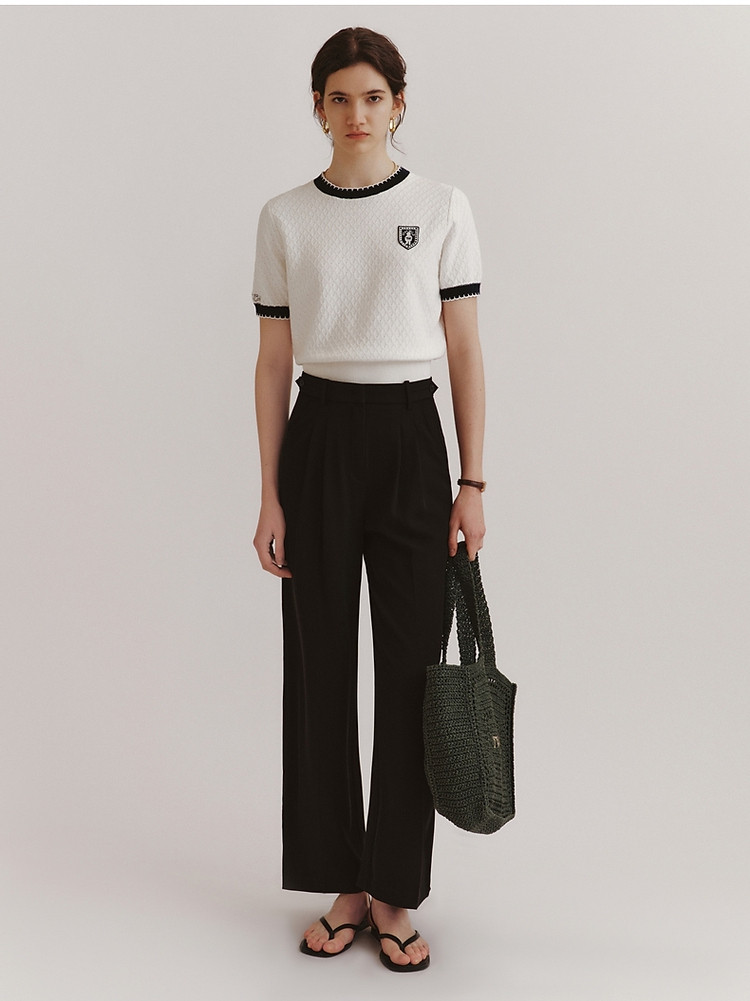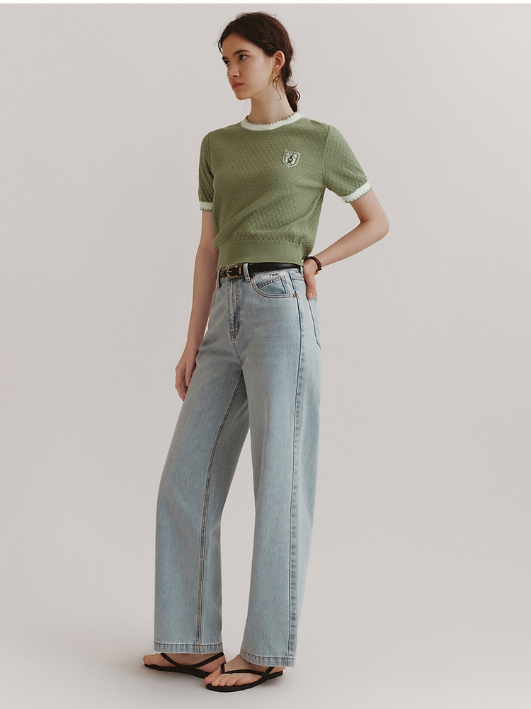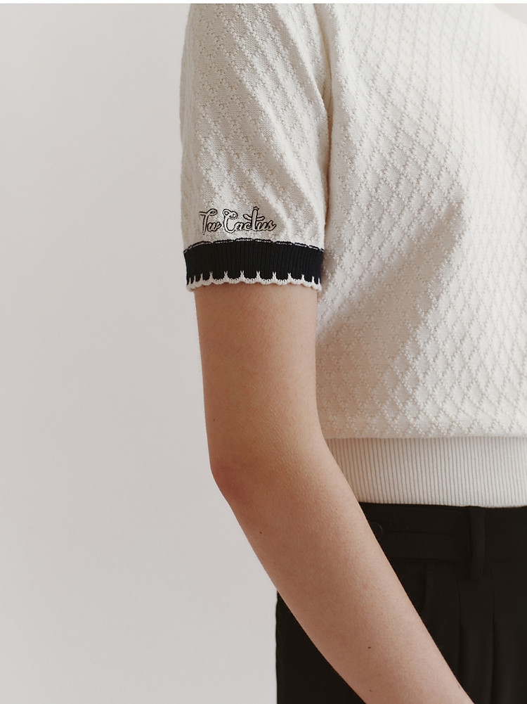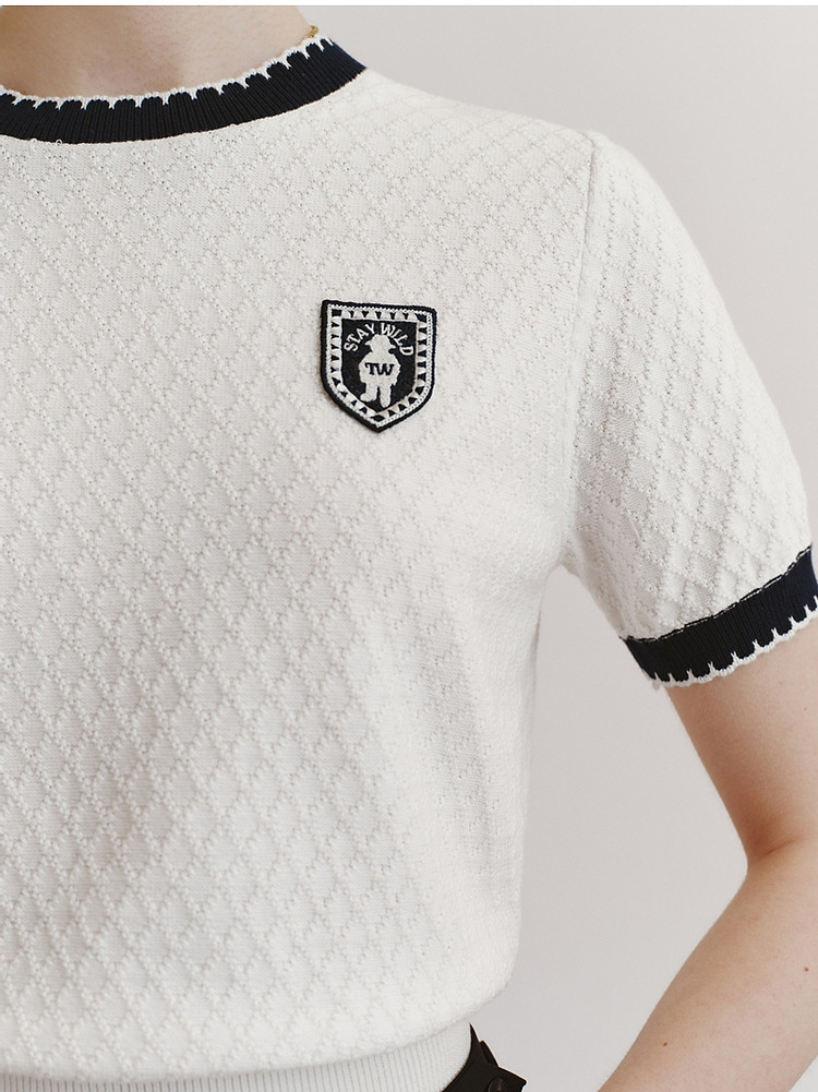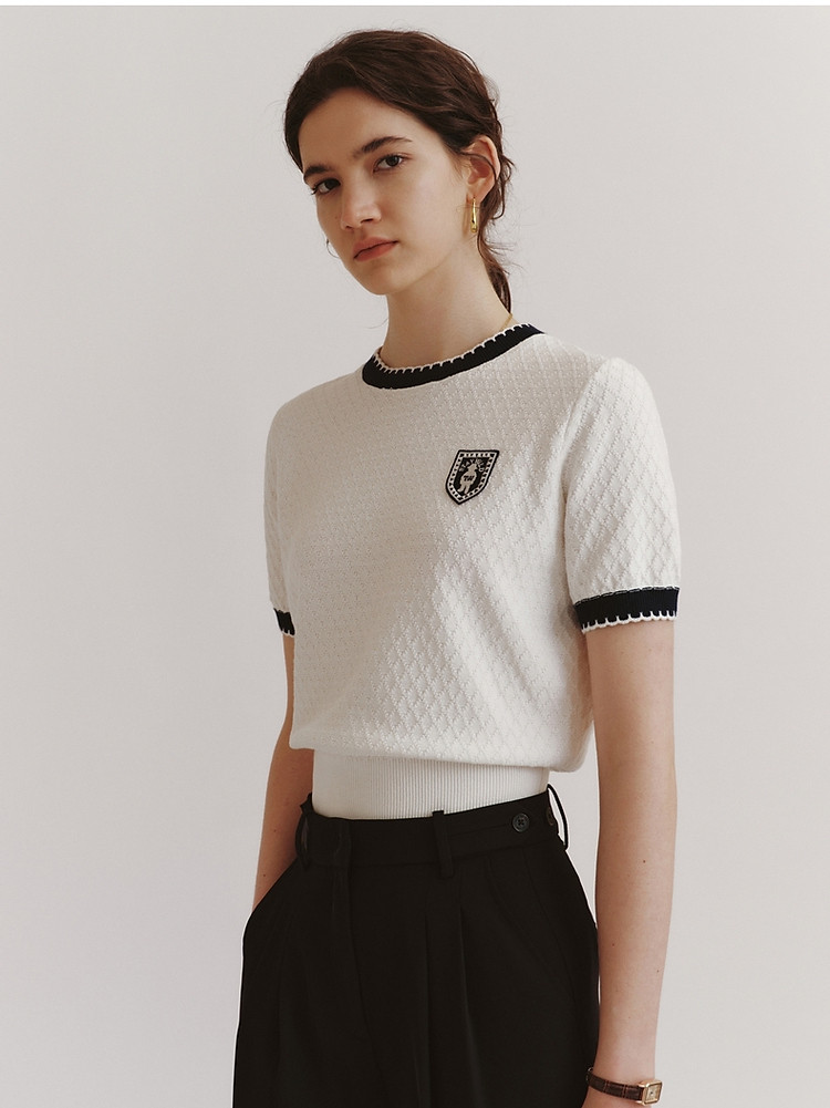 毛衣小熊款夏装撞色肌理感月牙勾边圆领短袖毛衣女装 353793