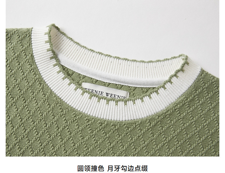 商品名称:毛衣小熊款夏装撞色肌理感月牙勾边圆领短袖毛衣女装 353793