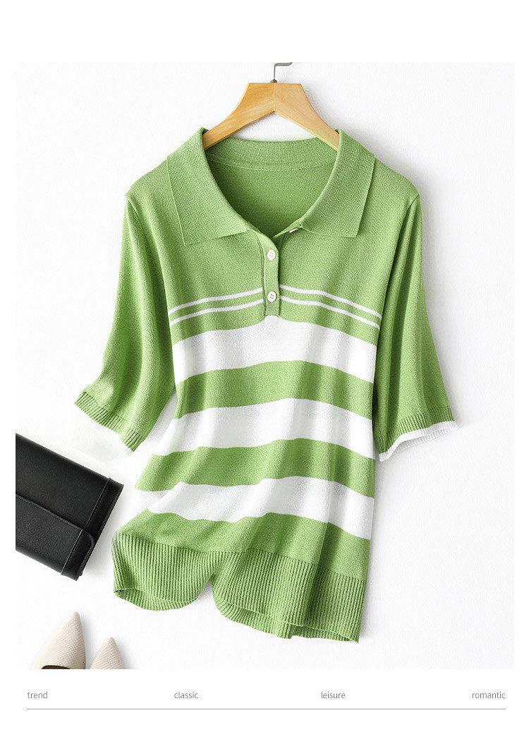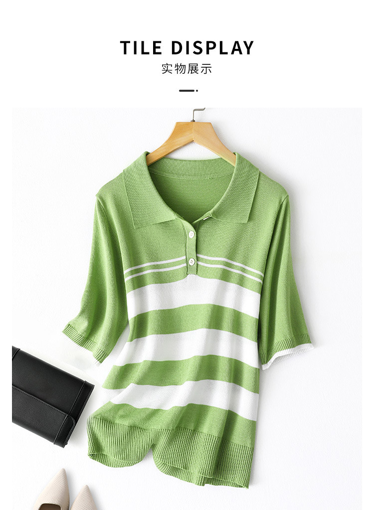 商品名称:【ins爆款】高级感POLO领条纹针织衫内搭上衣女夏正肩短袖 363465