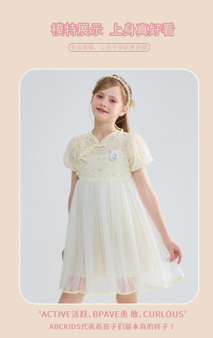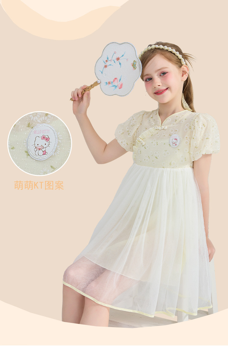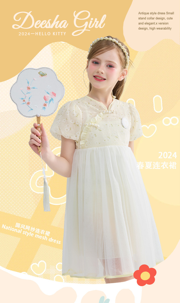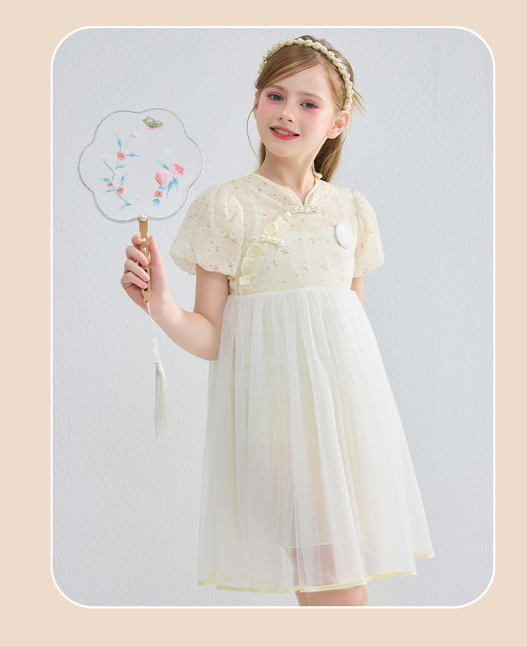 商品名称:夏季儿童公主裙国风汉服小清新泡泡袖女童甜美可爱连衣裙高级感 999937