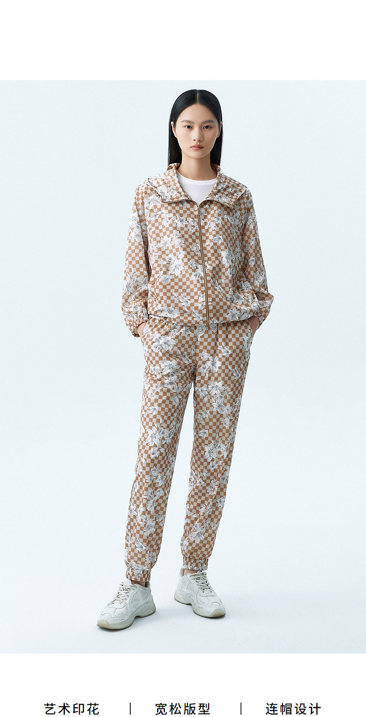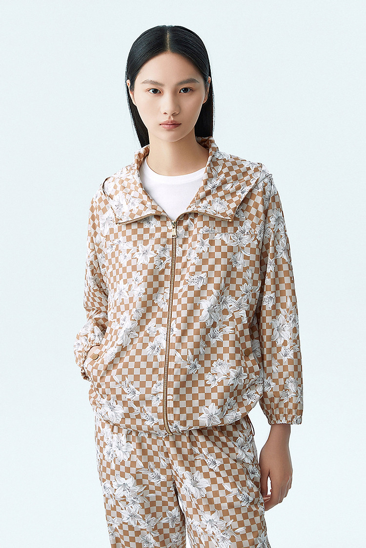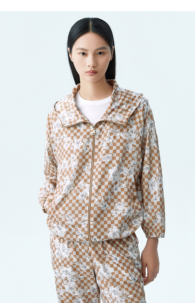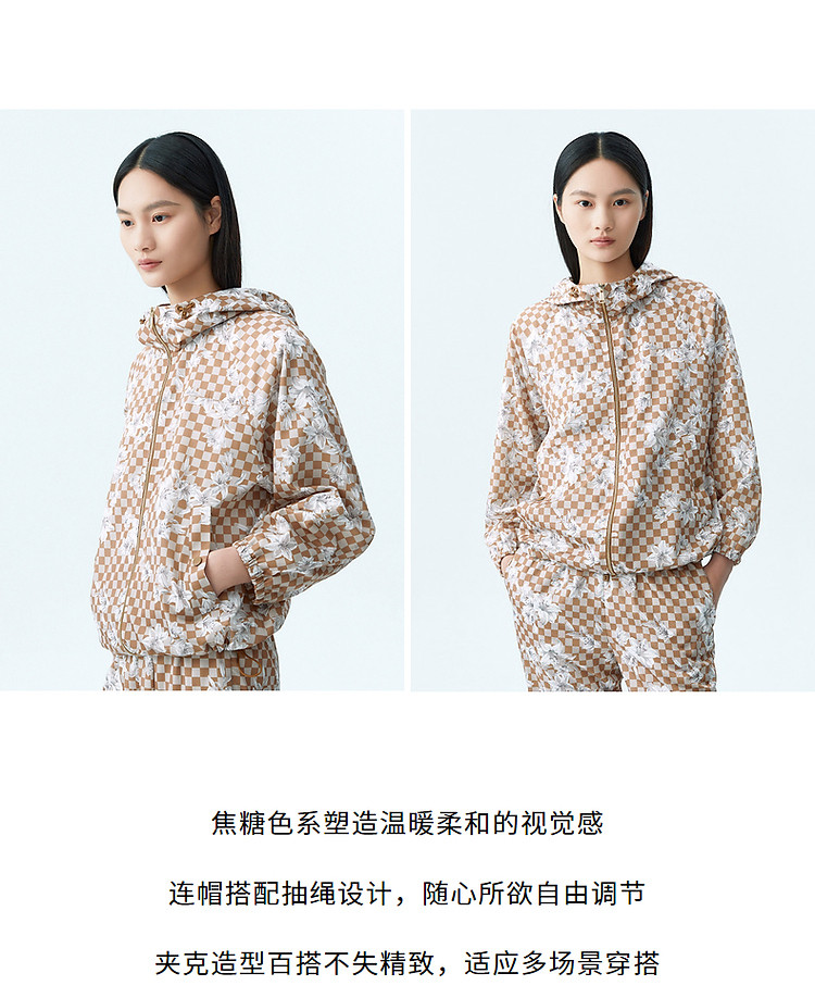 商品名称:设计复古印花撞色休闲外套女式上衣朗姿集团旗下俪雅 553497