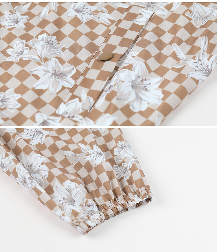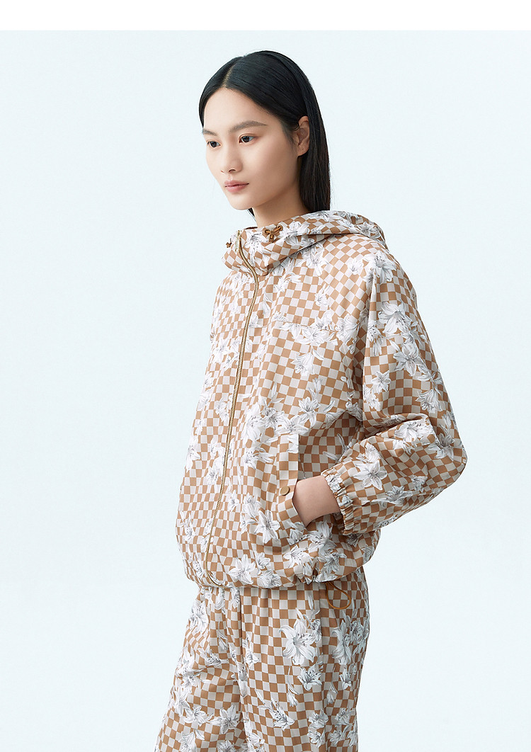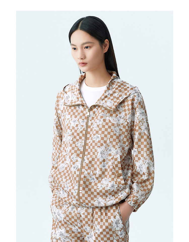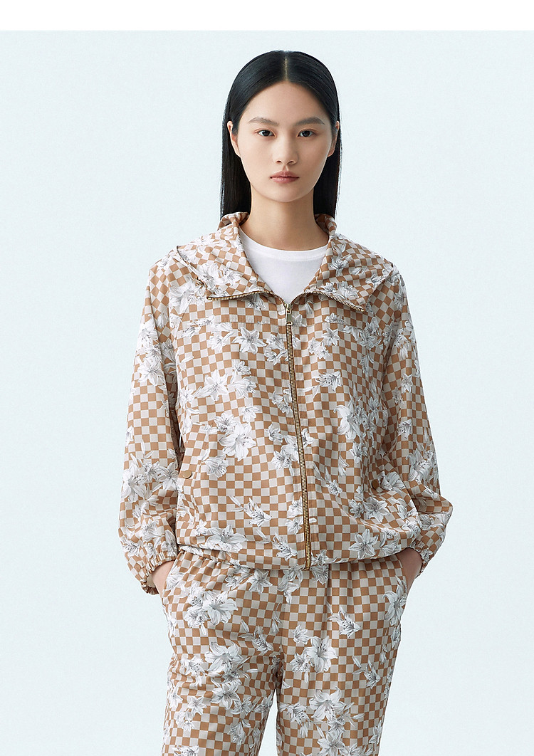 商品名称:设计复古印花撞色休闲外套女式上衣朗姿集团旗下俪雅 553497