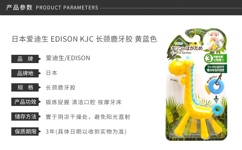 商品名称:【一般贸易】EDISON/爱迪生 EDISONMAMA KJC长颈鹿牙胶 黄蓝色