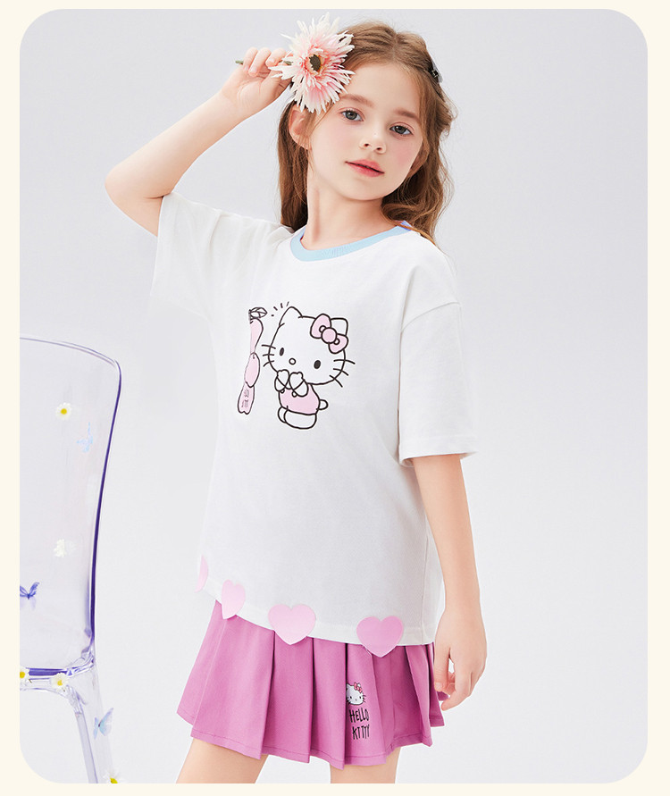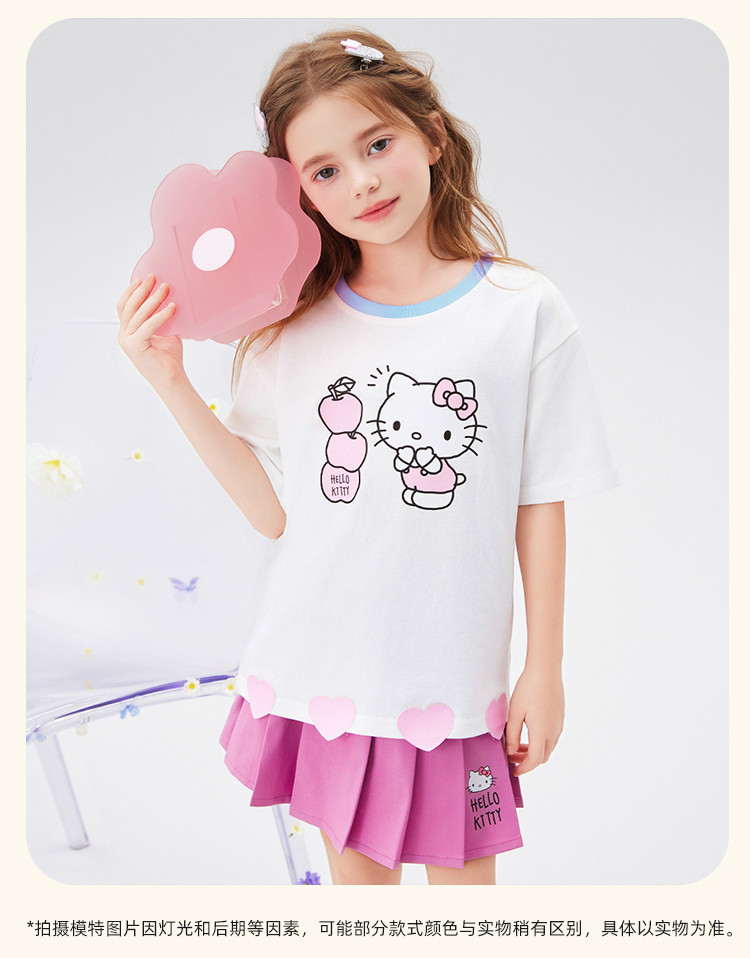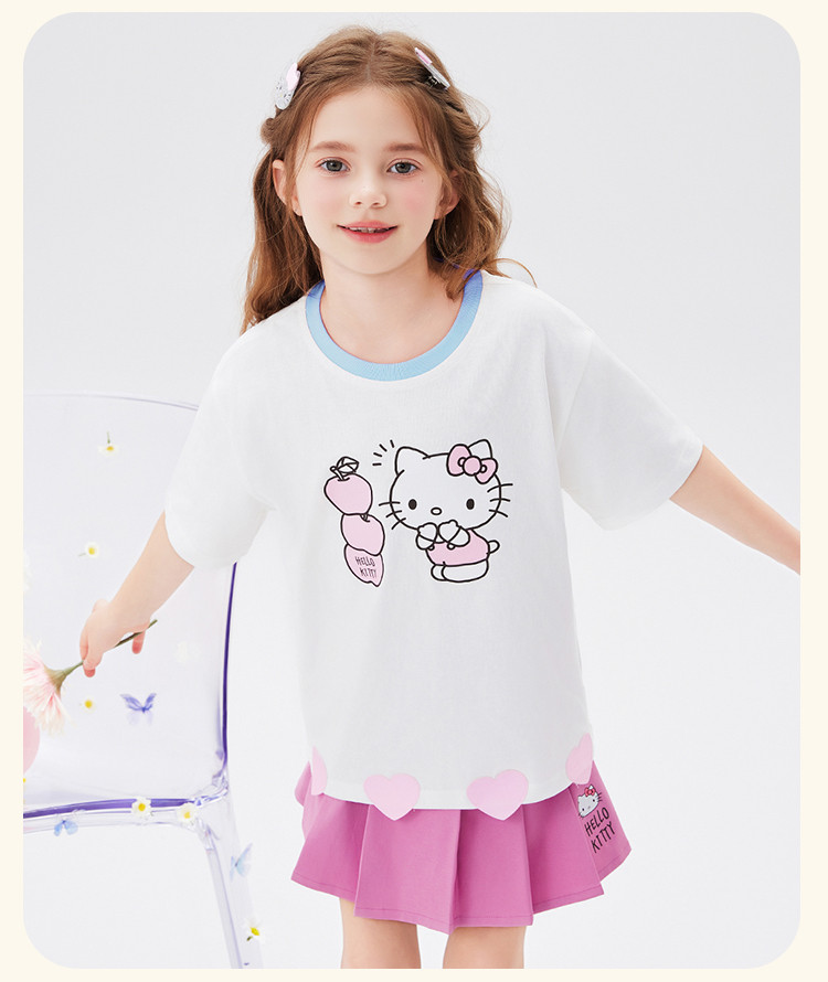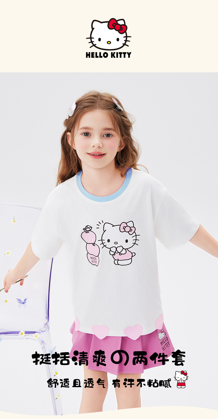 商品名称:女童夏季套装2025款爱心下摆短袖T恤+短裙女宝可爱两件套装 976414