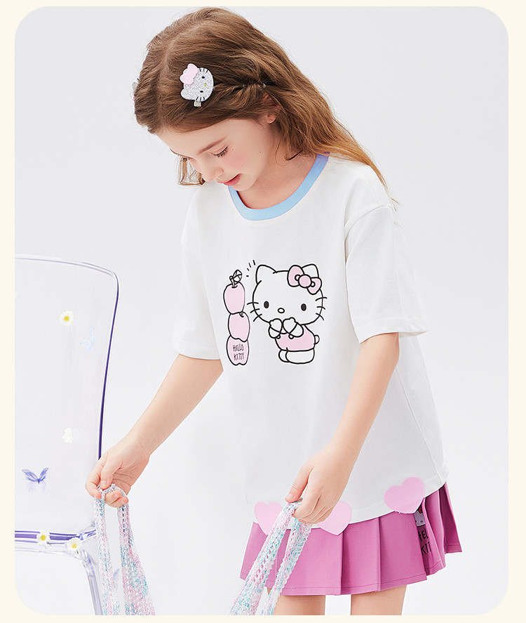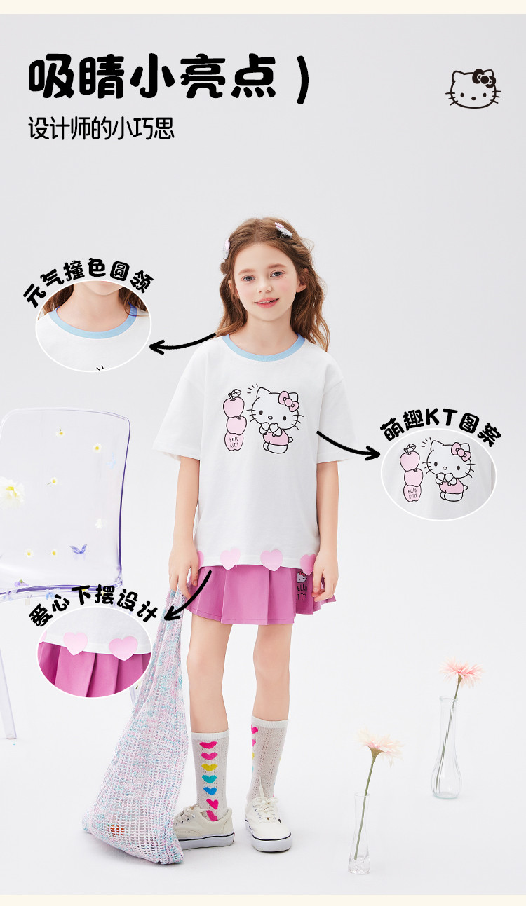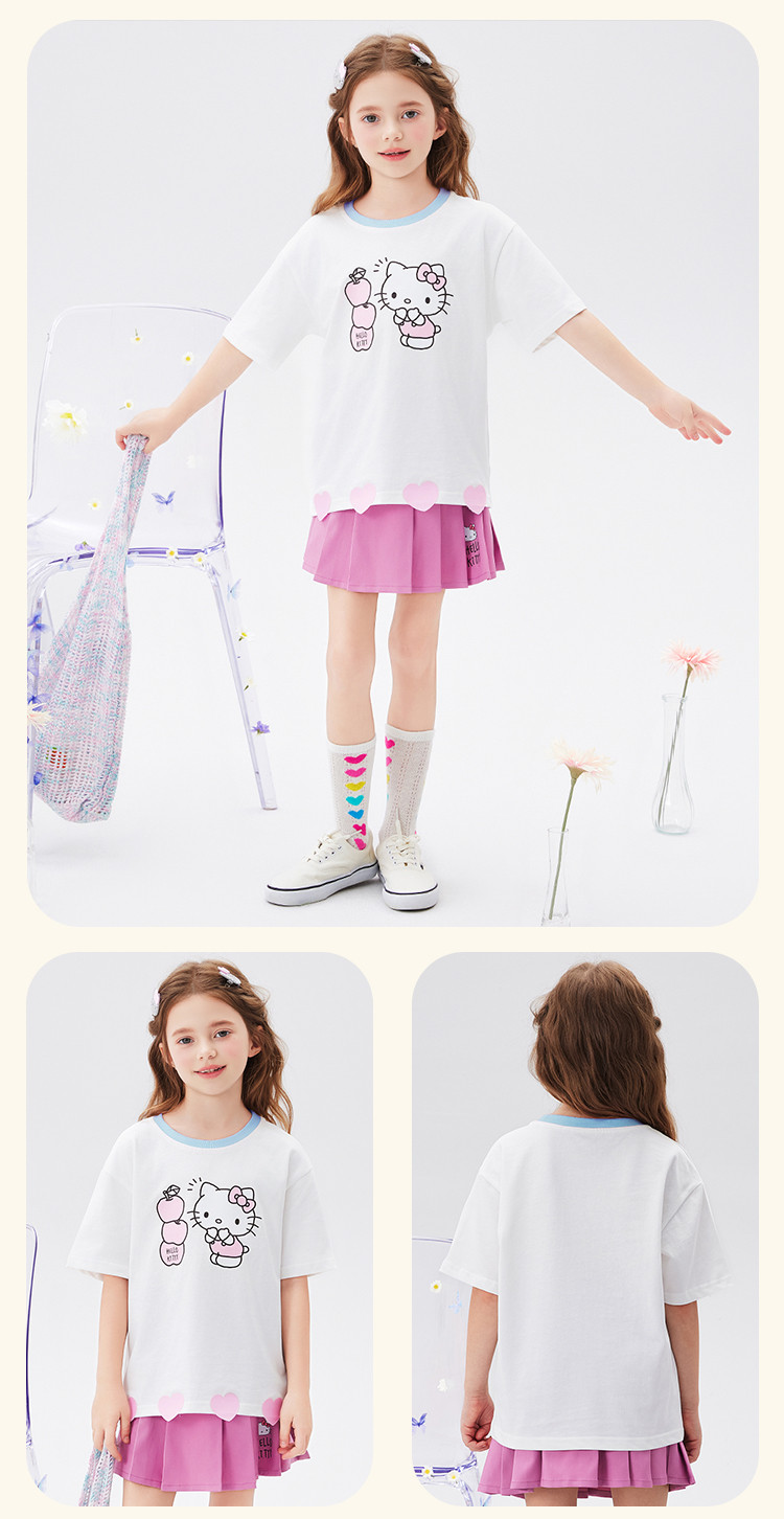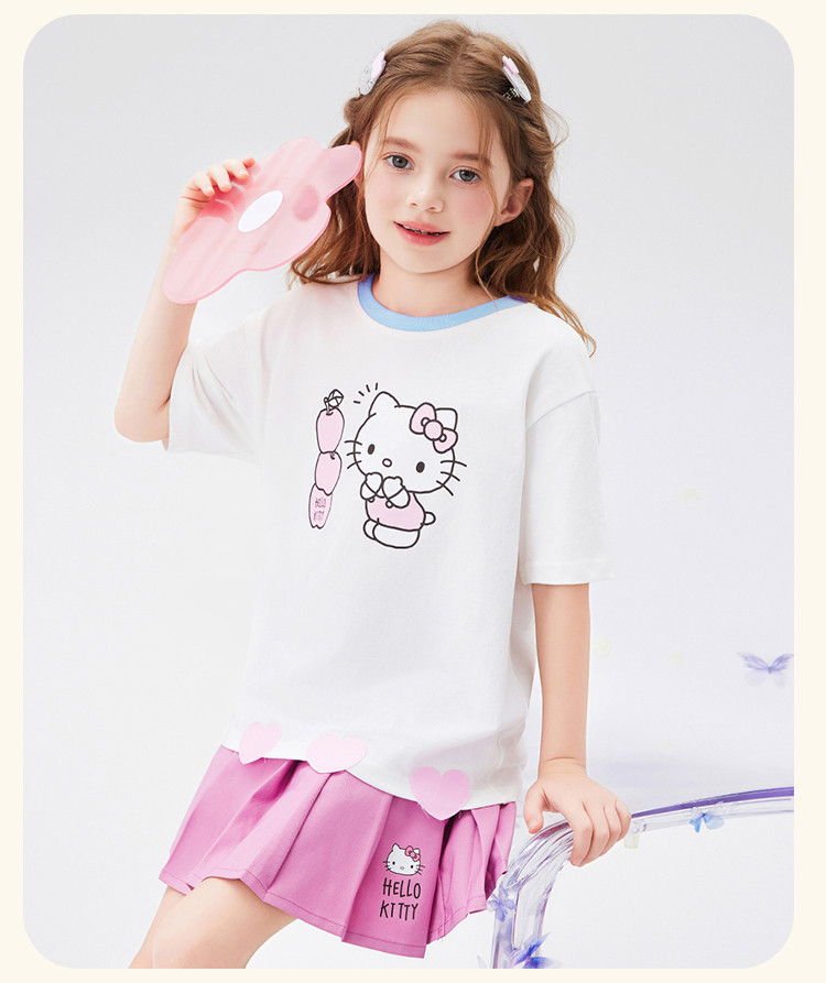 商品名称:女童夏季套装2025款爱心下摆短袖T恤+短裙女宝可爱两件套装 976414
