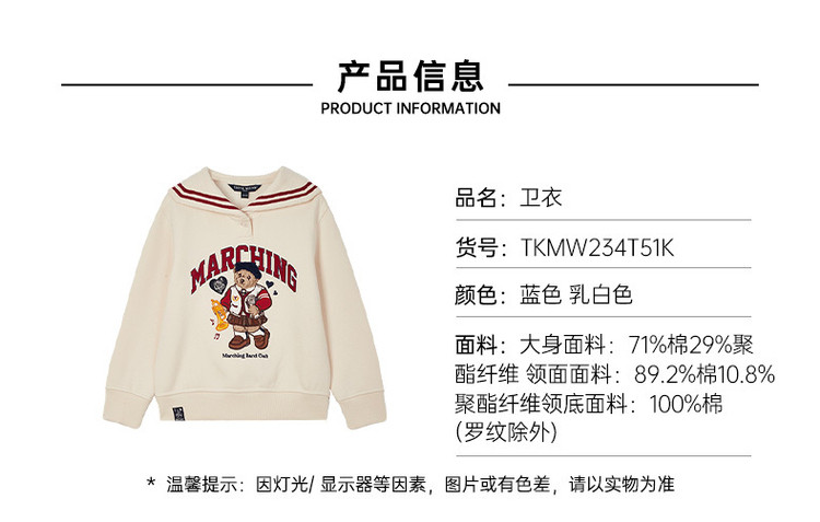 商品名称:小熊童装春款女童索罗娜长袖卫衣 217153