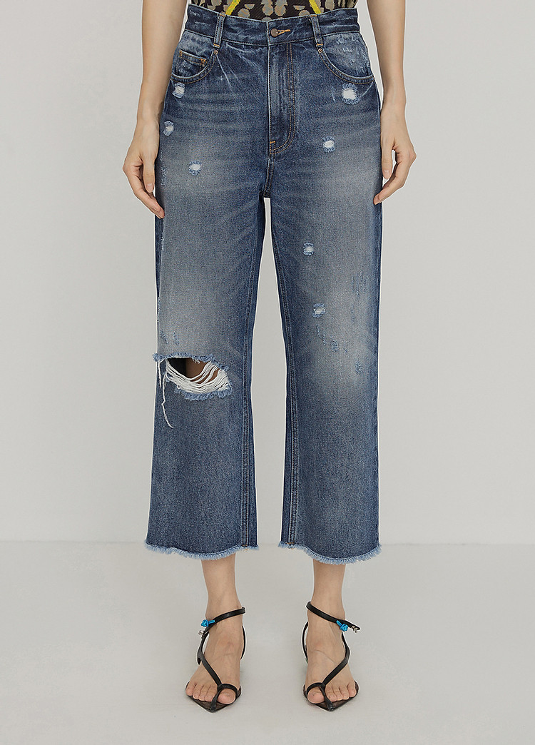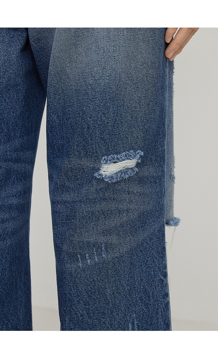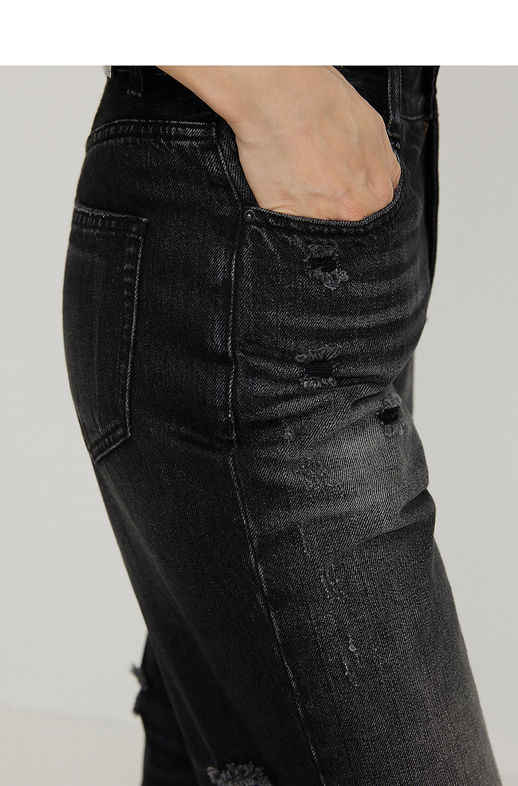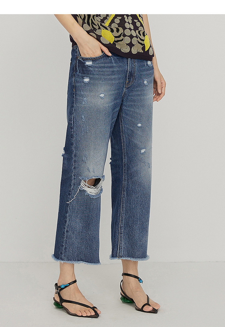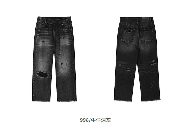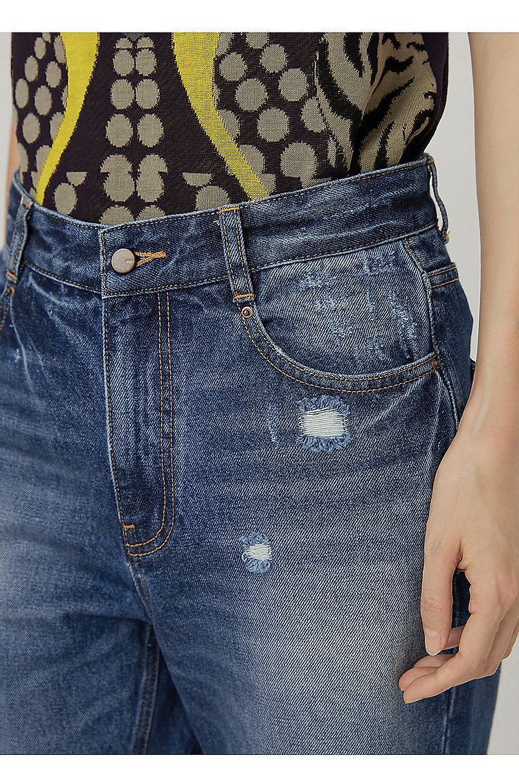 夏牛仔裤纯棉水洗高腰直筒裤女 339019
