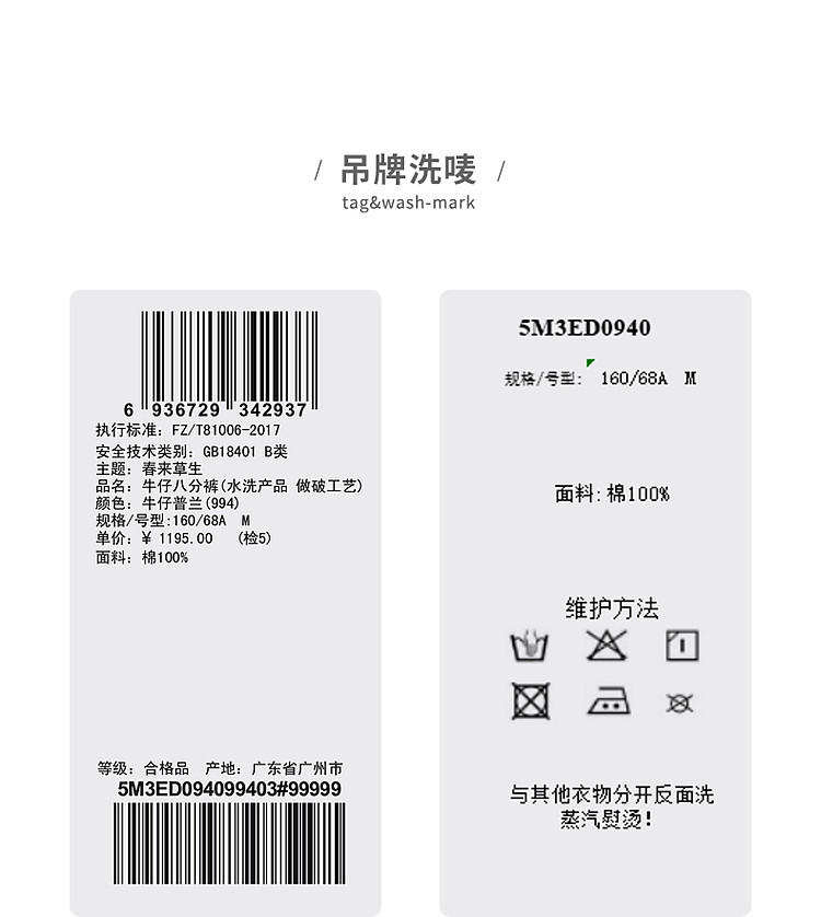 商品名称:夏牛仔裤纯棉水洗高腰直筒裤女 339019
