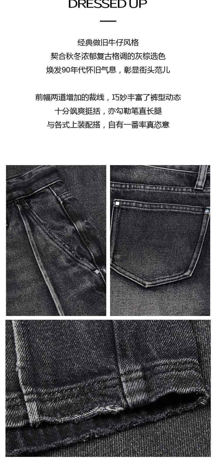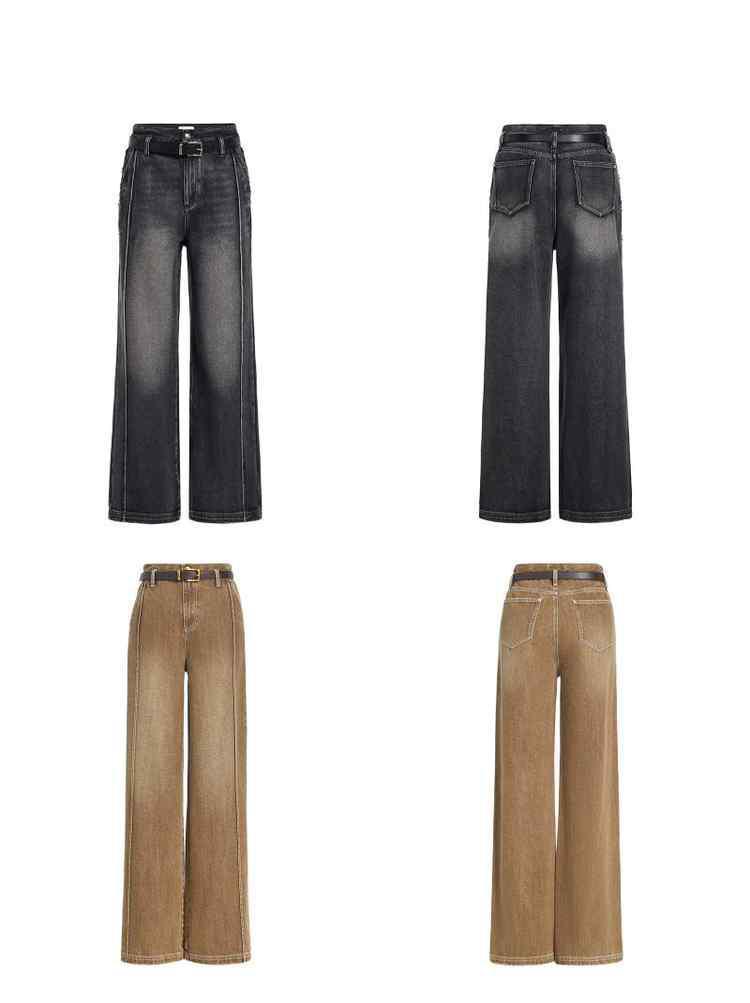 春装 宽松显瘦配腰带美式复古阔腿牛仔裤女 468239